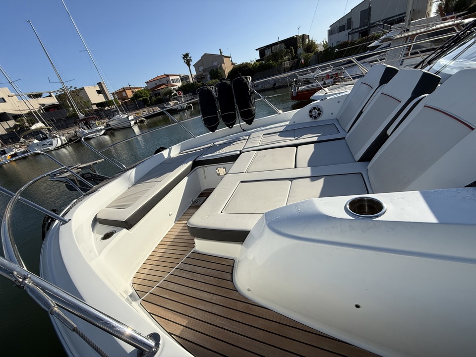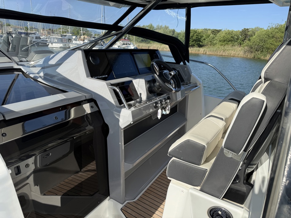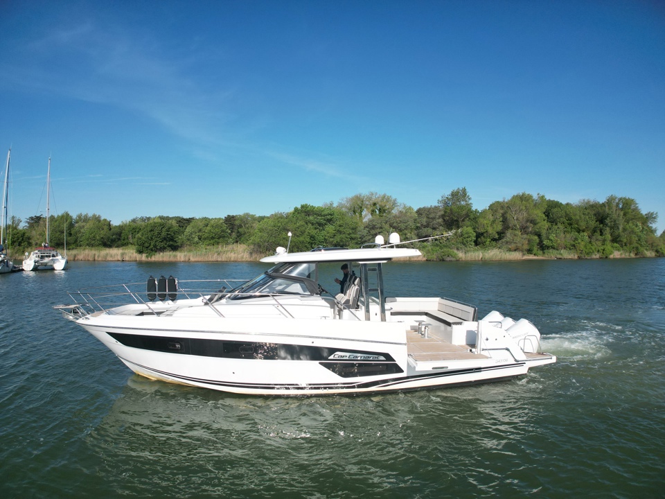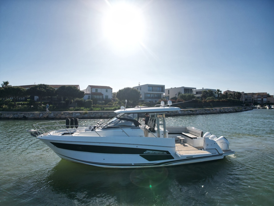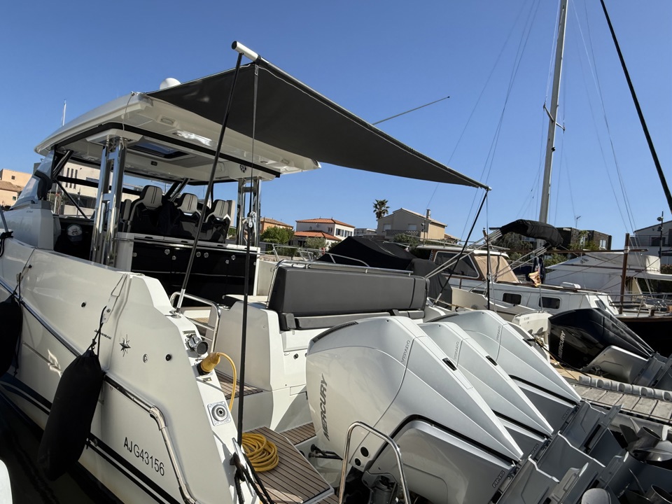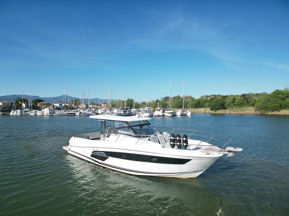 Découvrez ce superbe Jeanneau Cap Camarat 12.5 WA millésime 2023, un day-cruiser haut de gamme alliant performance, confort et élégance. Propulsé par 3 moteurs Mercury Marine 300 cv avec joystick, il offre des manœuvres d’une facilité remarquable ainsi qu’une navigation puissante et sécurisante. Référence sur le marché des grands open premium, le Cap Camarat 12.5 WA séduit par ses lignes modernes, son immense cockpit convivial, ses larges bains de soleil avant et arrière, ainsi que ses finitions soignées signées Jeanneau. À bord, profitez d’un carré extérieur spacieux, d’une cuisine de cockpit parfaitement pensée, ainsi que d’un intérieur raffiné avec cabine confortable, salle d’eau et couchages permettant de belles escapades en mer. Ce modèle 2023 bénéficie des dernières évolutions technologiques et d’un niveau d’équipement recherché pour la croisière rapide comme pour les sorties à la journée entre amis ou en famille. Un bateau rare sur le marché de l’occasion, idéal pour propriétaire exigeant recherchant puissance, standing et polyvalence. Dossier complet, photos et informations sur demande. Place de port possible Visible chez Esprit Bateau.Marque Jeanneau