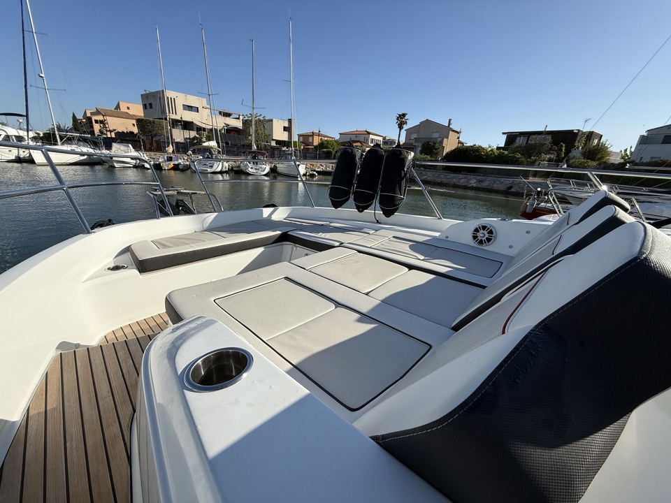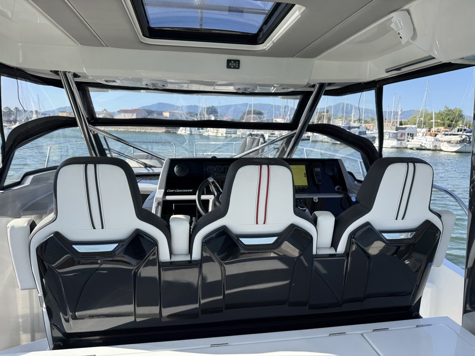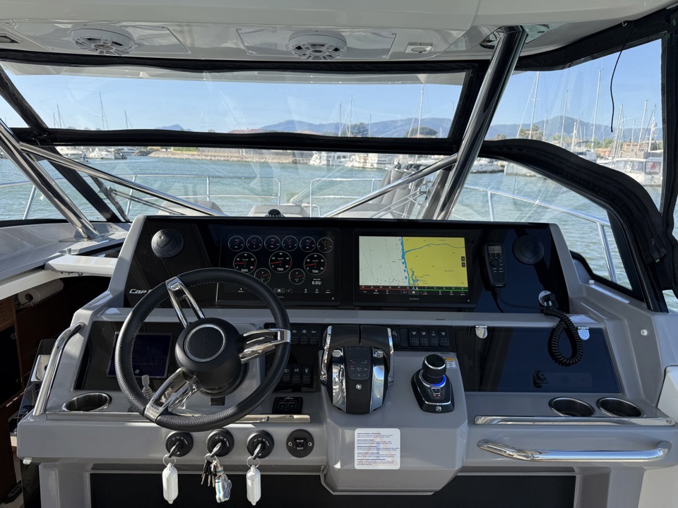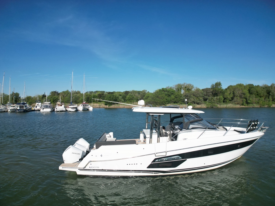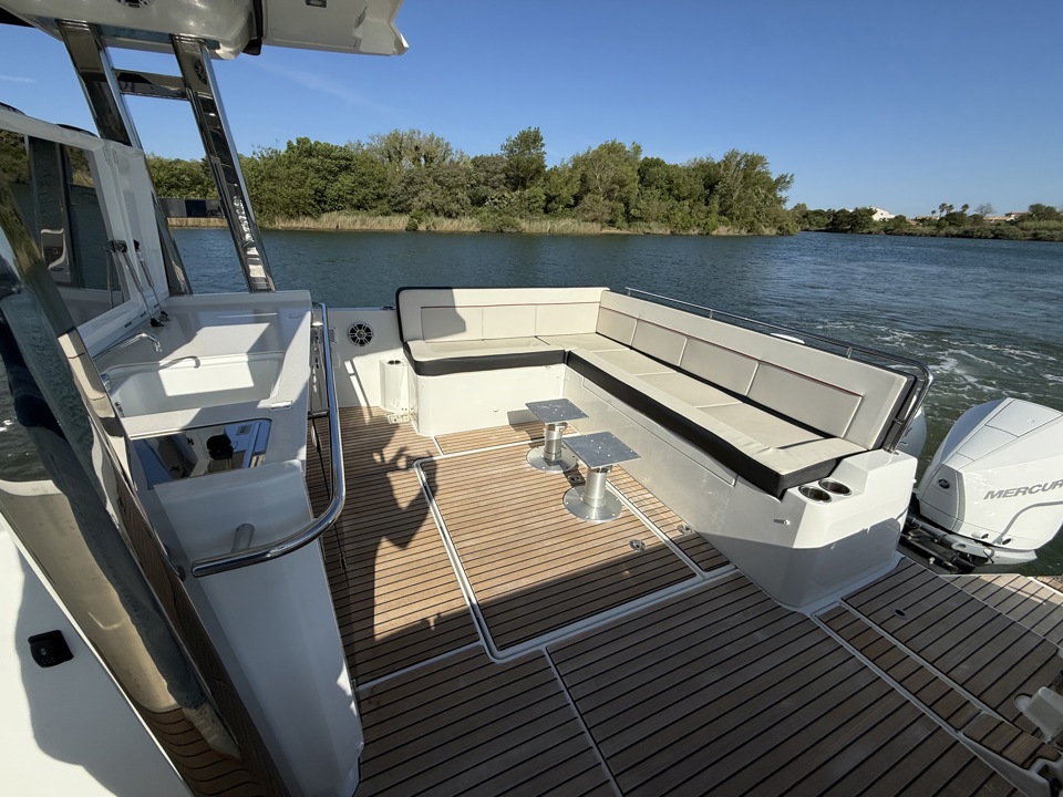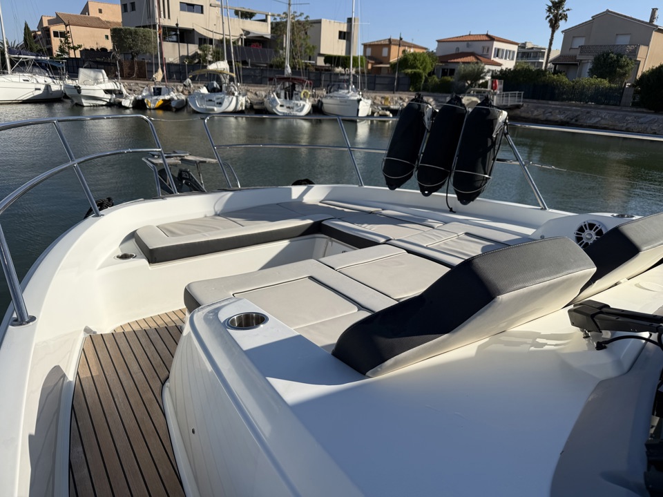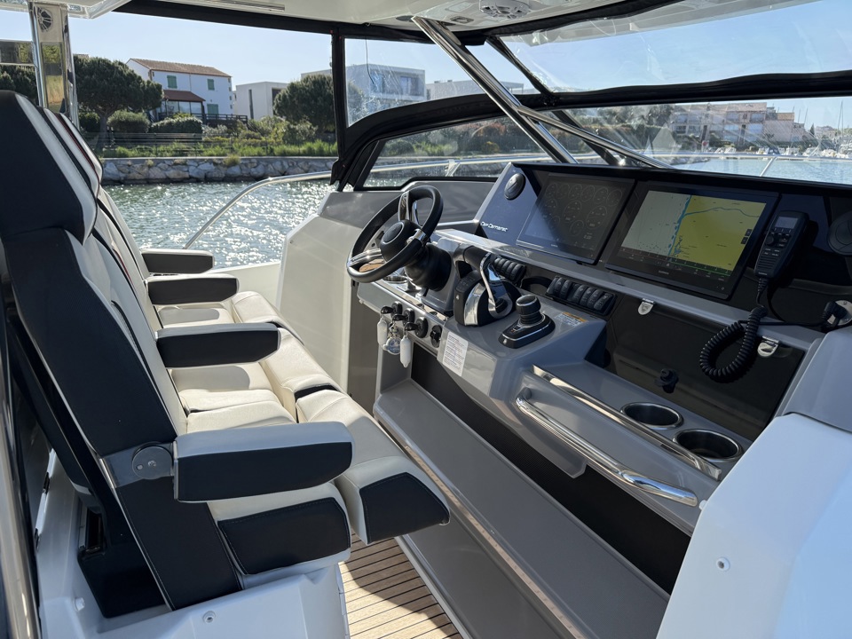 Découvrez ce superbe Jeanneau Cap Camarat 12.5 WA millésime 2023, un day-cruiser haut de gamme alliant performance, confort et élégance. Propulsé par 3 moteurs Mercury Marine 300 cv avec joystick, il offre des manœuvres d’une facilité remarquable ainsi qu’une navigation puissante et sécurisante. Référence sur le marché des grands open premium, le Cap Camarat 12.5 WA séduit par ses lignes modernes, son immense cockpit convivial, ses larges bains de soleil avant et arrière, ainsi que ses finitions soignées signées Jeanneau. À bord, profitez d’un carré extérieur spacieux, d’une cuisine de cockpit parfaitement pensée, ainsi que d’un intérieur raffiné avec cabine confortable, salle d’eau et couchages permettant de belles escapades en mer. Ce modèle 2023 bénéficie des dernières évolutions technologiques et d’un niveau d’équipement recherché pour la croisière rapide comme pour les sorties à la journée entre amis ou en famille. Un bateau rare sur le marché de l’occasion, idéal pour propriétaire exigeant recherchant puissance, standing et polyvalence. Dossier complet, photos et informations sur demande. Place de port possible Visible chez Esprit Bateau.Marque Jeanneau