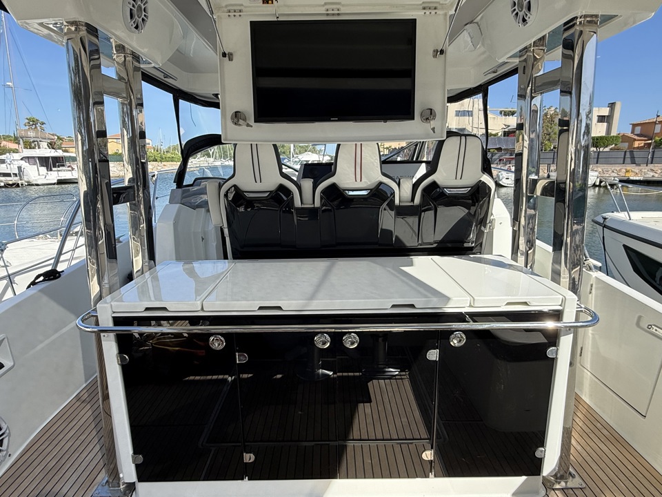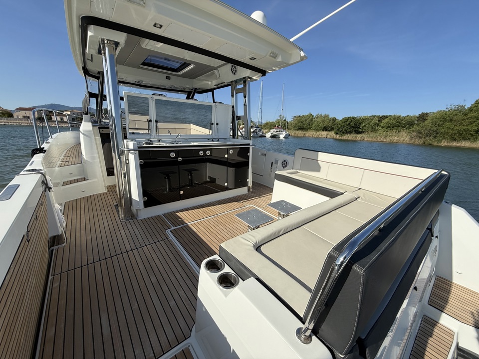 cockpit teckcoussin cockpitdouchette cockpitéclairage cockpittable cockpitbain de soleil arrièrebain de soleil avantéchelle de bainflaps Lencoplateforme de bainpropulseur d'étravetaud de soleil micro perforée (avec côté et arrière)ancreguindeau électrique