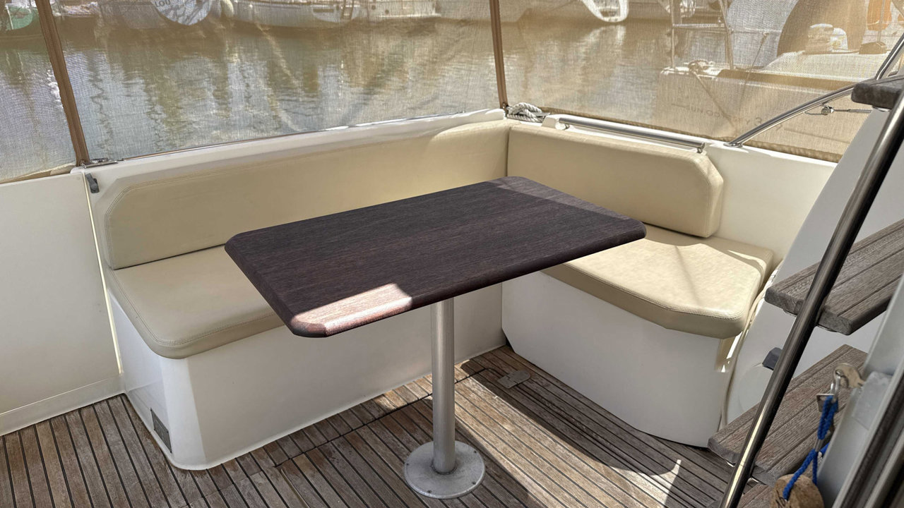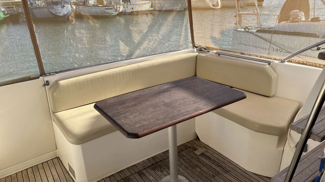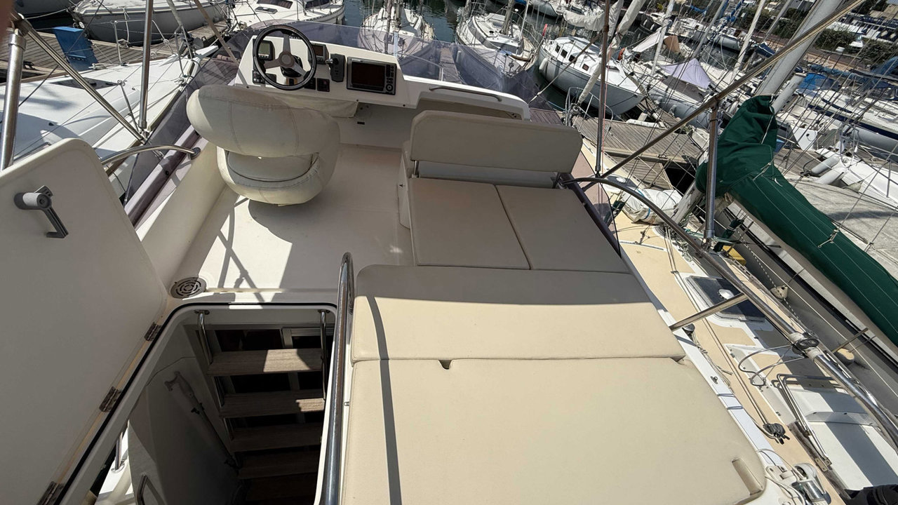 fly bridgepropulseur d'étravepropulseur de poupeflapstaud fermeture arrièretaud de flyplateforme de bainéchelle de bainbain de soleil avantcockpit teckdouchette cockpittable cockpitcoussin cockpitéclairage cockpitancreguindeau électriquecouleurmatériau de constructionannexe