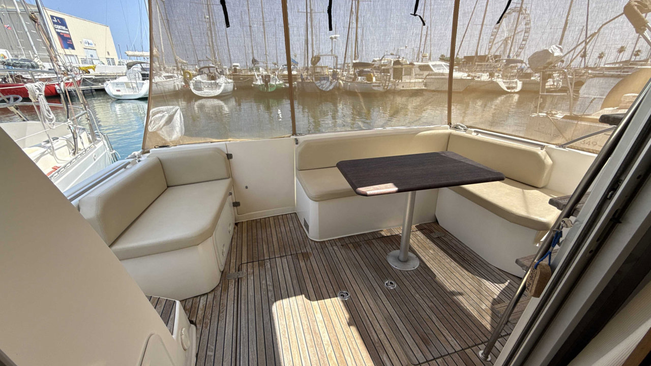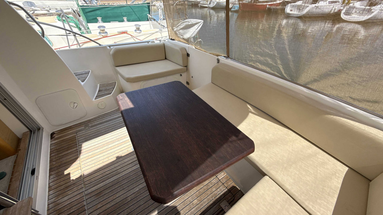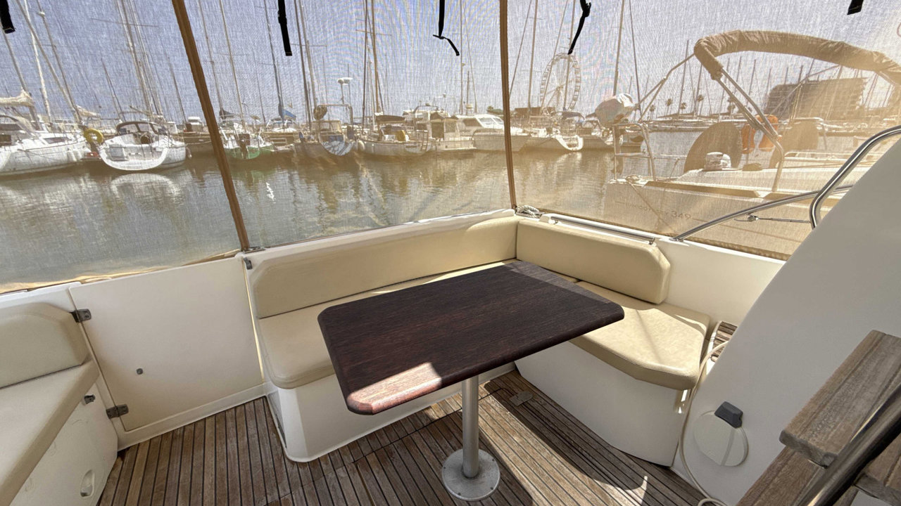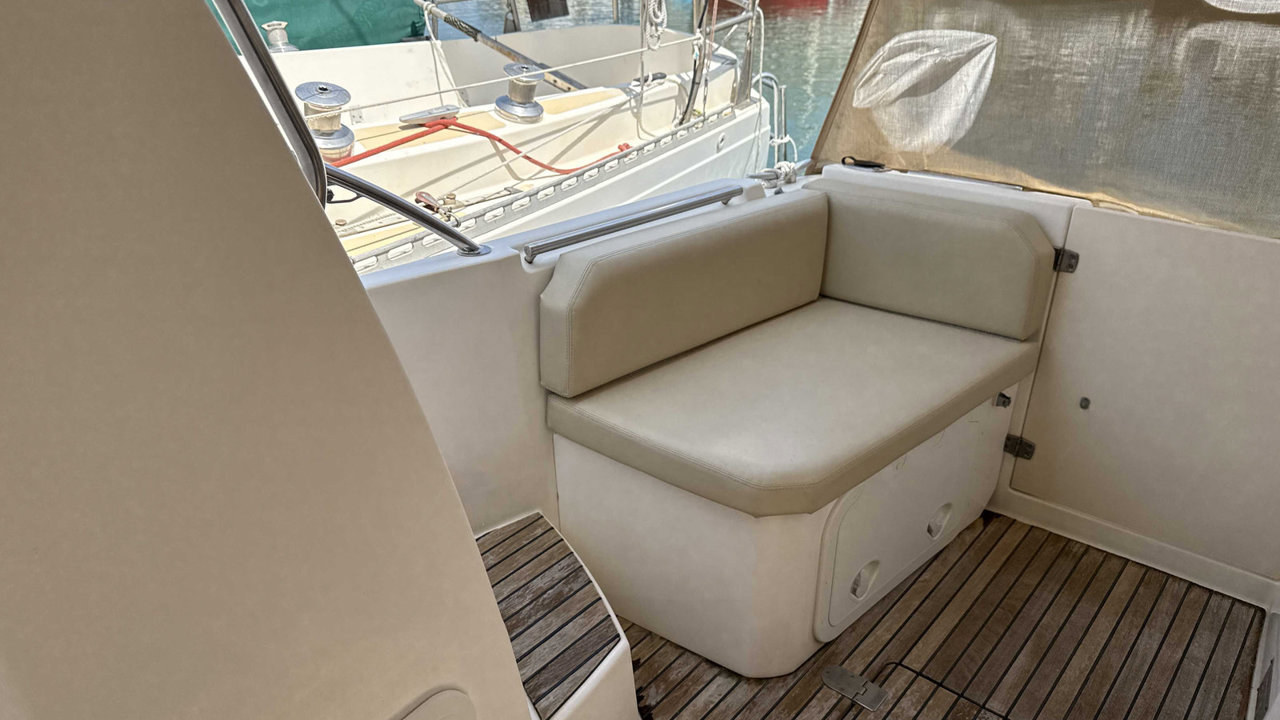 fly bridgepropulseur d'étravepropulseur de poupeflapstaud fermeture arrièretaud de flyplateforme de bainéchelle de bainbain de soleil avantcockpit teckdouchette cockpittable cockpitcoussin cockpitéclairage cockpitancreguindeau électriquecouleurmatériau de constructionannexe