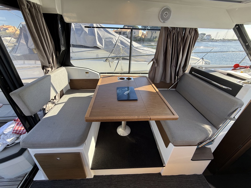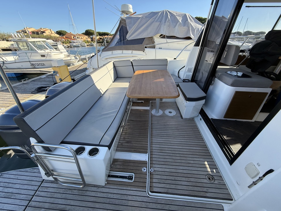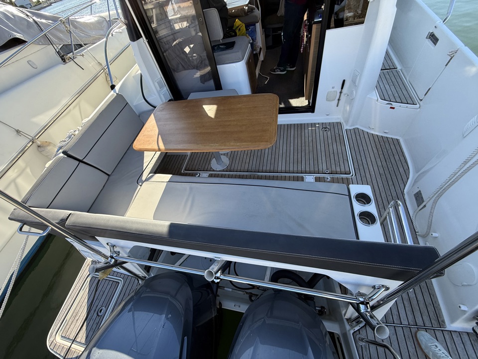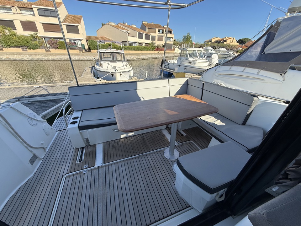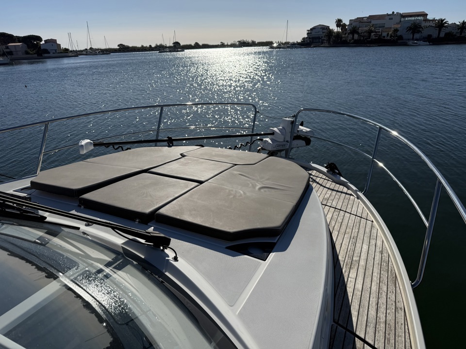 cockpit teckcoussin cockpitdouchette cockpitéclairage cockpittable cockpitbain de soleil arrièrebain de soleil avantéchelle de bainflaps (Lenco)plateforme de bainpropulseur d'étravetaud campingtaud de soleilpont teckguindeau électriqueantifoulingportes cannes