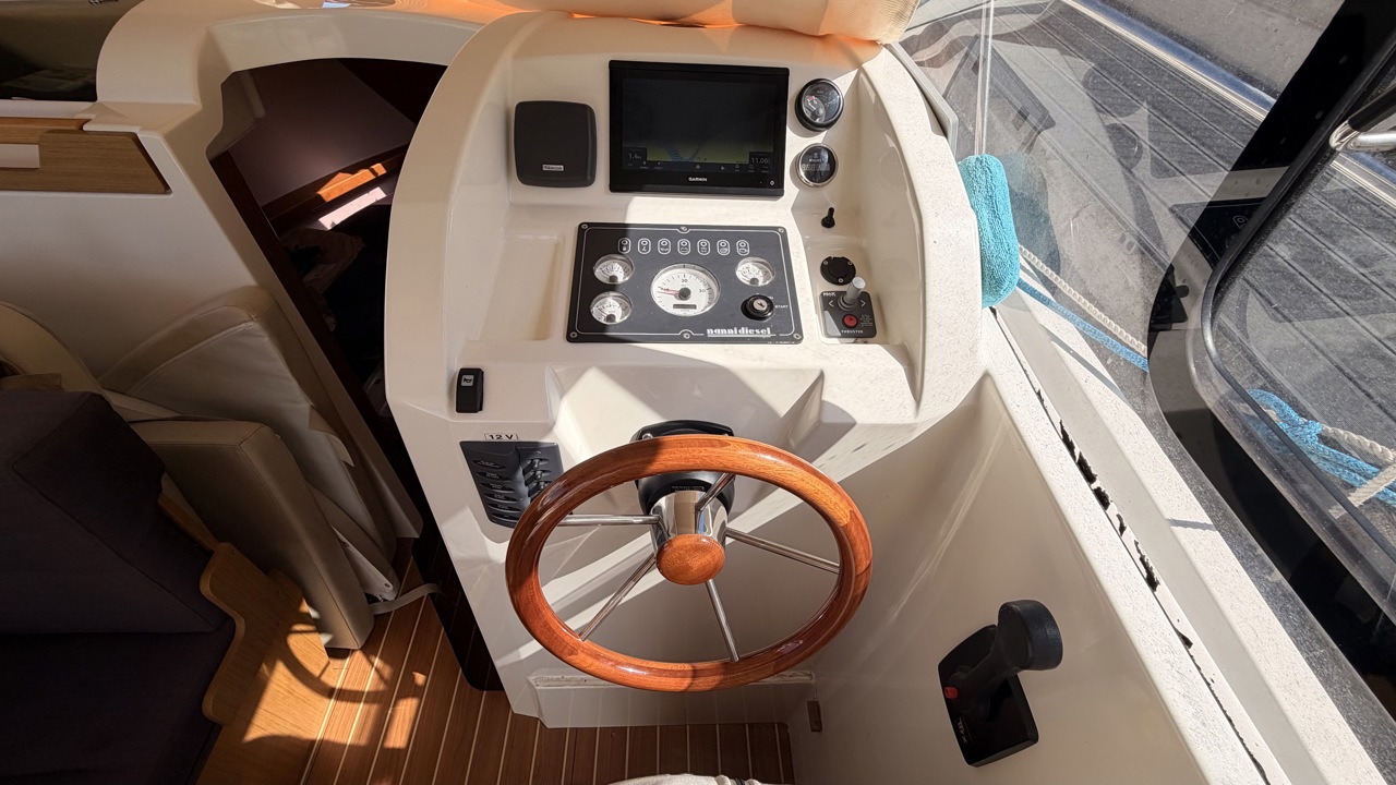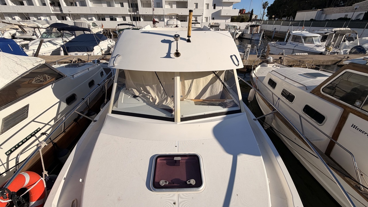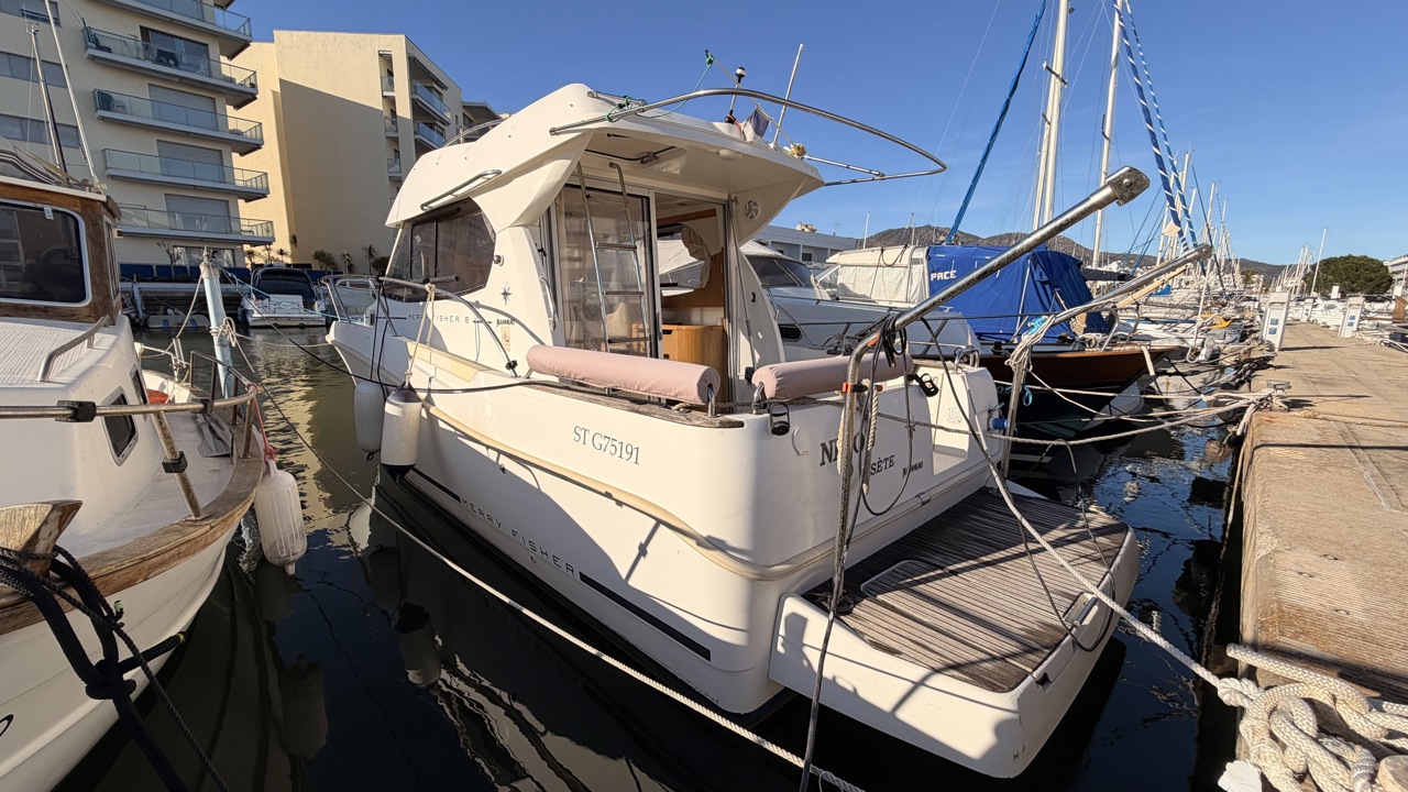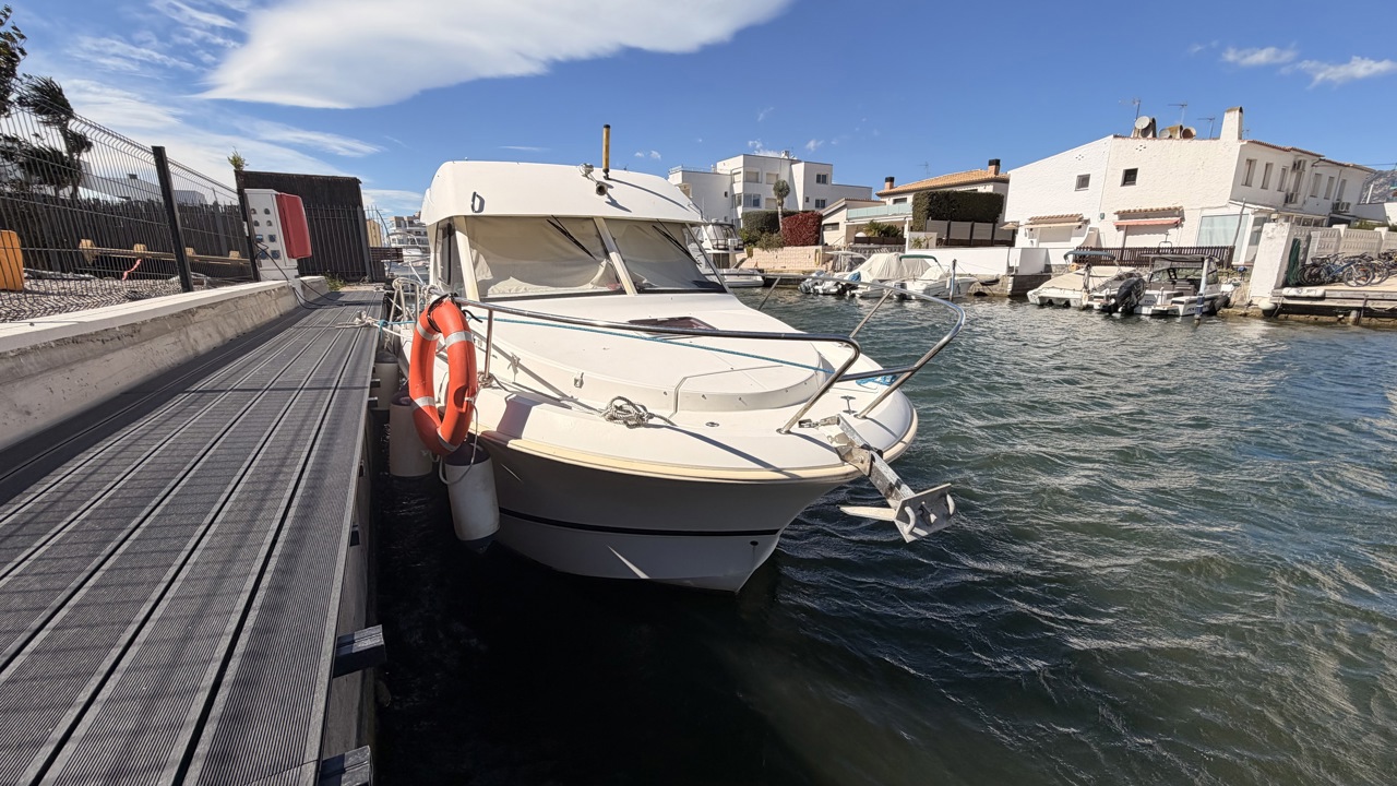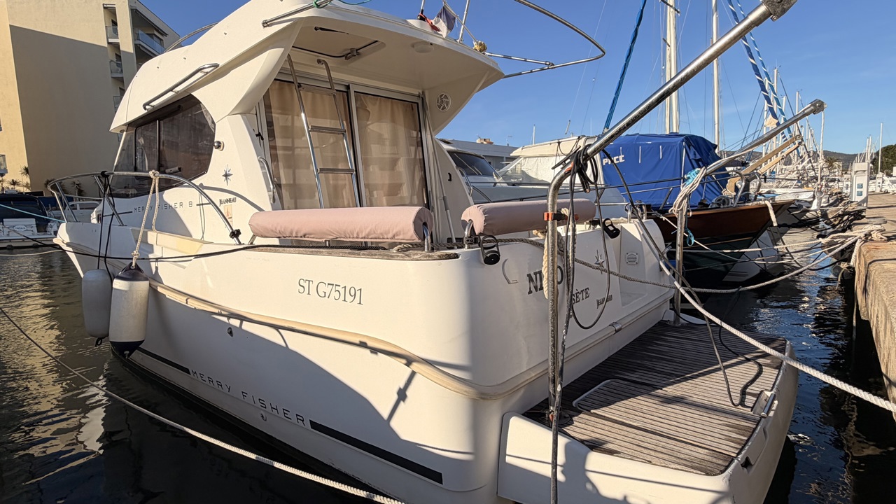 Jeanneau Merry Fisher 8 – 2009 – Nanni Diesel 200 CV – Bateau d’occasion Jeanneau Merry Fisher 8 de 2009 équipé d’un moteur Nanni Diesel T4-200 de 200 CV, fiable et économique en ligne d’arbre. Bateau de 7,48 m avec cabine 2 couchages, carré transformable, coin cuisine et WC. Cockpit spacieux et modulable, idéal pêche ou détente. Entretien suivi avec factures : révision moteur, kit distribution remplacé (2024), antifouling, nettoyage coque, anodes et entretien général. Équipements : propulseur d’étrave, guindeau électrique (ancre 40 m), bain de soleil, bimini, taud, plateforme de bain, douche cockpit, frigo récent (2024), GPS Garmin, VHF récente, sondeur, circuit 12V / 220V. Bateau prêt à naviguer. Visible à Santa Margarita (Costa Brava).Marque Jeanneau