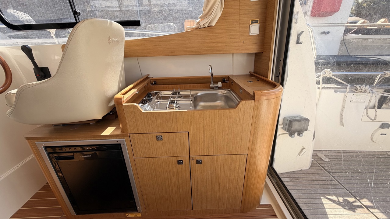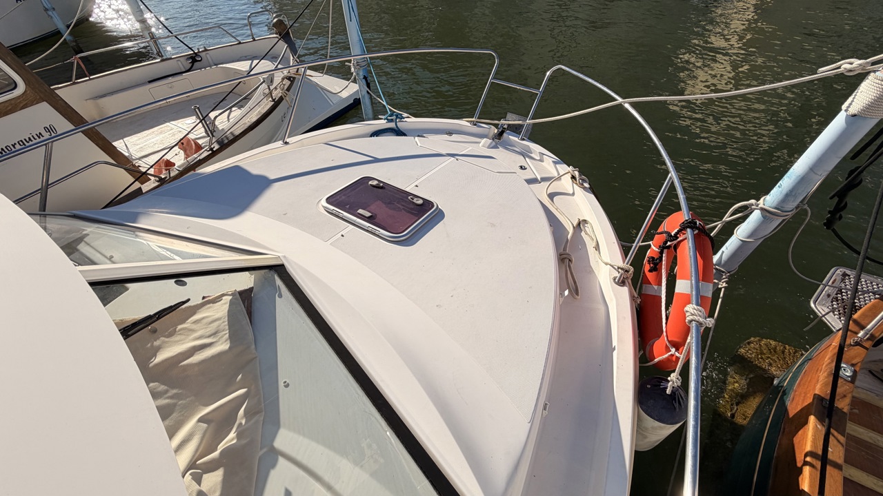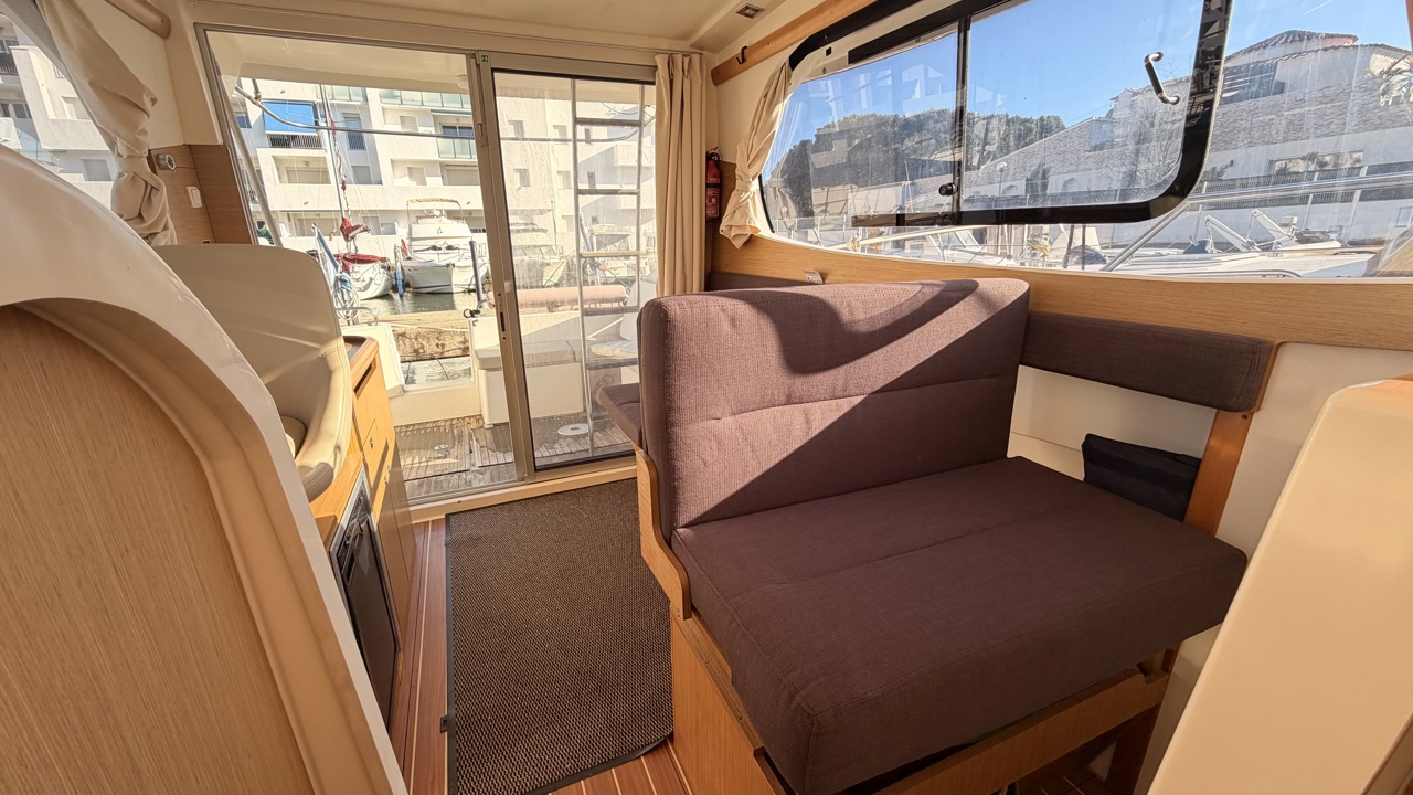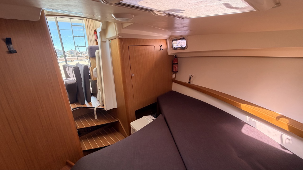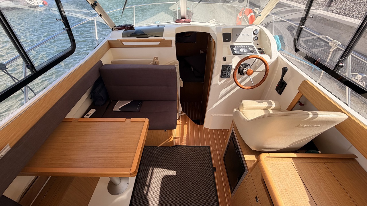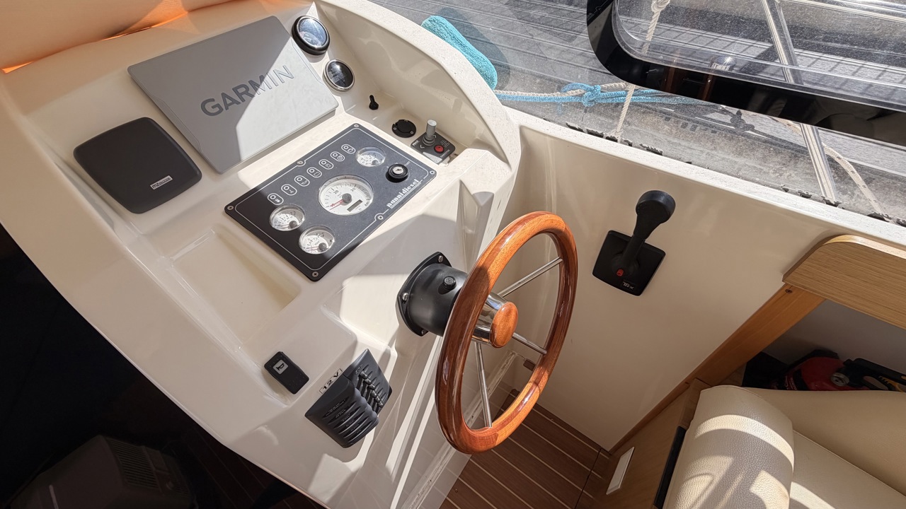 Jeanneau Merry Fisher 8 – 2009 – Nanni Diesel 200 CV – Bateau d’occasion Jeanneau Merry Fisher 8 de 2009 équipé d’un moteur Nanni Diesel T4-200 de 200 CV, fiable et économique en ligne d’arbre. Bateau de 7,48 m avec cabine 2 couchages, carré transformable, coin cuisine et WC. Cockpit spacieux et modulable, idéal pêche ou détente. Entretien suivi avec factures : révision moteur, kit distribution remplacé (2024), antifouling, nettoyage coque, anodes et entretien général. Équipements : propulseur d’étrave, guindeau électrique (ancre 40 m), bain de soleil, bimini, taud, plateforme de bain, douche cockpit, frigo récent (2024), GPS Garmin, VHF récente, sondeur, circuit 12V / 220V. Bateau prêt à naviguer. Visible à Santa Margarita (Costa Brava).Marque Jeanneau