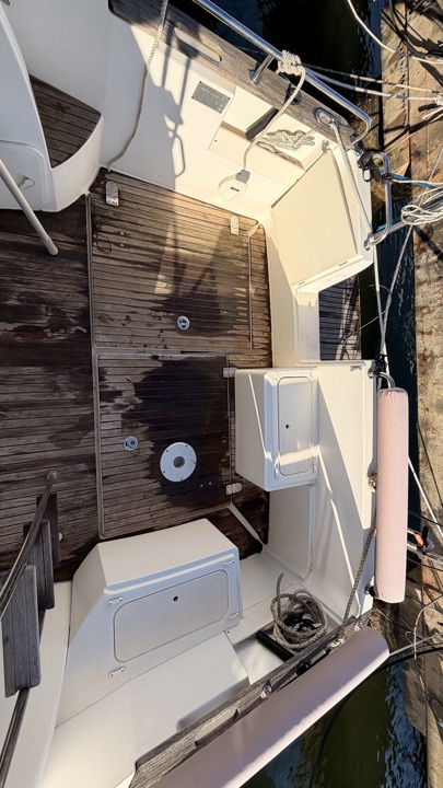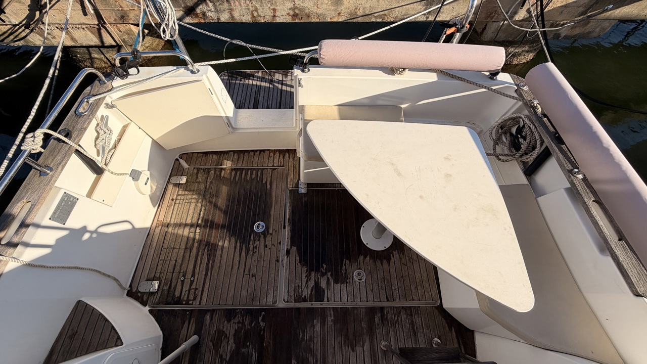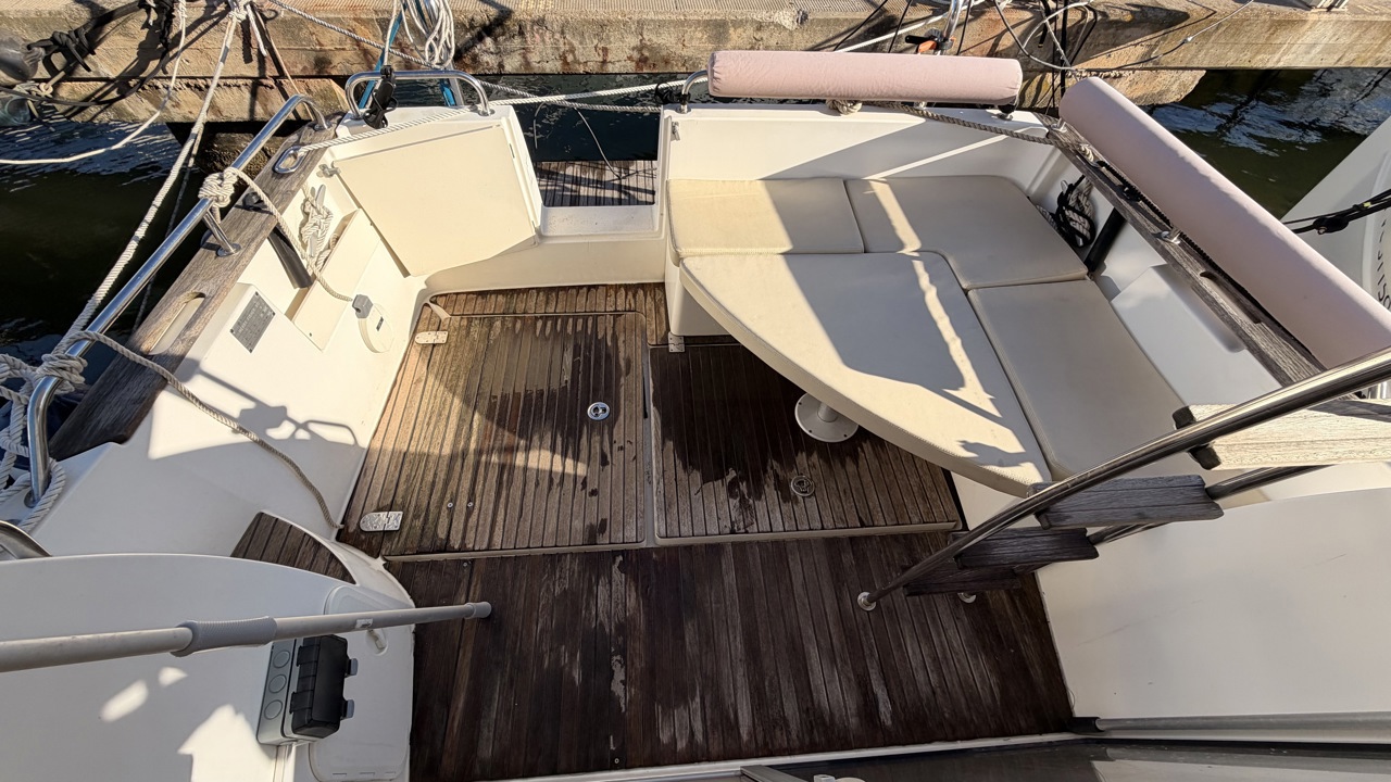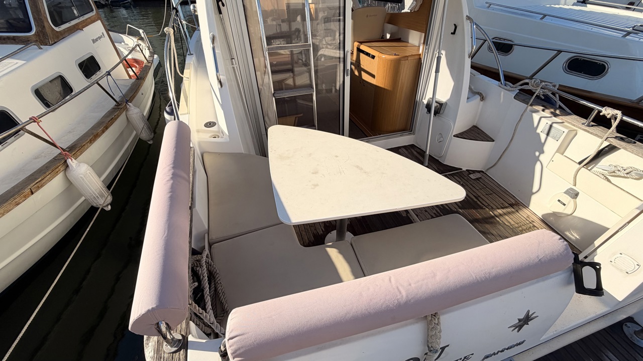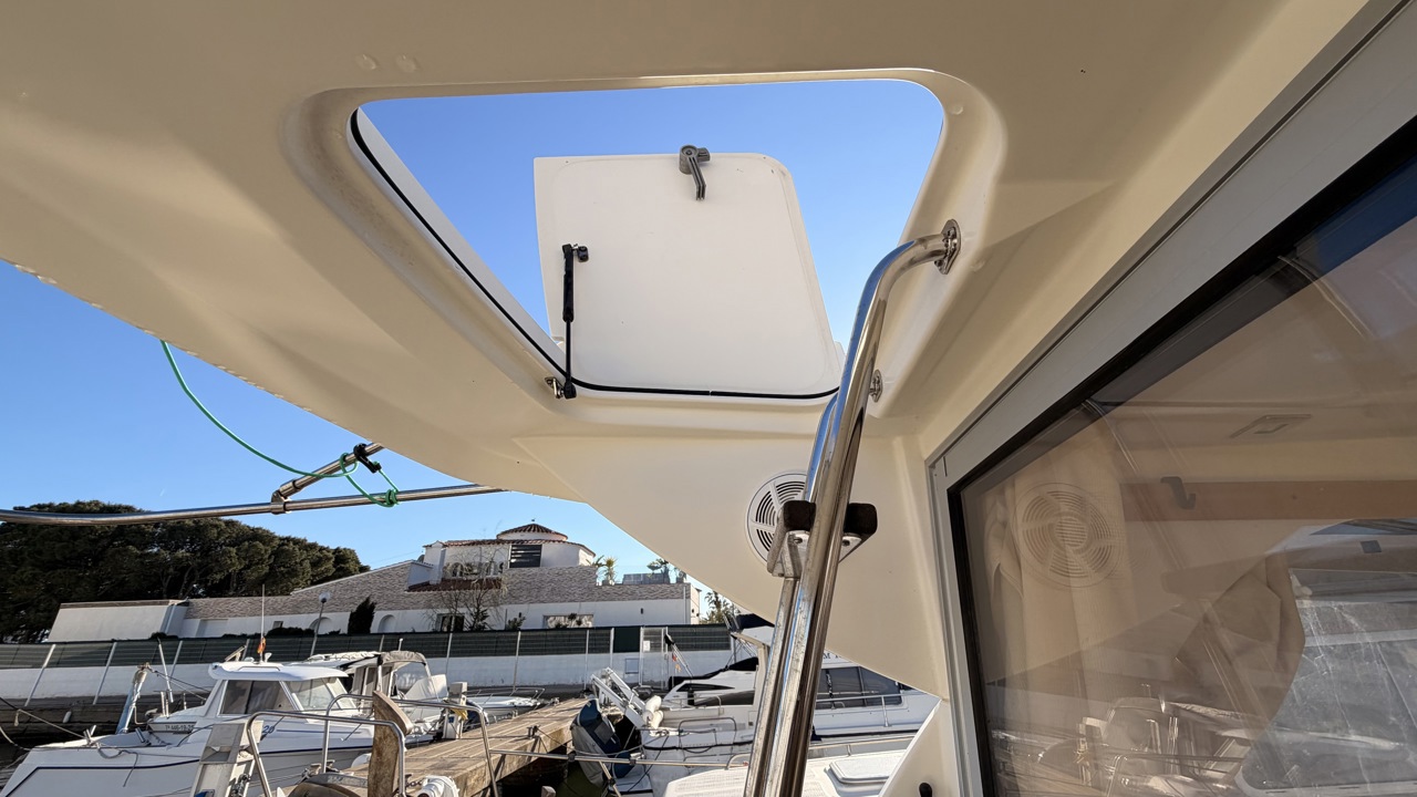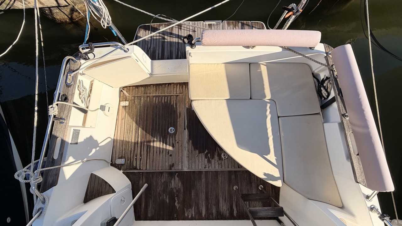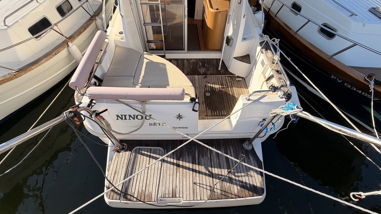cockpit teckdouchette cockpittable cockpitcoussin cockpitfly bridge (Bain de Soleil)propulseur d'étravebimini arrièretaud de soleilplateforme de bainéchelle de bainbain de soleil avantbossoirsancre (40 m)guindeau électriqueantifouling pour la venteportes cannessondeur pêche
