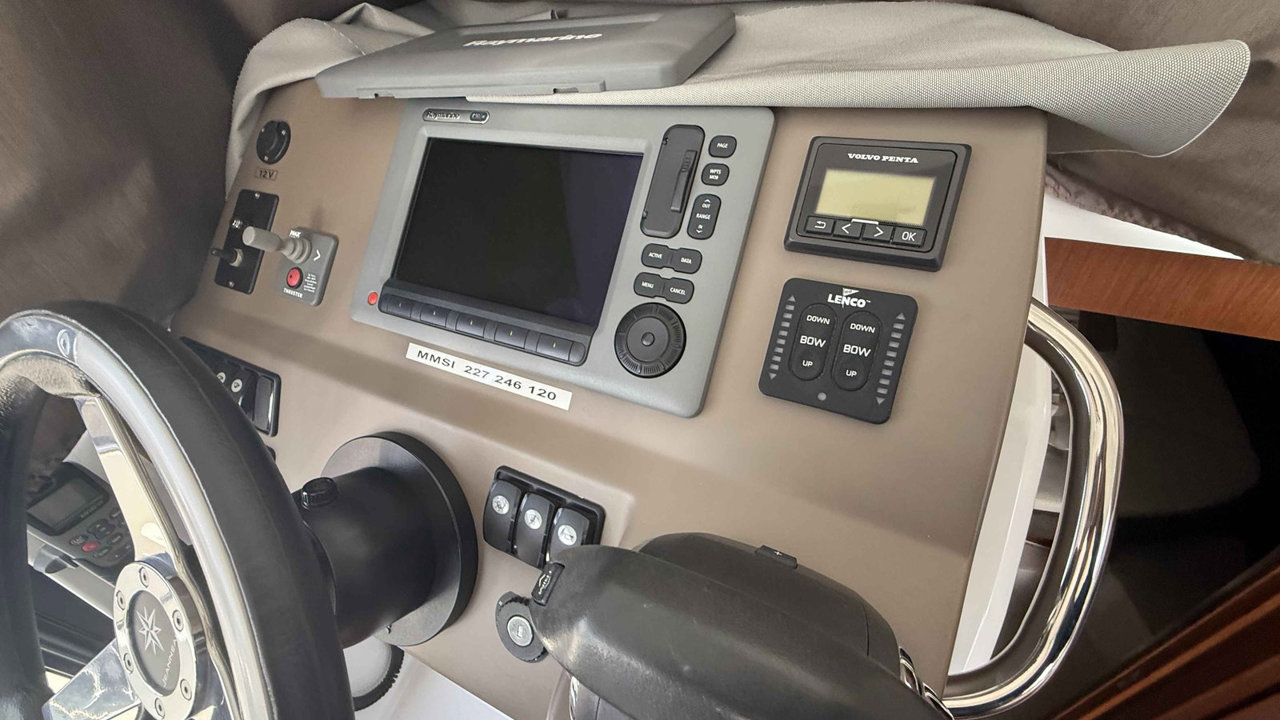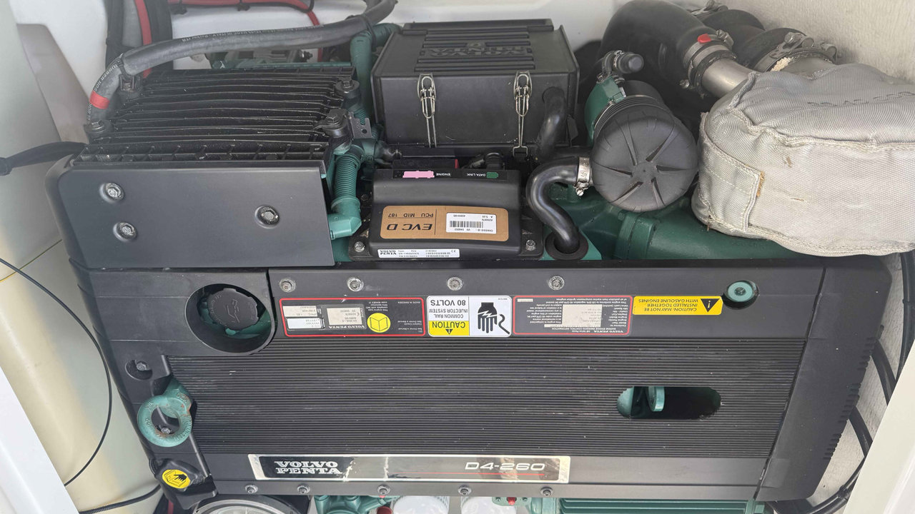 Equipé d'un moteur Volvo Penta D4-260DP (260 cv Diesel), il offre une navigation fluide et économique. Son aménagement intérieur lumineux et fonctionnel comprend : - 2 cabines - 1 salle d'eau avec WC - 4 couchages -Une cuisine équipée et un carré convivial