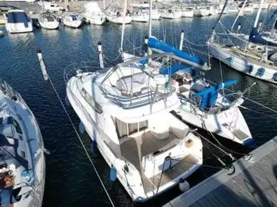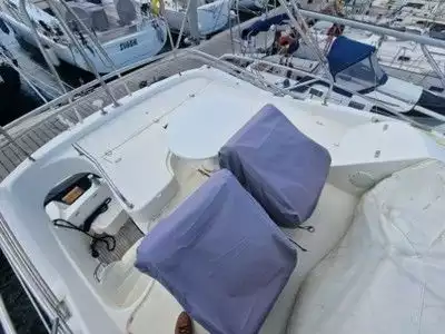 fly bridgepont teckbossoirstaud campingtaud fermeture arrièretaud de soleiltaud de flyplateforme de bainéchelle de bainbain de soleil avantbain de soleil arrièrefly bridgepont teckbossoirstaud campingtaud fermeture arrièretaud de soleiltaud de flyplateforme de bainéchelle de bainbain de soleil avantbain de soleil arrièrecockpit teckdouchette cockpittable cockpitcoussin cockpitéclairage cockpitancreguindeau électriqueportes cannescapacité eau froidesurviepompe de calecouleurmatérieau constructionantifoulingheures bateauannexeréfrigérateurcuisinièreréchaudmicro ondeschauffagechauffe-eauradio-cdhi-fiWC marinspilote autocompasVHFGPSsondeursondeur pêcherépetiteurradarchargeurbatteriesbatteries de servicecircuit 220Vcircuit 12Vprise de quai