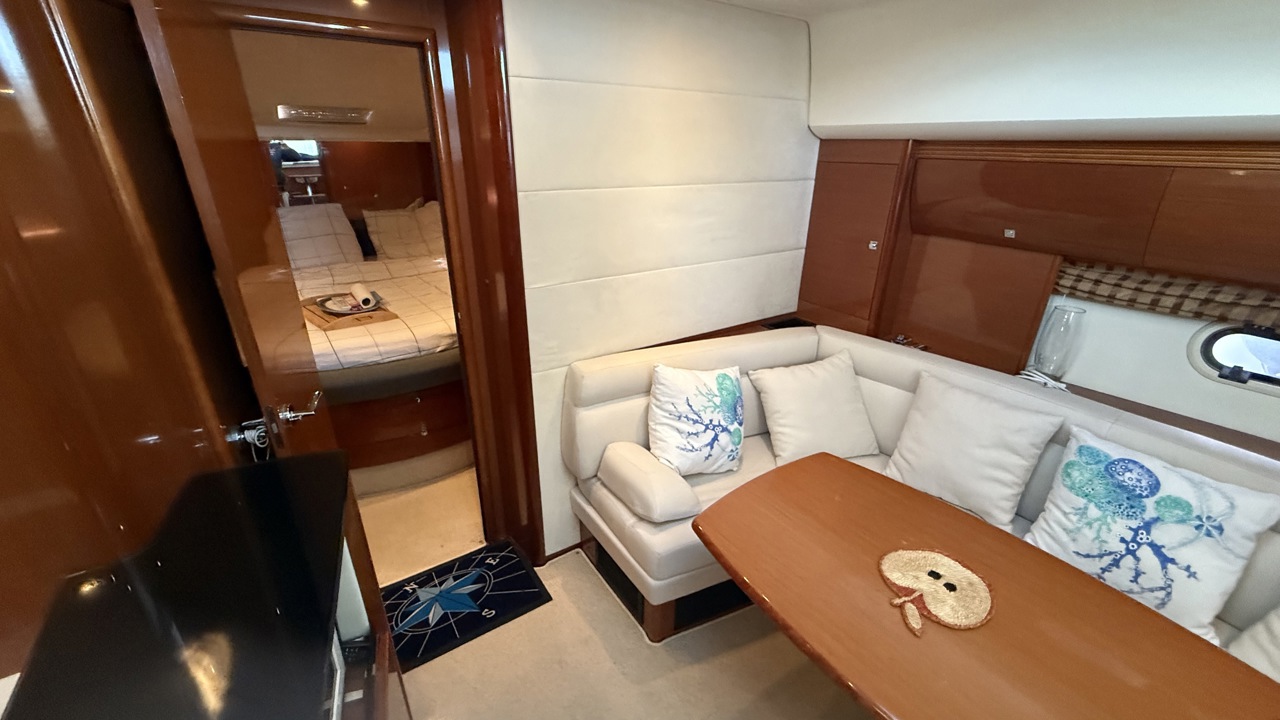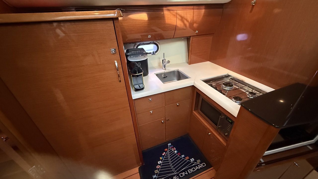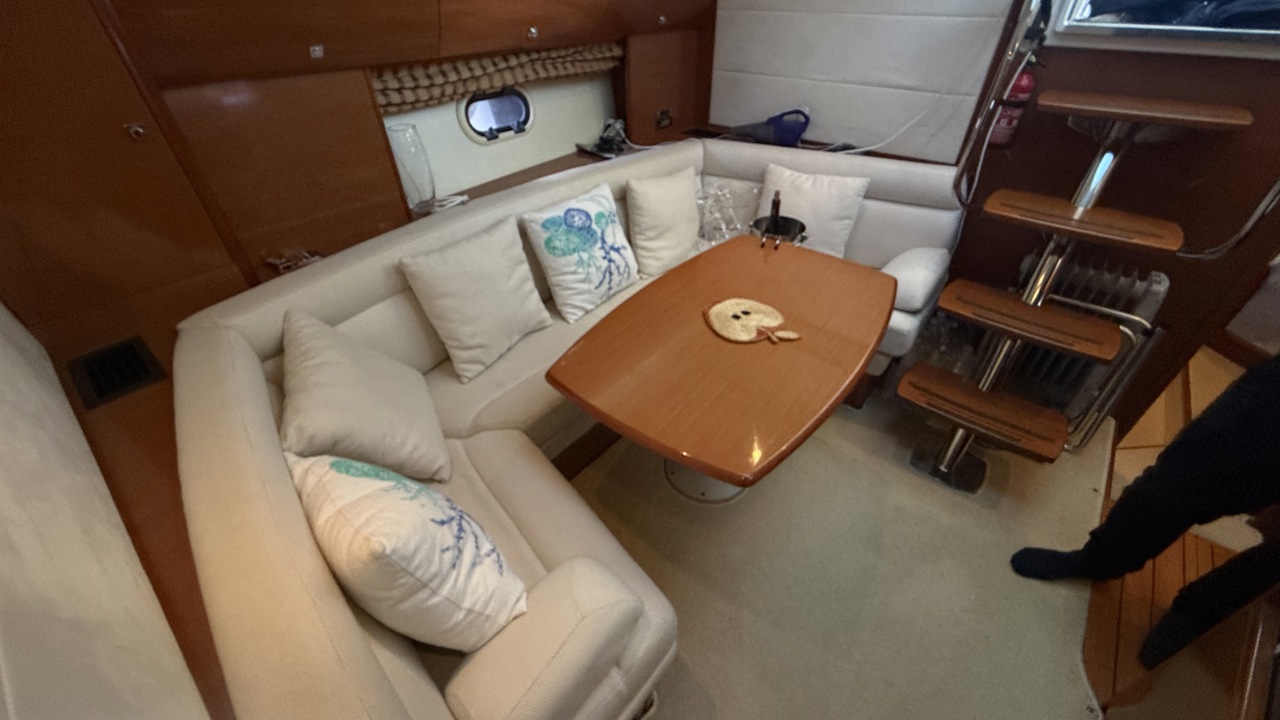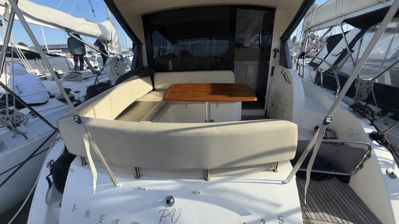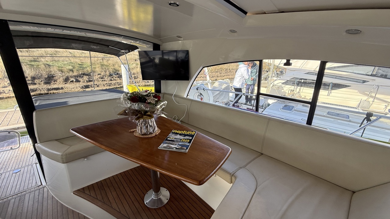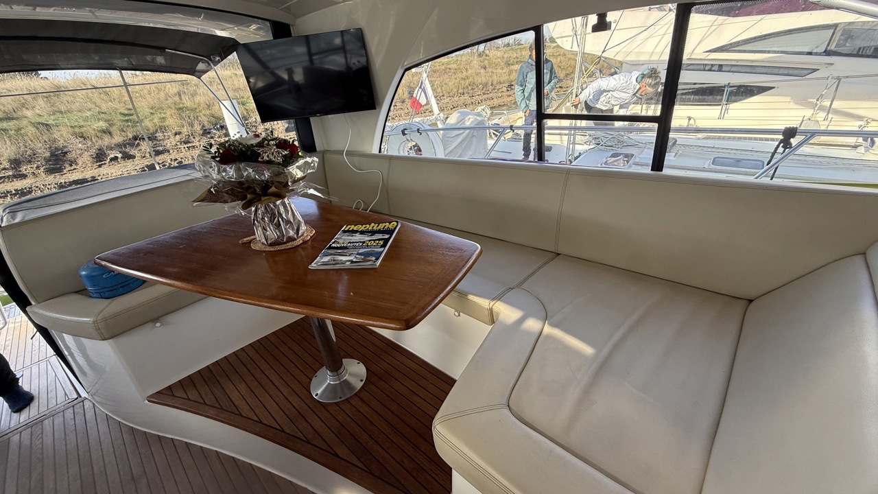 Prestige 42 – Vedette habitable de référence, motorisation Volvo Penta D6 Nous vous proposons ce Prestige 42, vedette emblématique du chantier Jeanneau, reconnue pour la qualité de sa construction, son excellent comportement marin et son niveau de confort en croisière. Cette unité de 13,36 m, parfaitement adaptée à la croisière côtière et semi-hauturière, offre des volumes équilibrés, une circulation fluide à bord et des équipements complets, répondant aux attentes d’un programme familial exigeant. Caractéristiques principales Longueur hors tout : 13,36 m Largeur : 4,19 m Année : 2009 Motorisation 2 x Volvo Penta D6 – 370 CV diesel Puissance cumulée : 740 CV Heures moteurs : 1 150 h Motorisation reconnue pour sa fiabilité et son rendement Joystick de manœuvre, facilitant les évolutions portuaires Aménagements intérieurs L’intérieur, lumineux et fonctionnel, est conçu pour offrir un réel confort en croisière : Deux cabines indépendantes Carré spacieux convertible Cuisine équipée : plaque de cuisson, micro-ondes, réfrigérateur, congélateur Salle d’eau avec eau chaude Climatisation Télévision Groupe électrogène, assurant une autonomie complète au mouillage Navigation & électronique GPS / Traceur Sondeur Loch / speedomètre Compas Pilote automatique VHF Équipements extérieurs Cockpit convivial avec table et coussins Bain de soleil avant Plateforme de bain avec échelle Douche de cockpit Guindeau électrique Propulseur d’étrave Taud de cockpit Éclairage extérieur Prise de quai 220 V Bateau soigneusement entretenu, sain et prêt à naviguer. Un Prestige 42 bien équipé, offrant un excellent compromis entre confort, performances et facilité d’utilisation.Marque Jeanneau