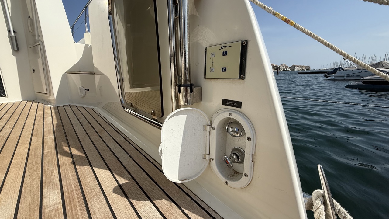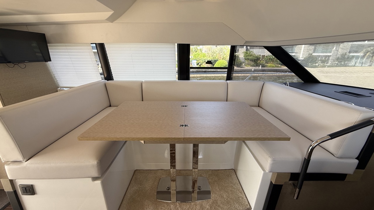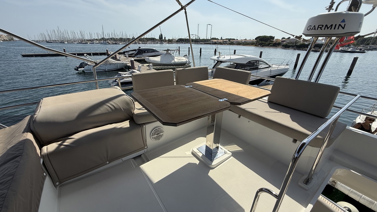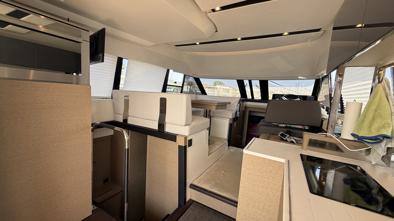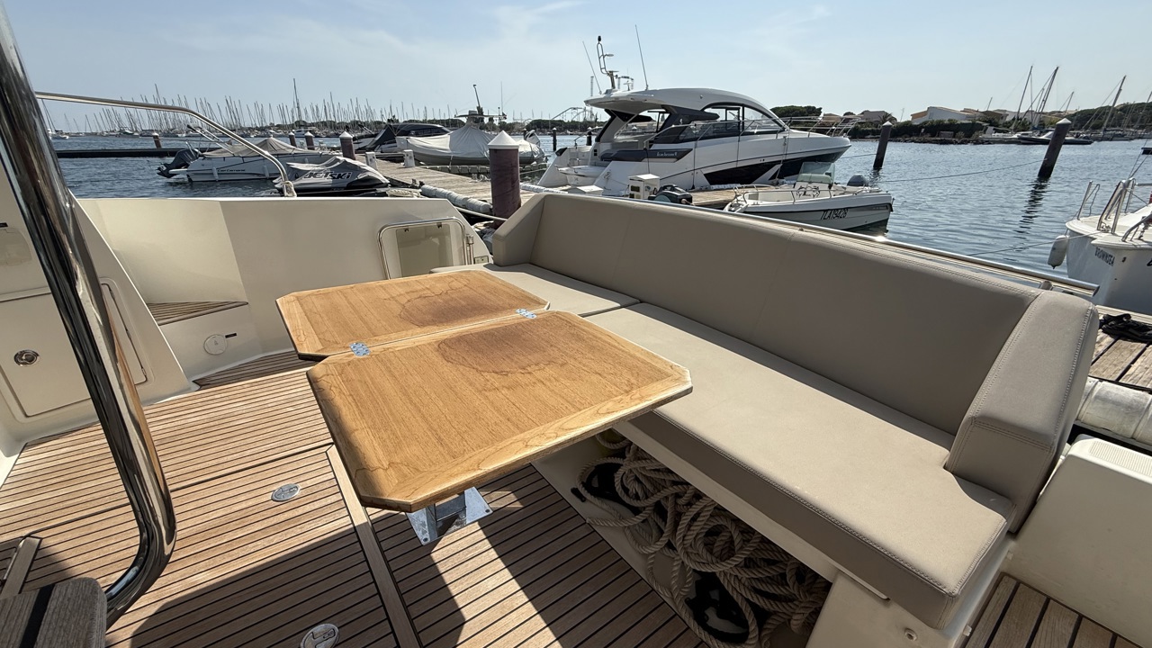 cockpit teckcoussin cockpitéclairage cockpitdouchette cockpit avec mitigeur températuretable cockpit au Flybain de soleil avantéchelle de bainflapsfly bridgepropulseur d'étrave (double helice)bimini FLYBRIDGEplateforme de bain hydrauliqueMouillage completguindeau électriqueannexe (BOMBARD latté AX1 RU)moteur annexe TORQEEDO 1003 Travel