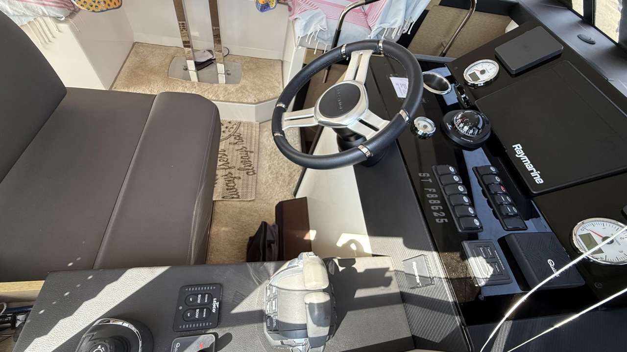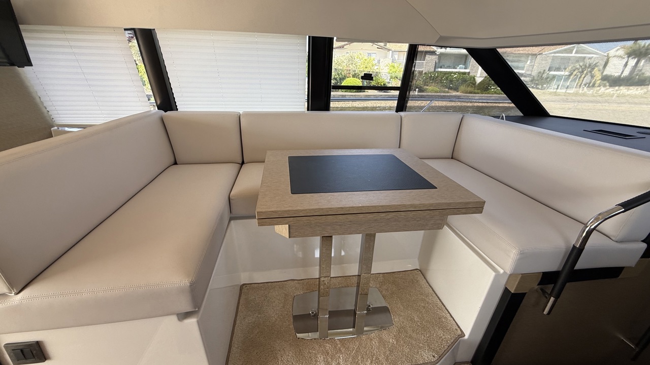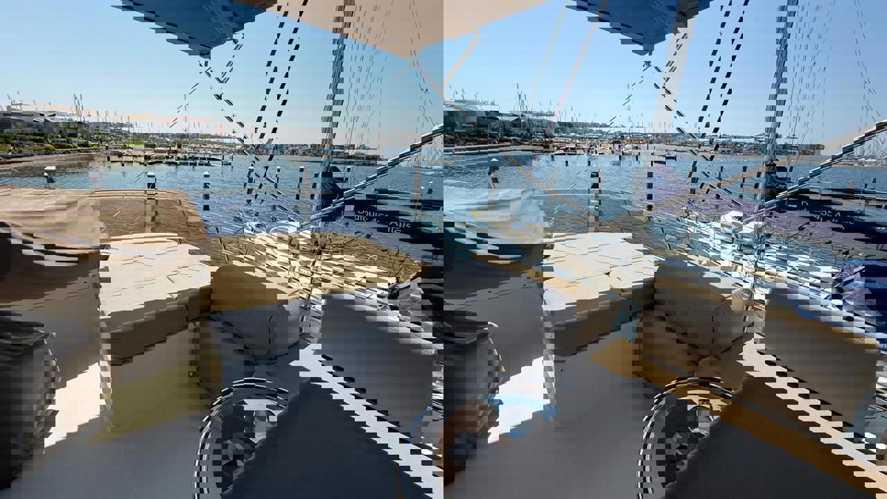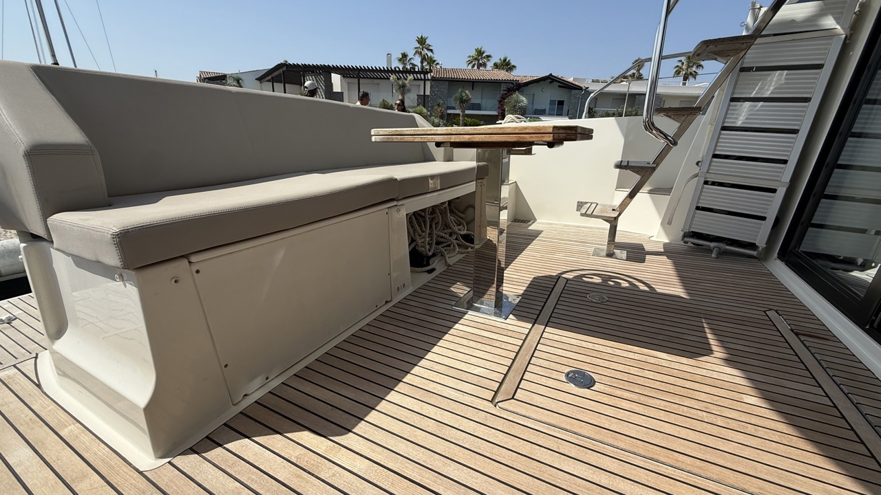 cockpit teckcoussin cockpitéclairage cockpitdouchette cockpit avec mitigeur températuretable cockpit au Flybain de soleil avantéchelle de bainflapsfly bridgepropulseur d'étrave (double helice)bimini FLYBRIDGEplateforme de bain hydrauliqueMouillage completguindeau électriqueannexe (BOMBARD latté AX1 RU)moteur annexe TORQEEDO 1003 Travel