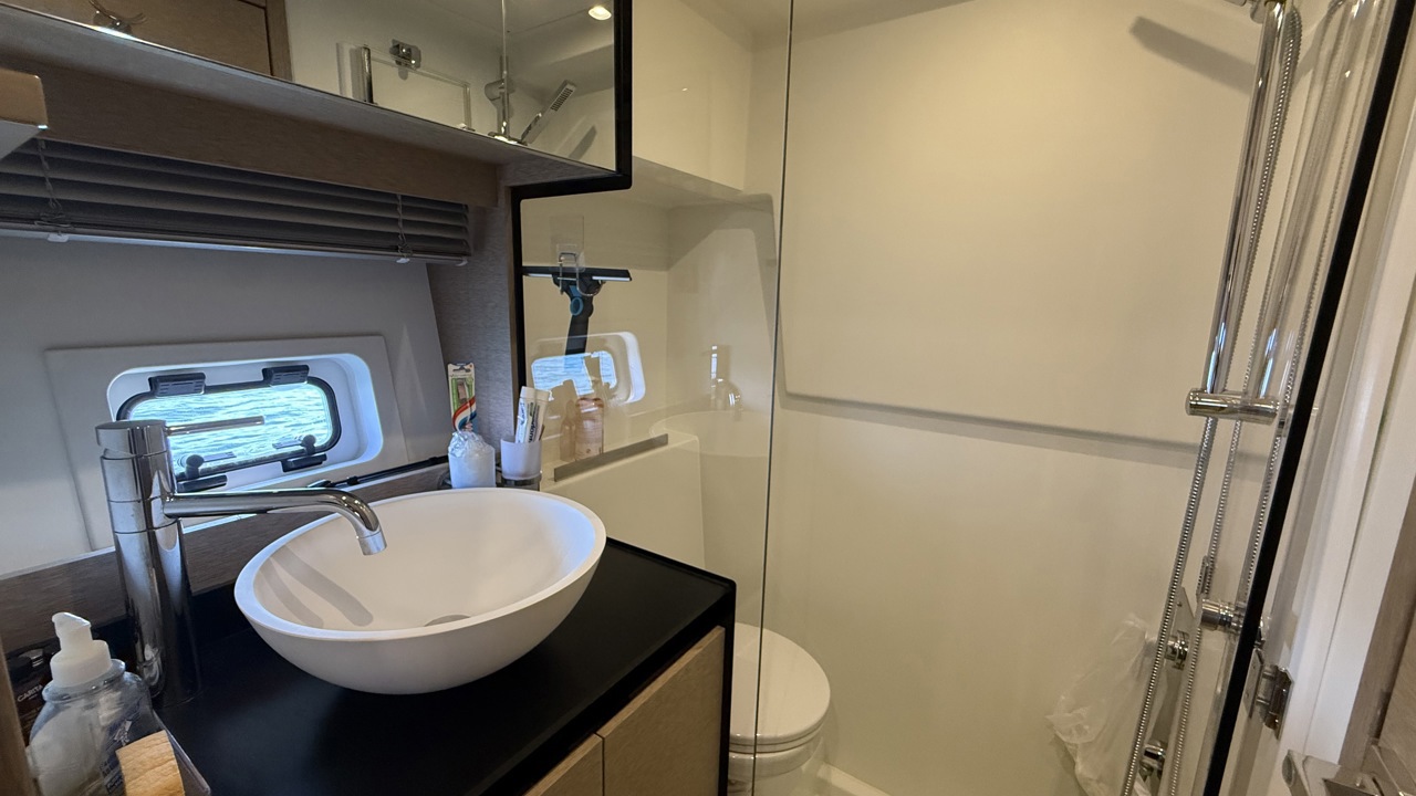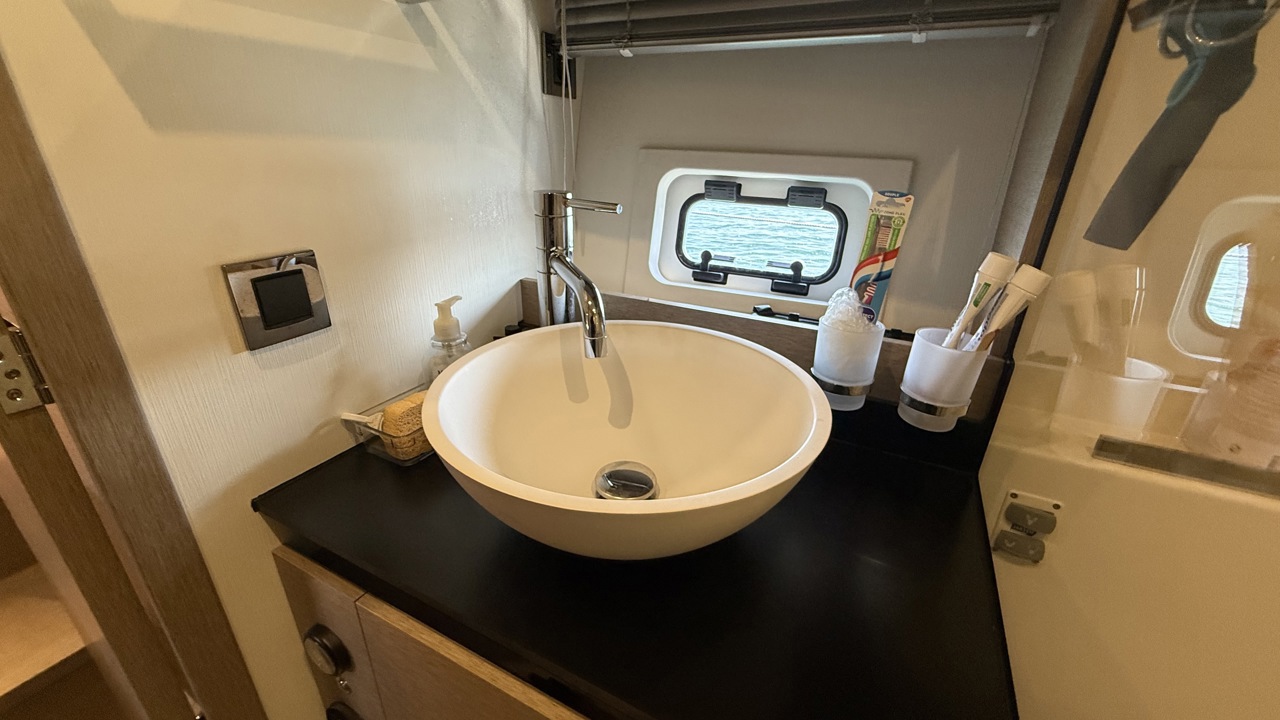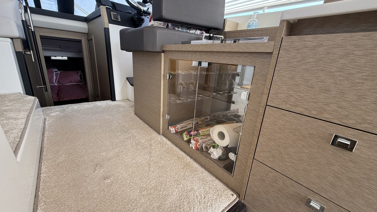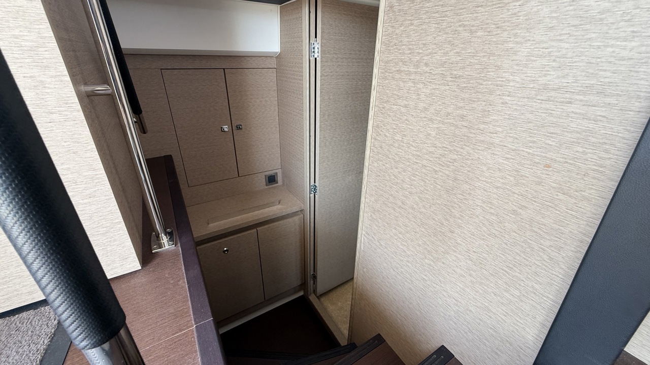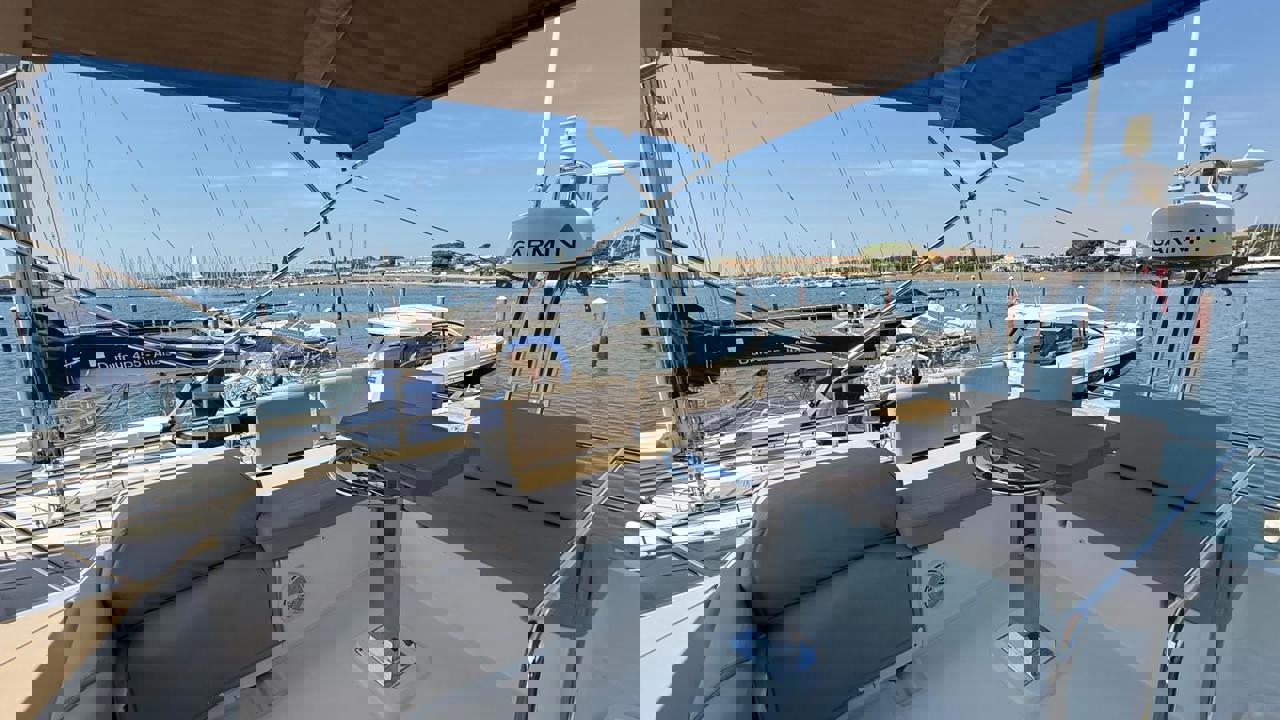 cockpit teckcoussin cockpitéclairage cockpitdouchette cockpit avec mitigeur températuretable cockpit au Flybain de soleil avantéchelle de bainflapsfly bridgepropulseur d'étrave (double helice)bimini FLYBRIDGEplateforme de bain hydrauliqueMouillage completguindeau électriqueannexe (BOMBARD latté AX1 RU)moteur annexe TORQEEDO 1003 Travel