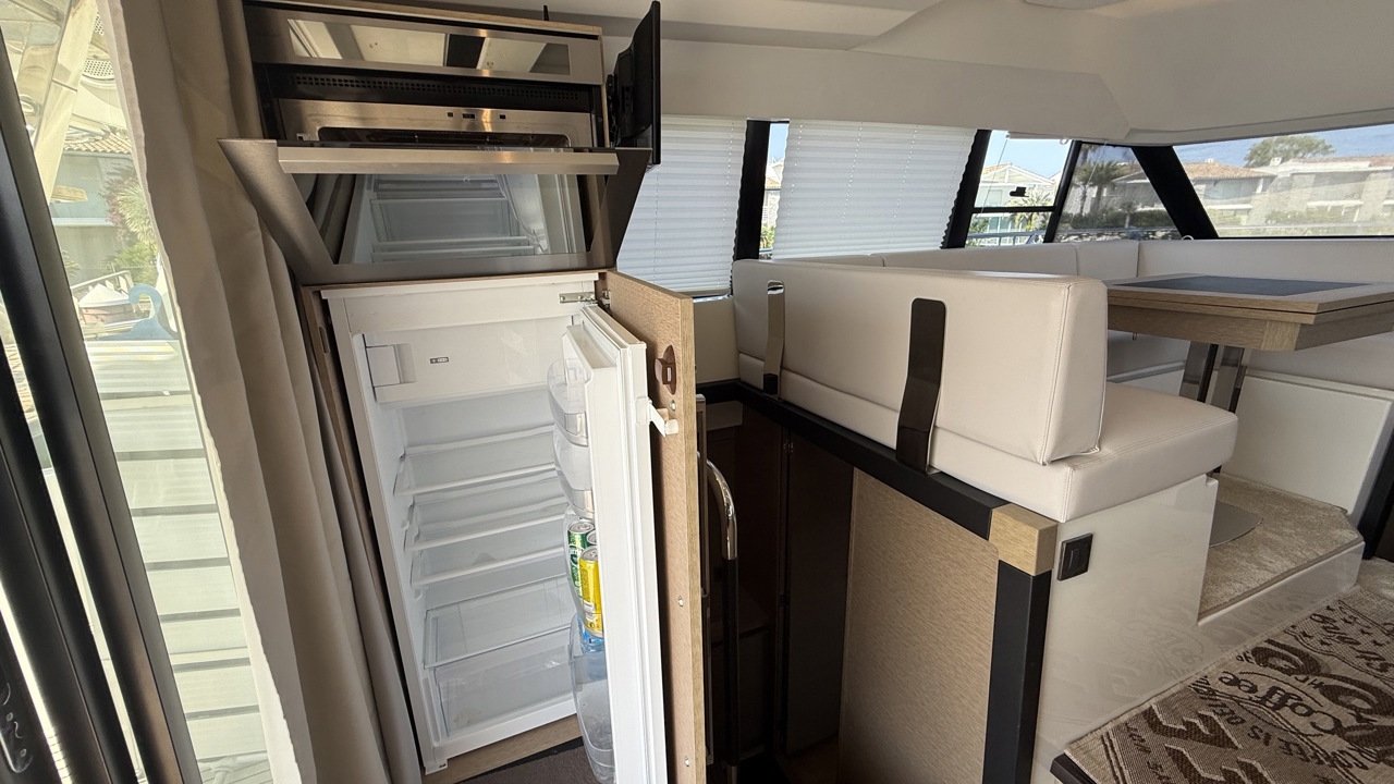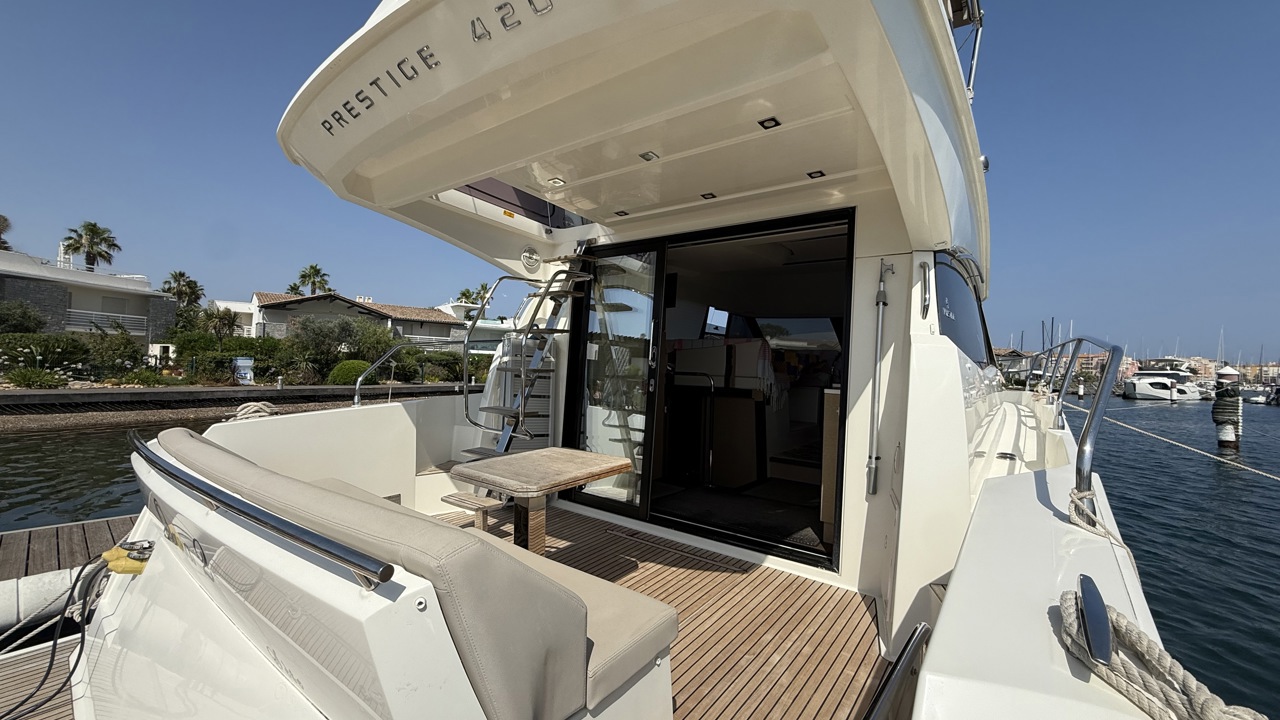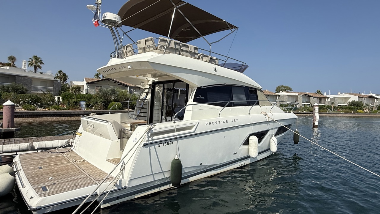 À la recherche d’un yacht conjuguant élégance, performance et confort absolu ? Ce Prestige 420 Fly de 2019, première main, représente une opportunité rare sur le marché. Toujours entretenu exclusivement chez concessionnaire JEANNEAU, il se présente aujourd’hui dans un état proche du neuf, prêt à offrir à ses futurs propriétaires des moments de navigation inoubliables. Le Prestige 420 Fly est reconnu pour son design raffiné et ses lignes modernes. Avec ses 13,06 mètres de longueur, il offre un équilibre parfait entre maniabilité et habitabilité. Le flybridge spacieux, véritable terrasse sur la mer, permet de profiter pleinement des croisières ensoleillées, tandis que le poste de pilotage offre une visibilité optimale et une expérience de navigation sécurisée. À l’intérieur, l’ambiance est chaleureuse et contemporaine. Le salon baigné de lumière grâce aux larges vitrages latéraux crée une atmosphère conviviale, idéale pour recevoir famille et amis. La cuisine ouverte, parfaitement équipée, facilite la vie à bord et s’intègre harmonieusement à l’espace de vie. Les deux cabines, dont une suite propriétaire avec salle d’eau privative, garantissent confort et intimité lors des séjours prolongés. Côté motorisation, ce modèle est équipé de deux moteurs Volvo Penta IPS 500, réputés pour leur fiabilité et leur efficacité. Ils assurent une navigation fluide, des manœuvres simplifiées et une consommation optimisée. Grâce à un suivi rigoureux et régulier chez le concessionnaire officiel, ces moteurs sont dans un état irréprochable, offrant sérénité et sécurité à l’acquéreur. Ce Prestige 420 Fly se distingue également par son équipement haut de gamme : électronique complète, climatisation, générateur, passerelle hydraulique, et bien plus encore. Chaque détail a été pensé pour garantir confort et plaisir à bord, que ce soit lors de courtes sorties ou de longues croisières. Acheter ce yacht, c’est investir dans un bateau qui allie le prestige d’une grande marque, la tranquillité d’un entretien suivi par des professionnels, et la certitude d’un état quasi neuf. Rare sur le marché, ce modèle de 2019, première main, est une véritable opportunité pour les passionnés exigeants. Ne laissez pas passer cette occasion unique de devenir propriétaire d’un Prestige 420 Fly prêt à naviguer immédiatement, sans compromis sur la qualité ni sur la fiabilité.Marque Jeanneau