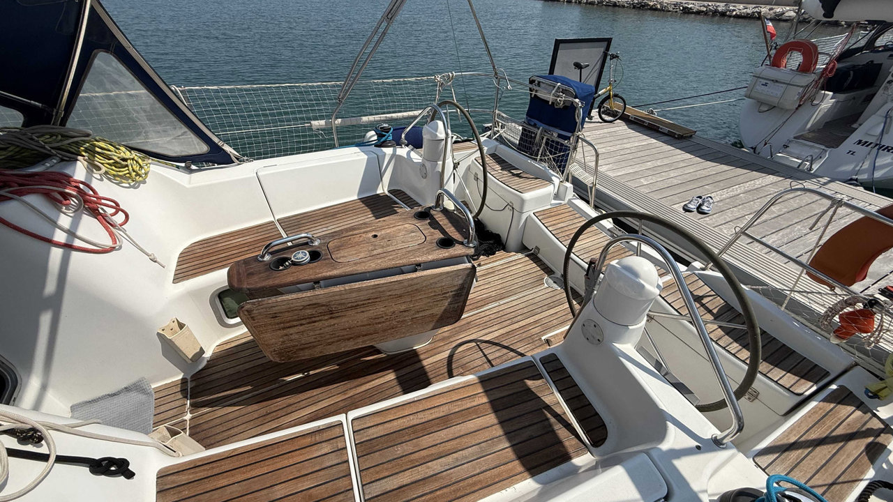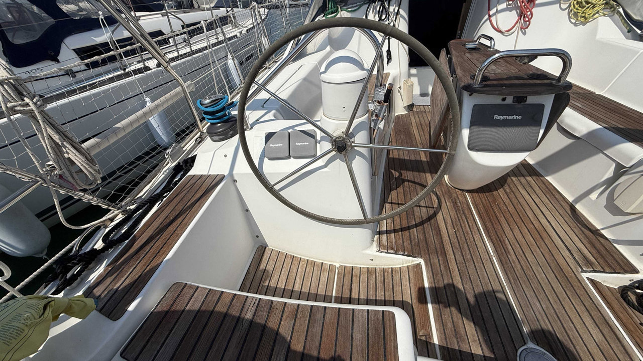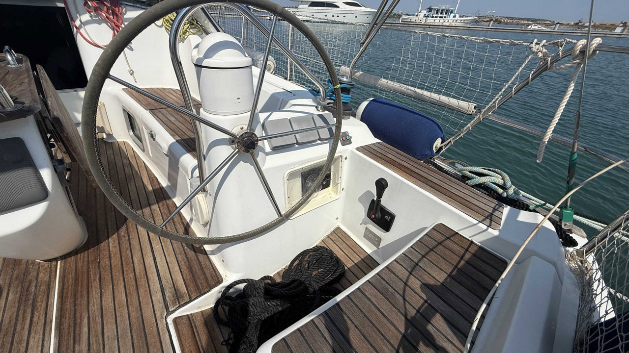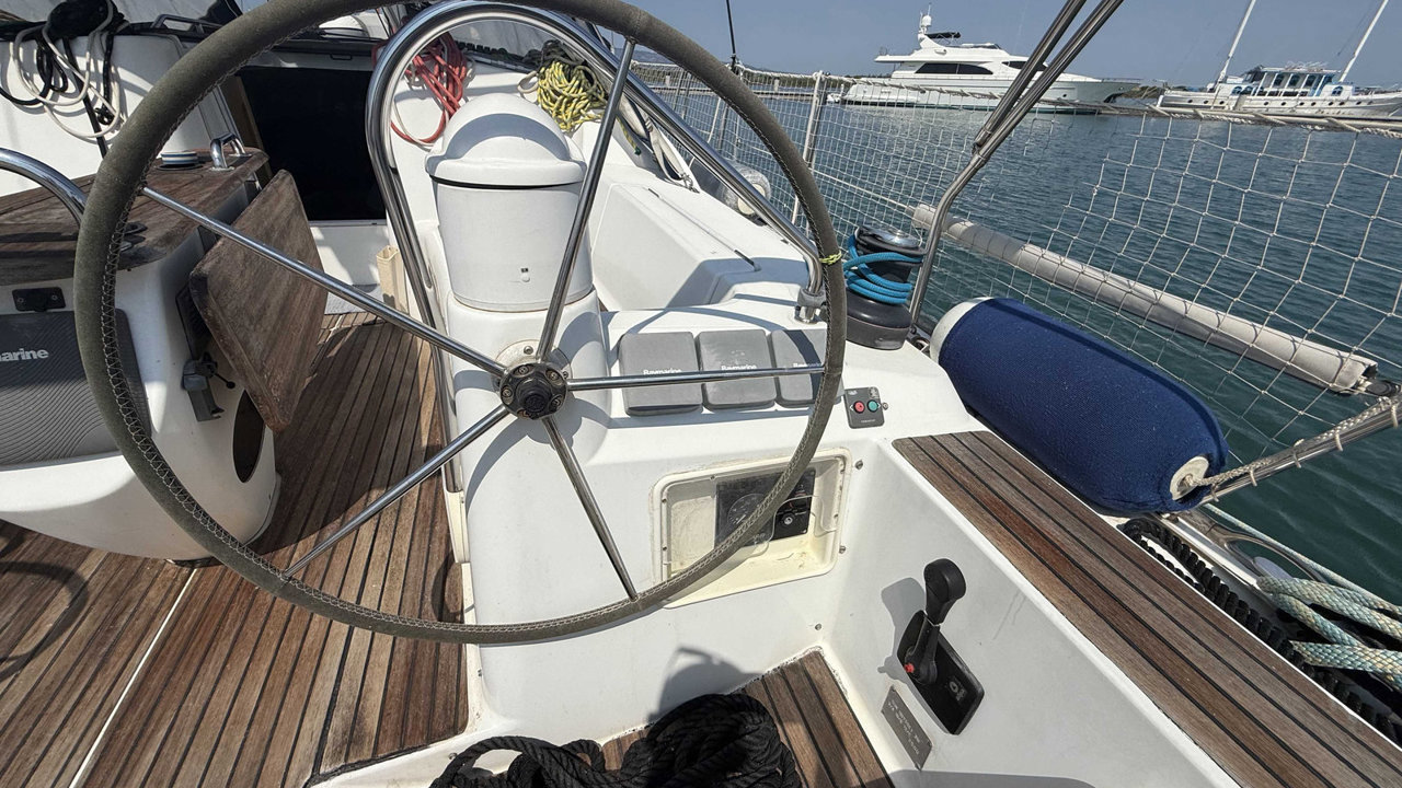 annexeantifoulingcouleurheures bateaumatérieau constructionmoteur annexepompe de calesurviebarre à rouecockpit teckdouchette cockpitéclairage cockpittable cockpitalternateurbatteriesbatteries de servicechargeurcircuit 12Vcircuit 220Vpanneau solaireprise de quaiantennecompasgirouetteGPSloch speedopilote autoplotterradarrépetiteursondeurVHFbiminicapote descenteéchelle de bainplateforme de bainpropulseur d'étravechauffagechauffe-eauclimatisationcuisinièrefourhi-fimicro ondesradio-cdréfrigérateurtable à cartesWC marinsancrecoupe oringuindeau électriquecapacité eau froidecapacité eau noirechariot grand voileenrouleurgenoisgrand voile semi lattéegréement de spilazy baglazy jackmanivelle de winchpatarasrail grand voilerenvoi de drissespiwinch
