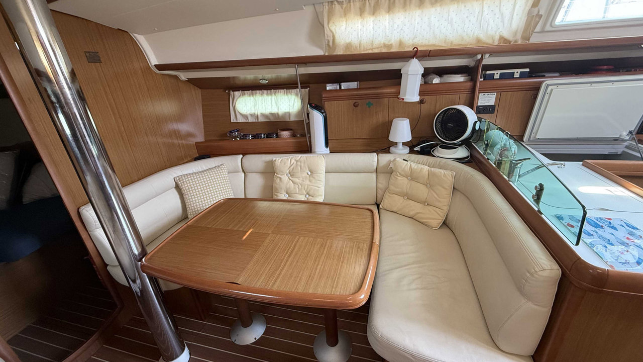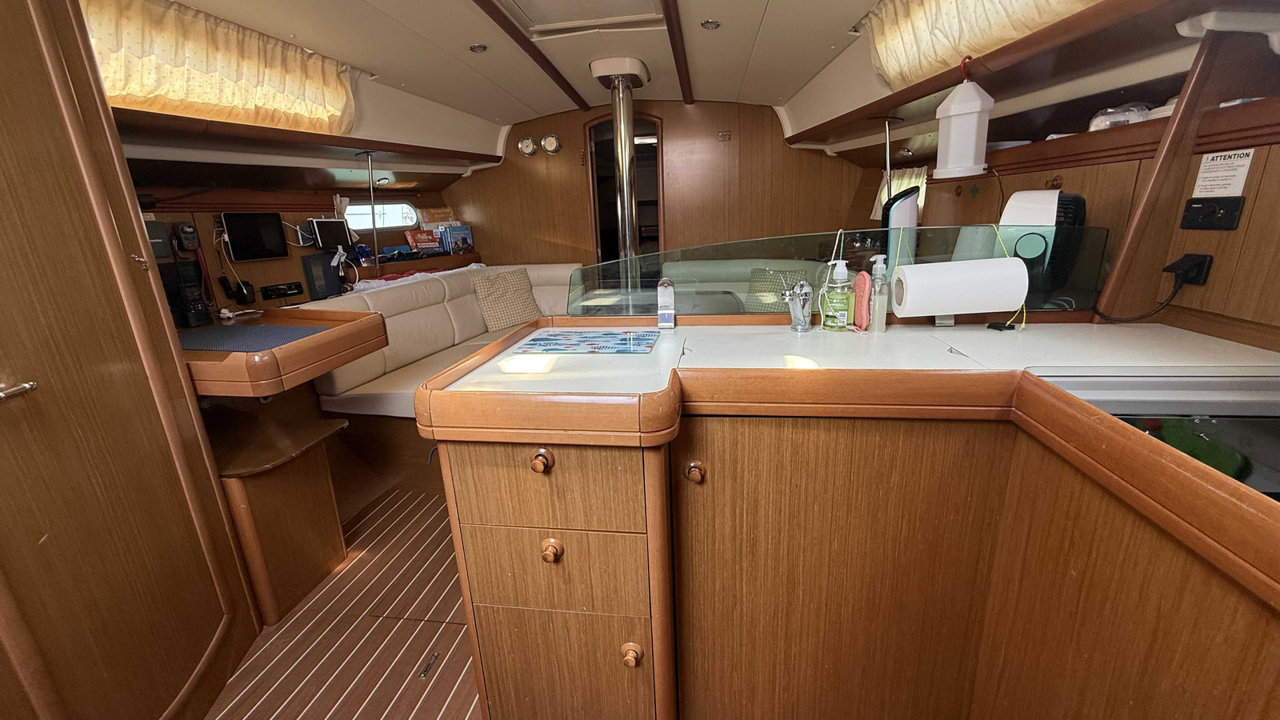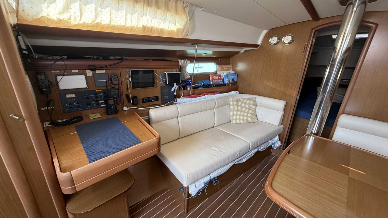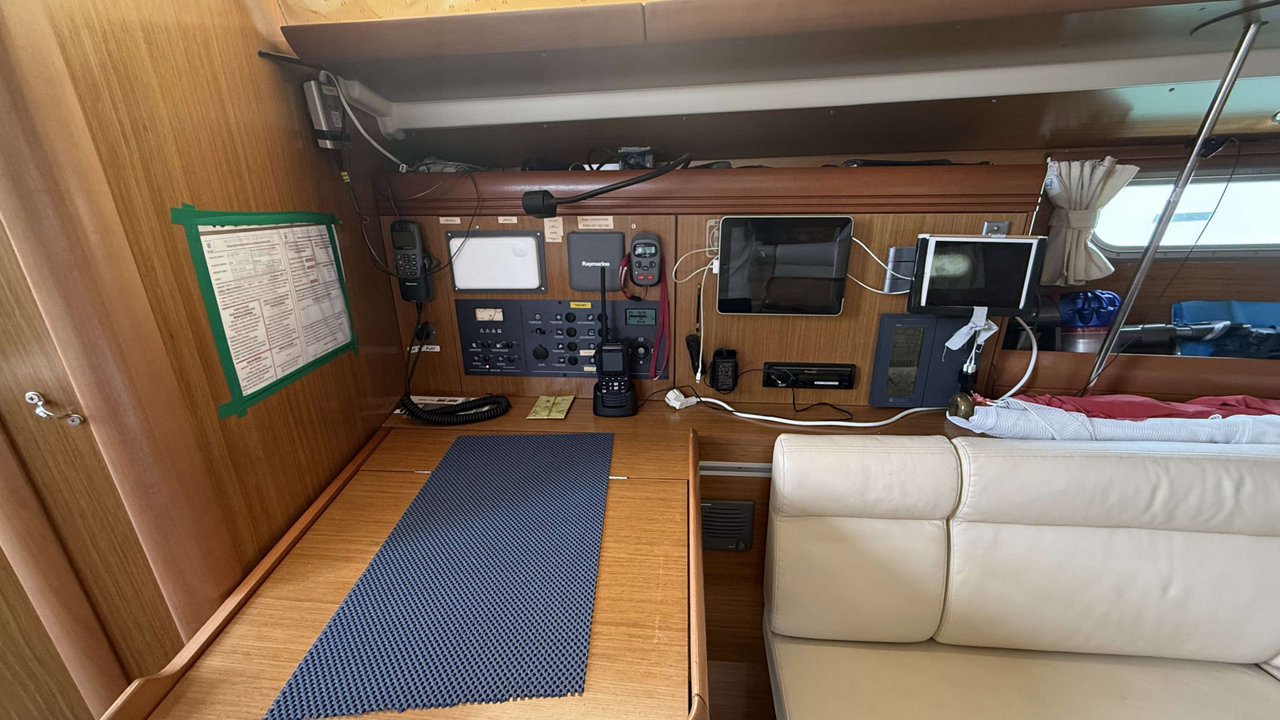 annexeantifoulingcouleurheures bateaumatérieau constructionmoteur annexepompe de calesurviebarre à rouecockpit teckdouchette cockpitéclairage cockpittable cockpitalternateurbatteriesbatteries de servicechargeurcircuit 12Vcircuit 220Vpanneau solaireprise de quaiantennecompasgirouetteGPSloch speedopilote autoplotterradarrépetiteursondeurVHFbiminicapote descenteéchelle de bainplateforme de bainpropulseur d'étravechauffagechauffe-eauclimatisationcuisinièrefourhi-fimicro ondesradio-cdréfrigérateurtable à cartesWC marinsancrecoupe oringuindeau électriquecapacité eau froidecapacité eau noirechariot grand voileenrouleurgenoisgrand voile semi lattéegréement de spilazy baglazy jackmanivelle de winchpatarasrail grand voilerenvoi de drissespiwinch