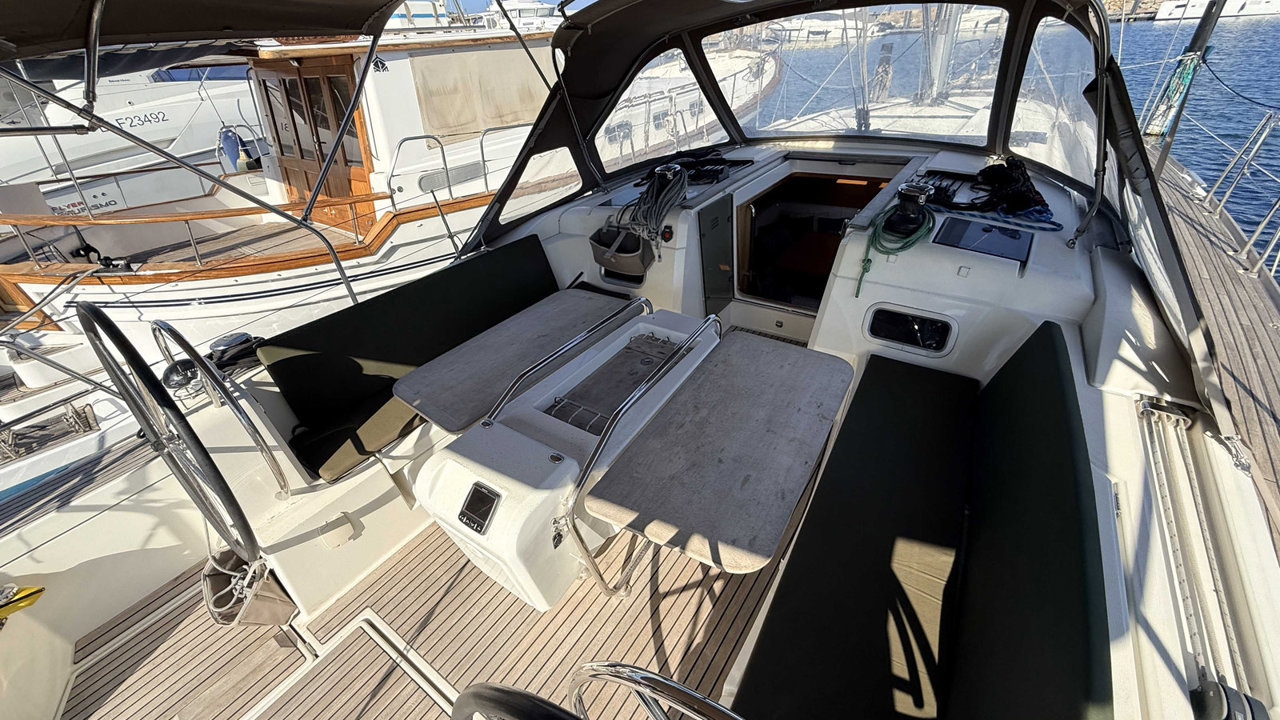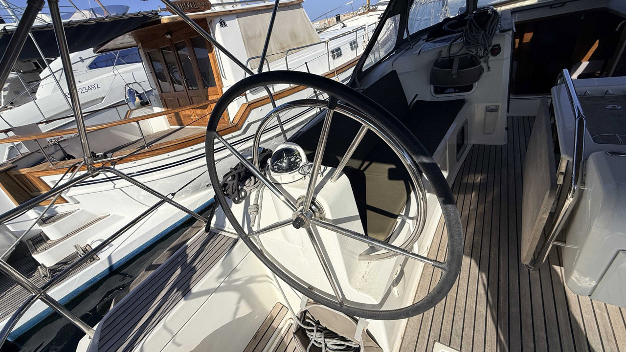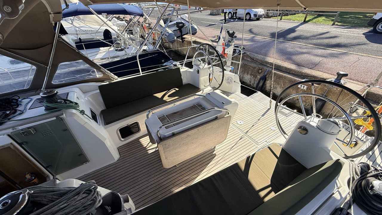 barre à rouecockpit teckcoussin cockpitdouchette cockpitéclairage cockpittable cockpitbiminicapote descenteéchelle de bainplateforme de bainpont teckpropulseur d'étraveannexemoteur annexeancreguindeau électrique