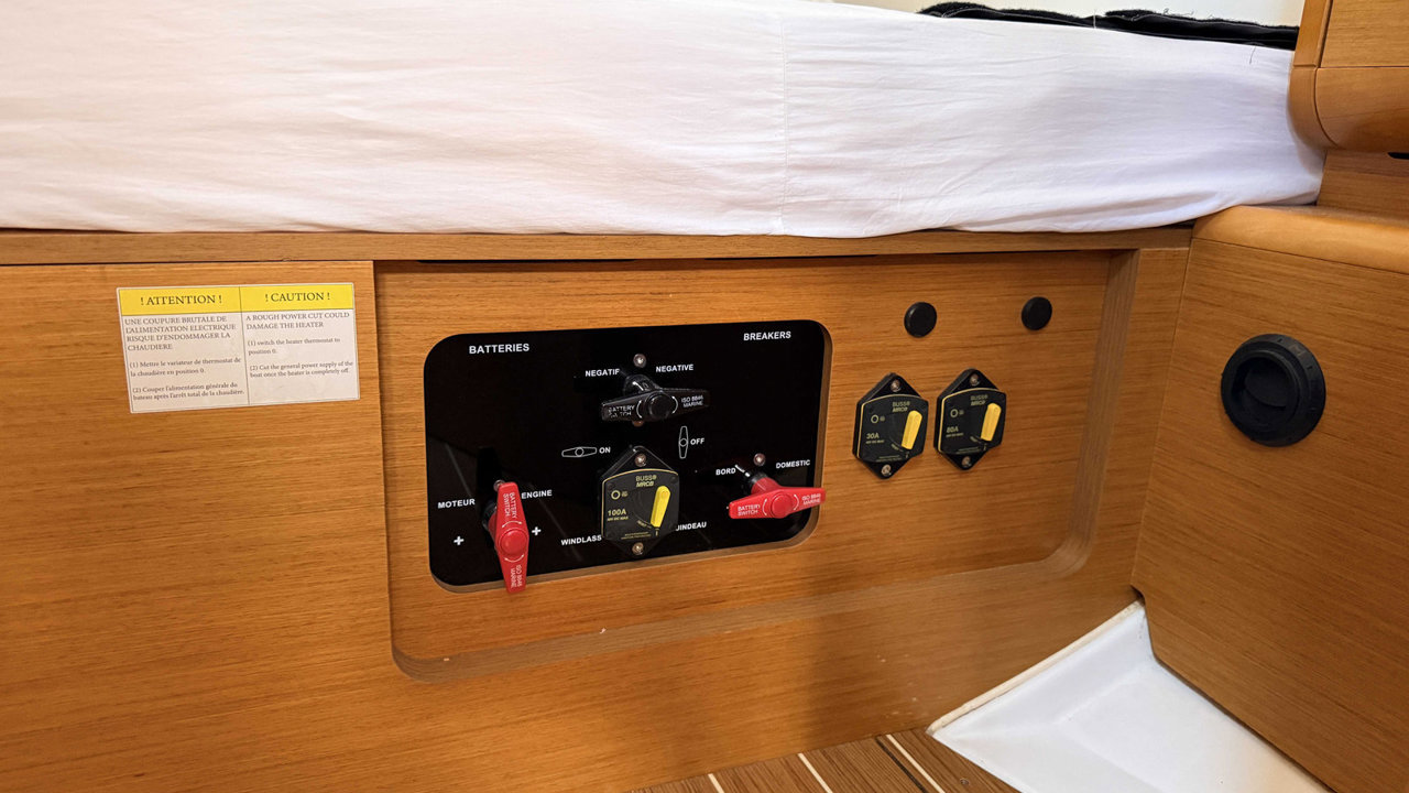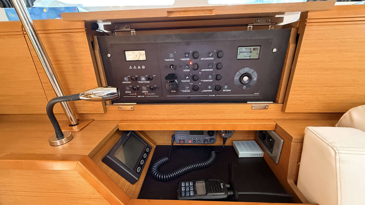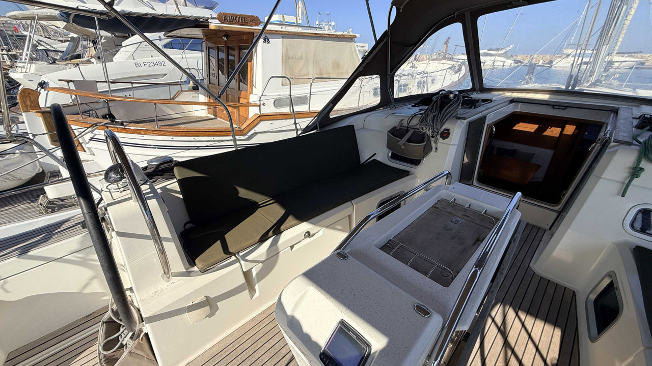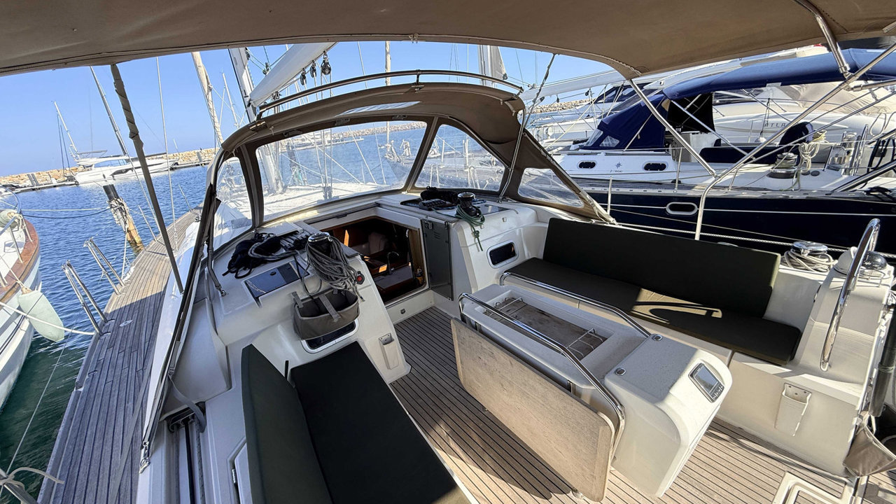 barre à rouecockpit teckcoussin cockpitdouchette cockpitéclairage cockpittable cockpitbiminicapote descenteéchelle de bainplateforme de bainpont teckpropulseur d'étraveannexemoteur annexeancreguindeau électrique