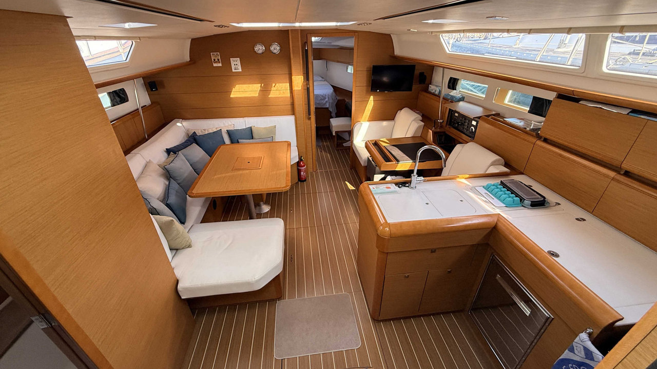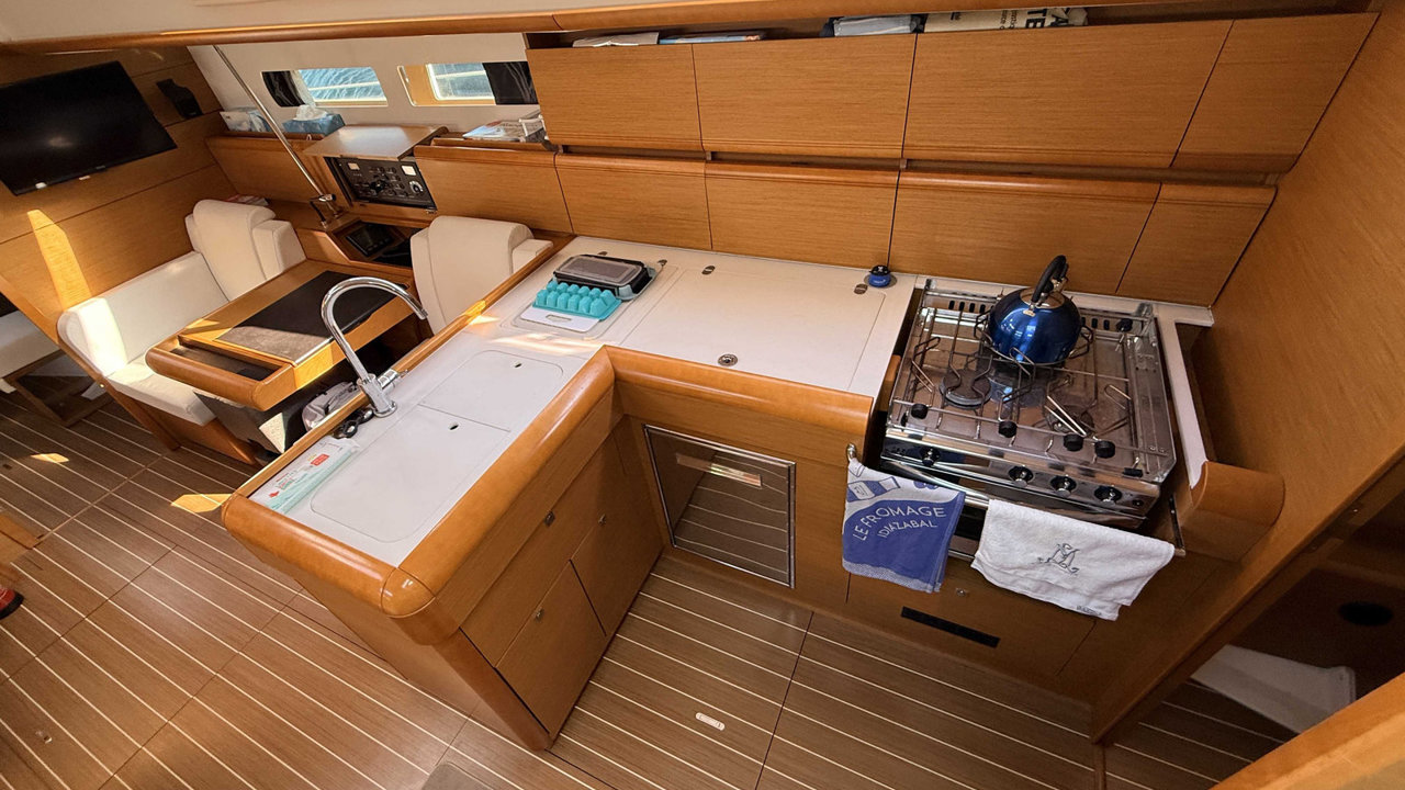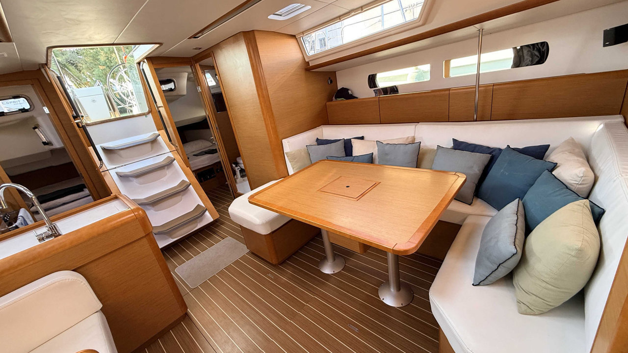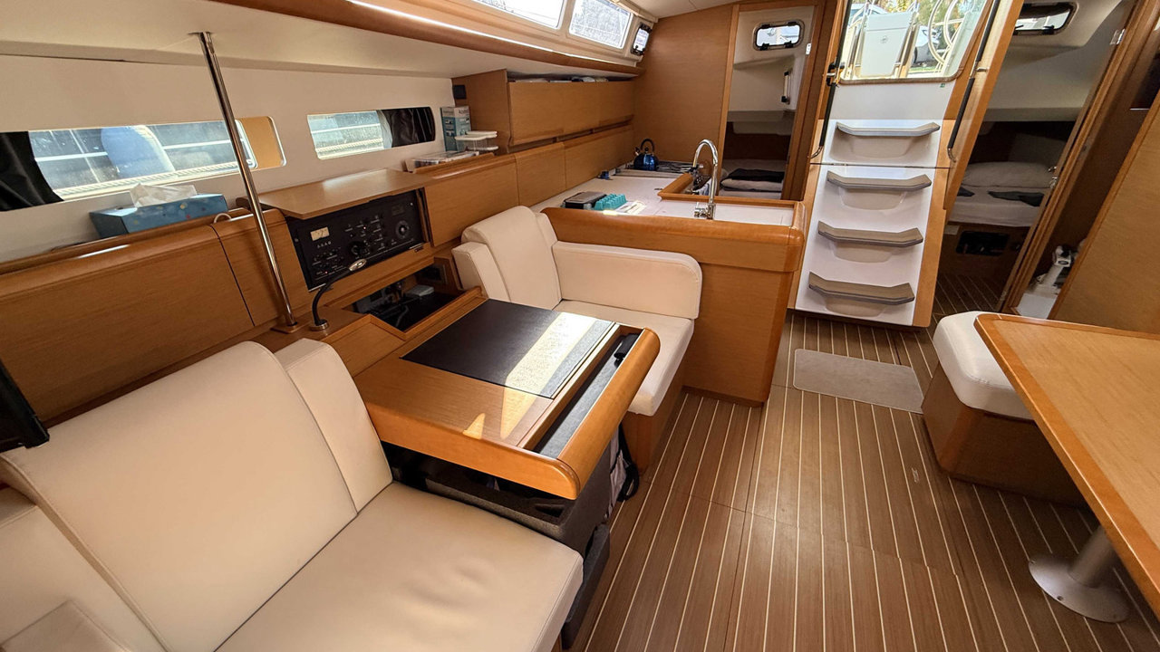 Jeanneau Sun Odyssey 479 – 2015 – 3 cabines – Yanmar 57 cv – 1 425 h Découvrez ce magnifique Jeanneau Sun Odyssey 479 millésime 2015, un voilier de croisière performant et élégant, idéal pour les amateurs de navigation hauturière. Conçu par Philippe Briand, ce modèle allie design moderne, confort à bord et excellentes qualités marines. Motorisé avec un Yanmar 4JH5-CE de 57 cv (1 425 heures), ce Sun Odyssey 479 offre puissance, fiabilité et faible consommation. Sa version 3 cabines / 2 salles d’eau permet d’accueillir confortablement famille ou équipage pour de longues navigations.Marque Jeanneau