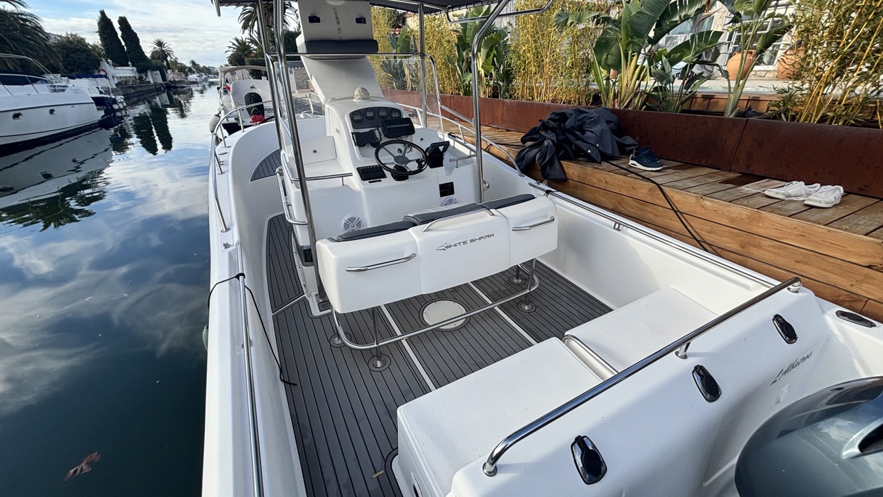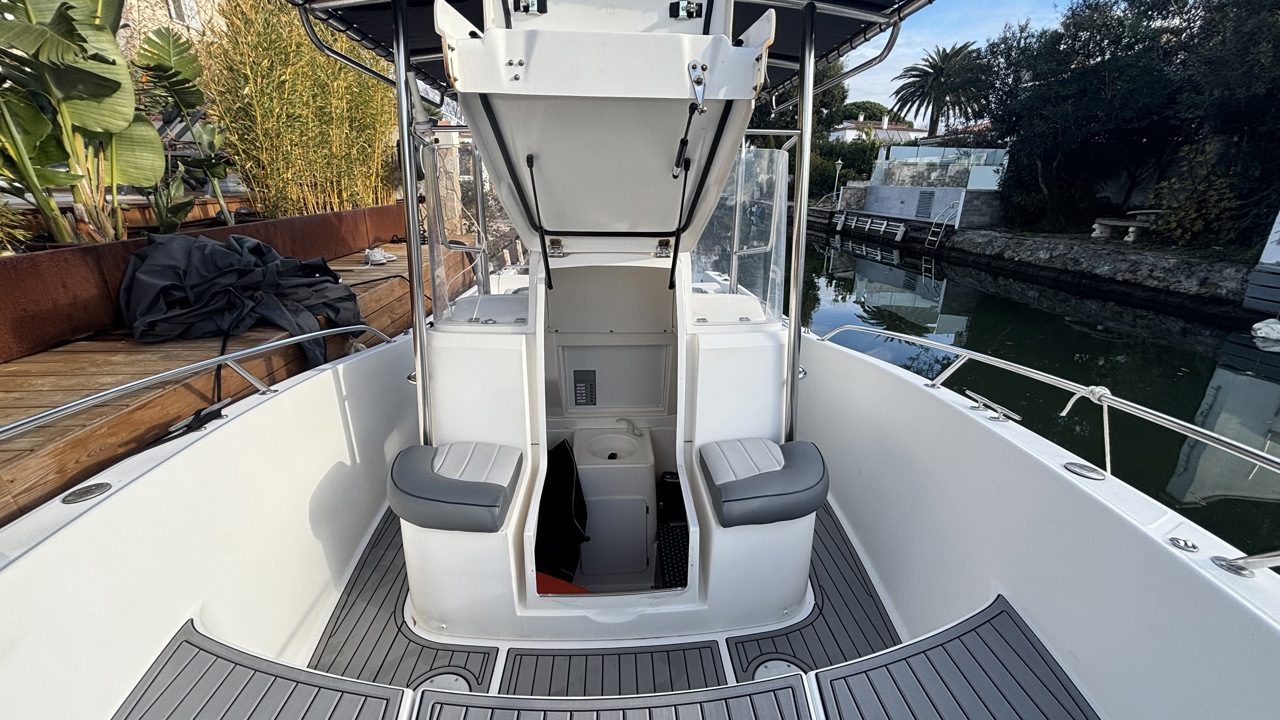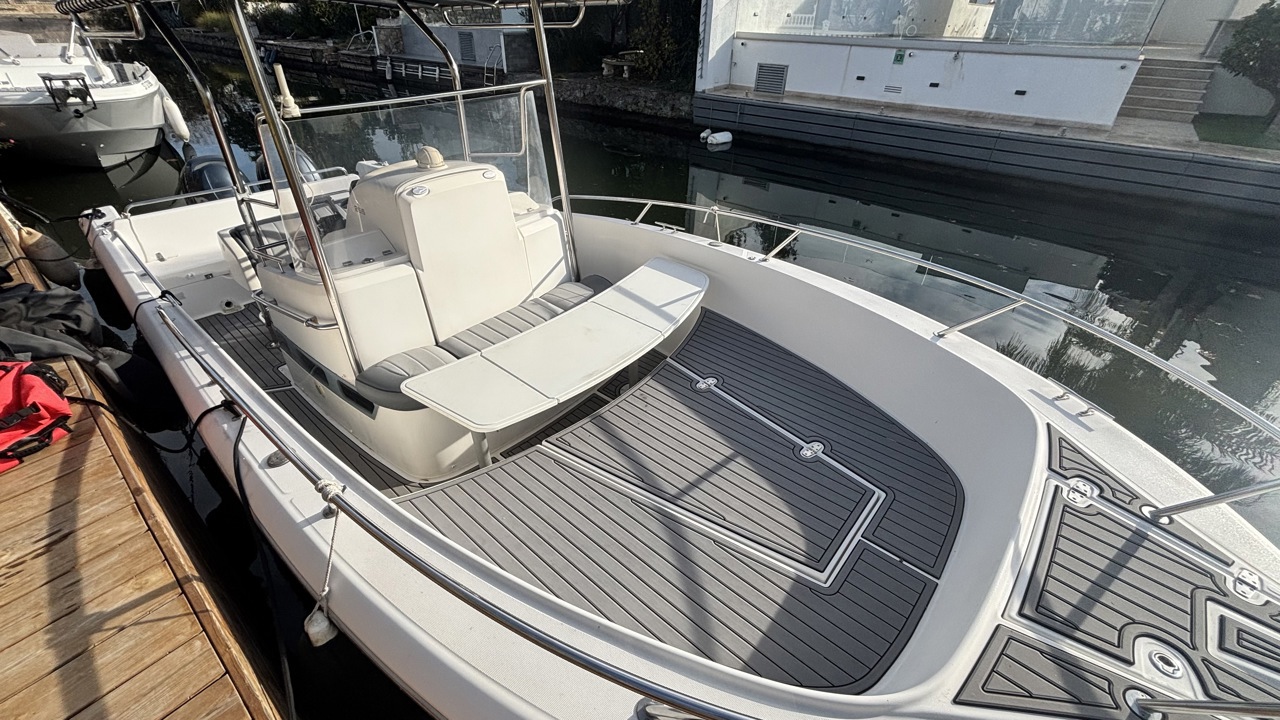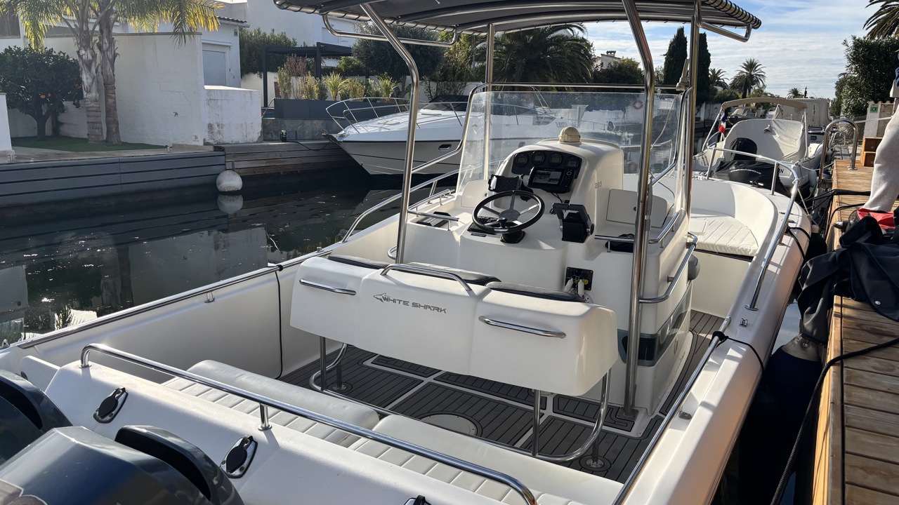 Kelt White Shark de 2004, day cruiser reconnu pour sa robustesse et son excellent comportement marin. Bateau polyvalent, idéal pour la navigation côtière, les sorties à la journée et la pêche. La coque est actuellement habillée d’un covering gris, apportant un style moderne tout en protégeant la coque d’origine. Équipé d’une cabine avec 2 couchages, cockpit avec table et coussins, carré transformable, WC chimique, bain de soleil avant, T-top, taud de soleil, guindeau électrique, échelle de bain, douchette de cockpit, radio Bluetooth, GPS, traceur, sondeur, loch-speedo et porte-cannes. Motorisation Yamaha F150 essence totalisant 365 heures, offrant une navigation saine, fiable et performante. Bateau bien entretenu, prêt à naviguer. Visible à Empuriabrava. Prix : 38 000 € TTC.Marque Kelt