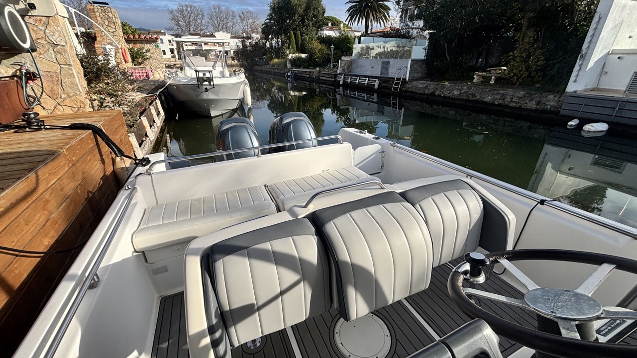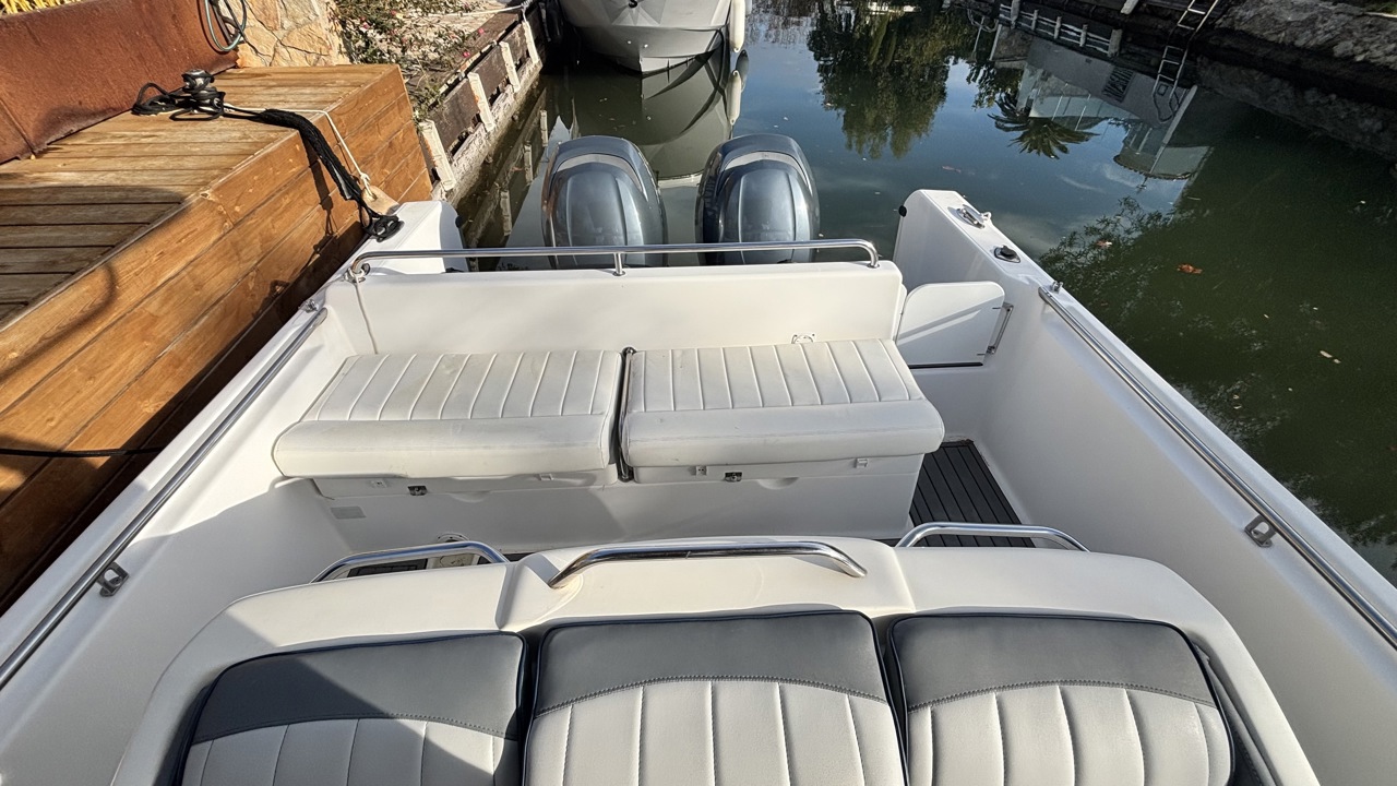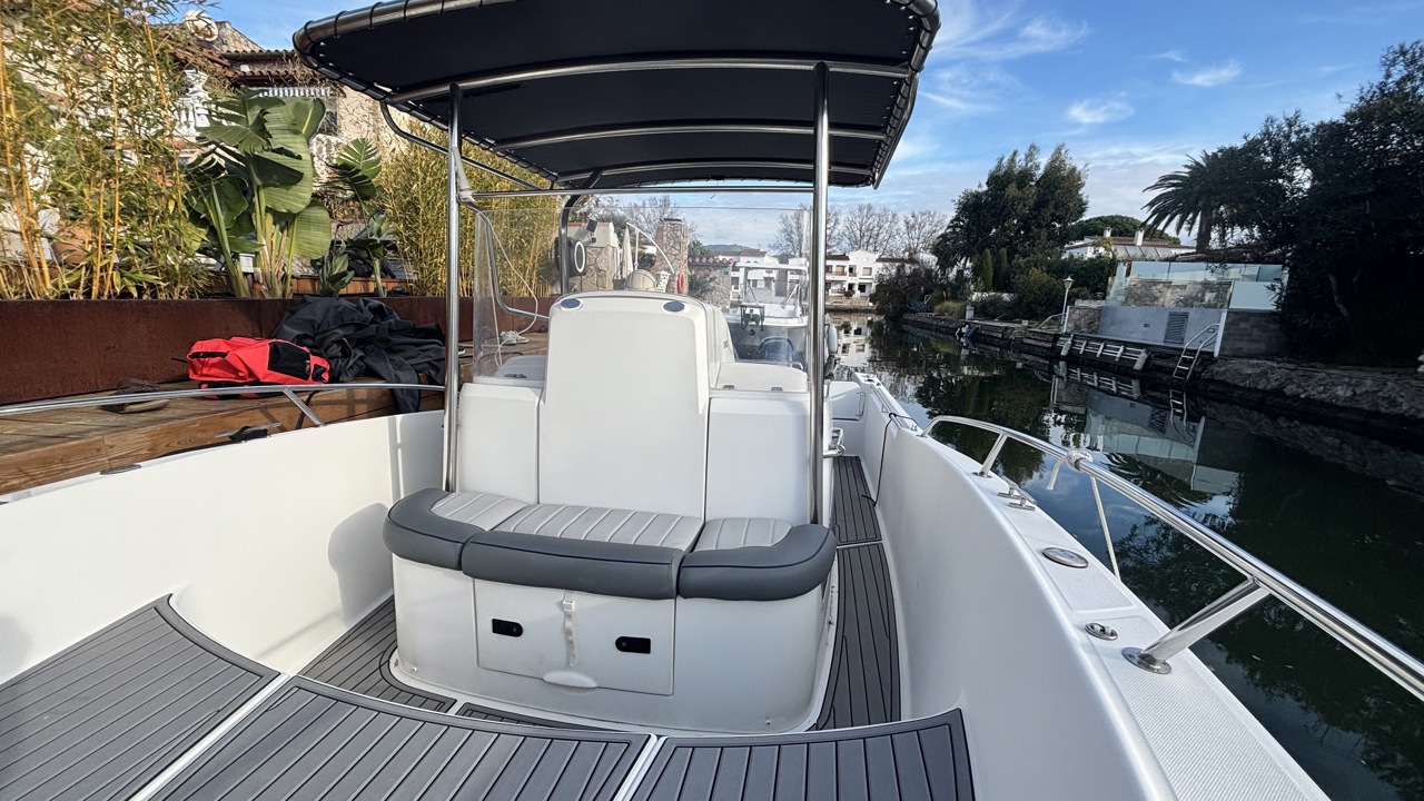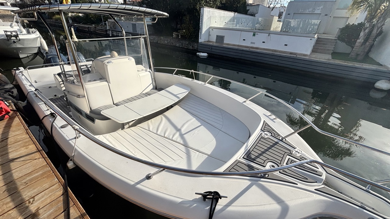 Kelt White Shark de 2004, day cruiser reconnu pour sa robustesse et son excellent comportement marin. Bateau polyvalent, idéal pour la navigation côtière, les sorties à la journée et la pêche. La coque est actuellement habillée d’un covering gris, apportant un style moderne tout en protégeant la coque d’origine. Équipé d’une cabine avec 2 couchages, cockpit avec table et coussins, carré transformable, WC chimique, bain de soleil avant, T-top, taud de soleil, guindeau électrique, échelle de bain, douchette de cockpit, radio Bluetooth, GPS, traceur, sondeur, loch-speedo et porte-cannes. Motorisation Yamaha F150 essence totalisant 365 heures, offrant une navigation saine, fiable et performante. Bateau bien entretenu, prêt à naviguer. Visible à Empuriabrava. Prix : 38 000 € TTC.Marque Kelt