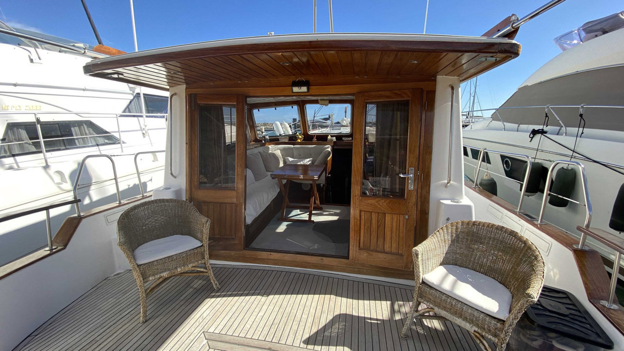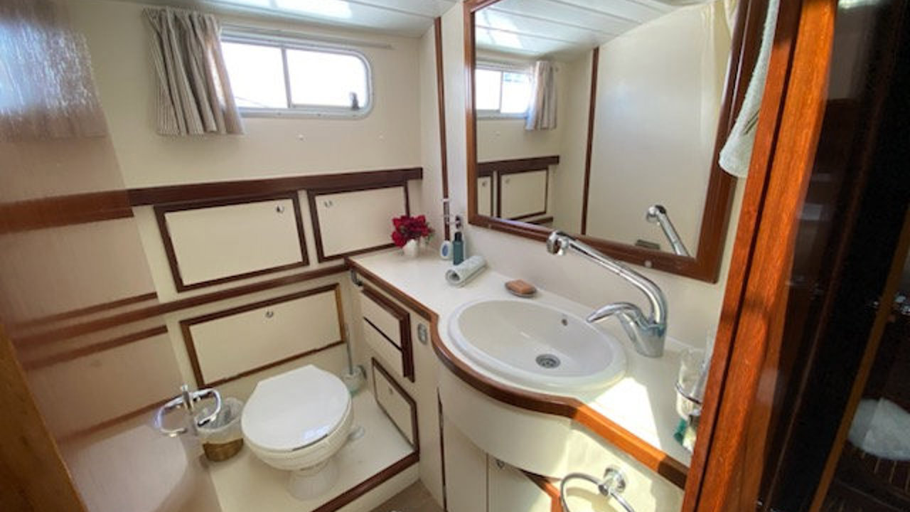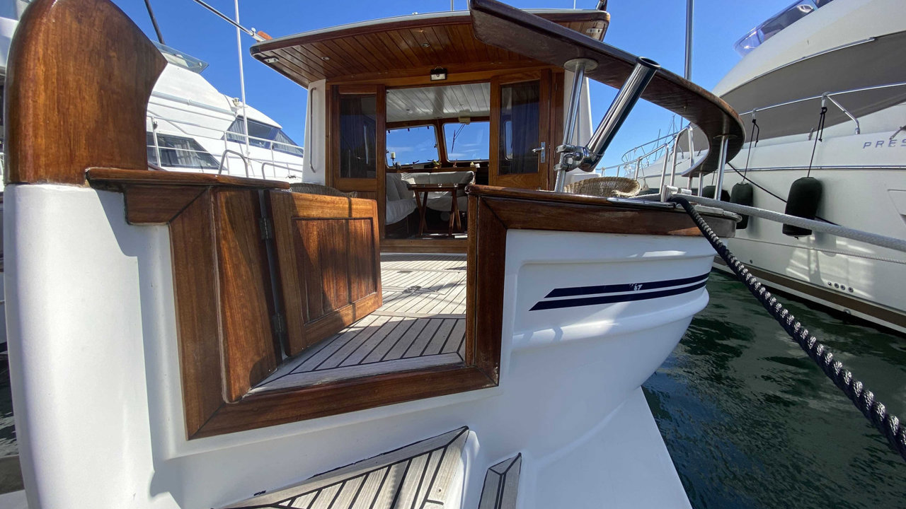 pont teckpasserelle hydrauliquepropulseur d'étraveplateforme de bainéchelle de baindouchette cockpitéclairage cockpitancreguindeau électriquesurviepompe de calecouleurmatérieau constructionantifoulingheures bateauréfrigérateurmicro ondesclimatisationchauffe-eautélévisionWC électriquepilote autoGPSsondeurradarchargeurgroupe électrogènebatteriesbatteries de servicecircuit 220Vcircuit 12Vprise de quai