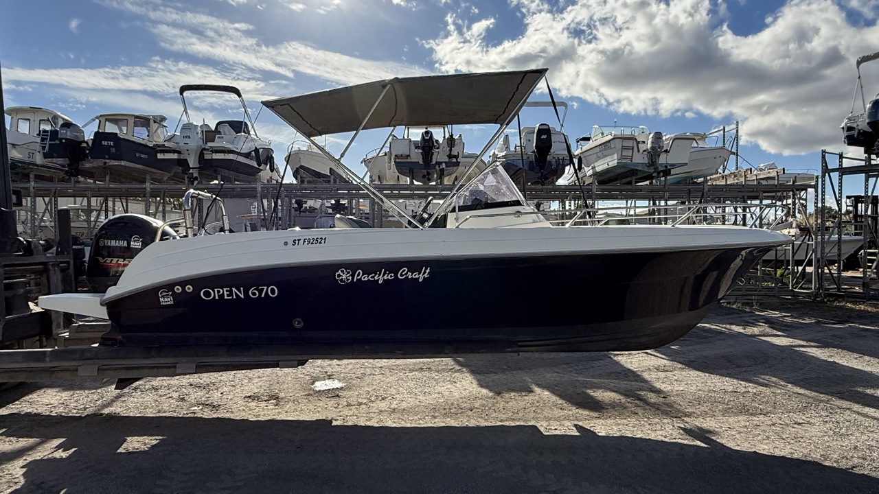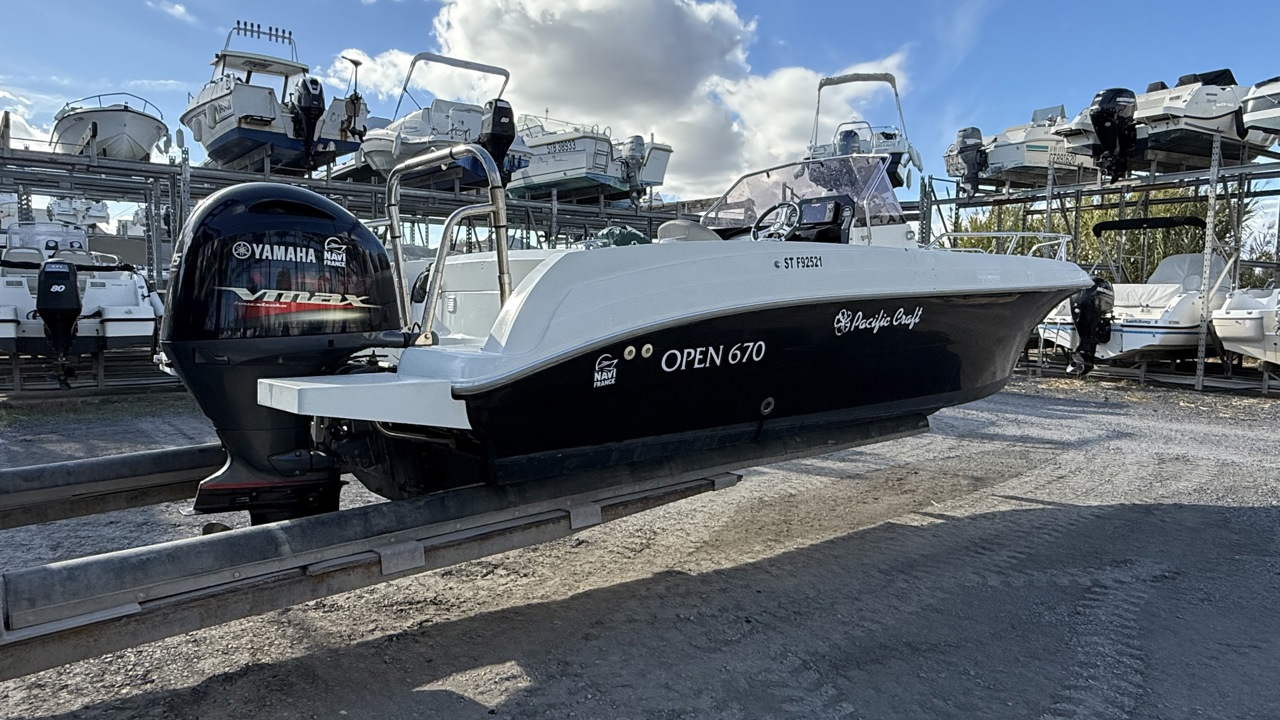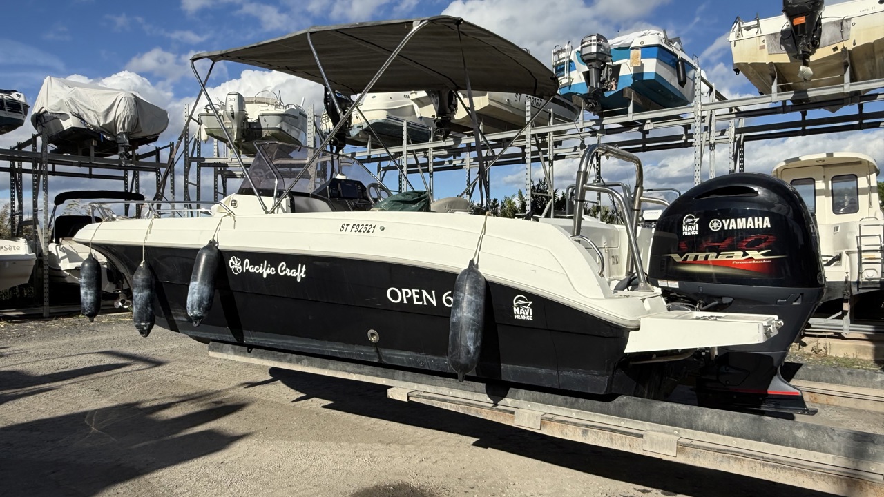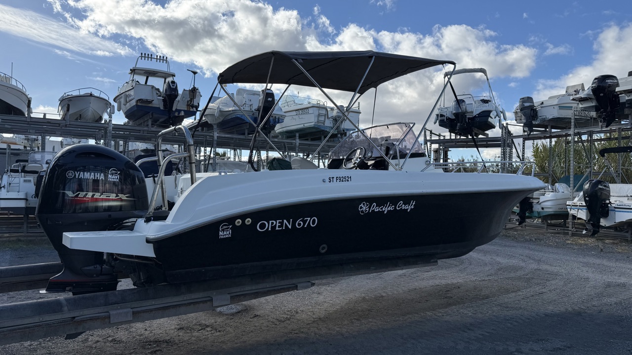 Pacific Craft 670 Open – bateau open spacieux, performant et parfaitement entretenu, idéal pour les sorties en mer, les balades côtières ou les sports nautiques. Ce modèle de 6,65 mètres de long et 2,51 mètres de large offre une excellente stabilité et une navigation confortable, même en mer formée. Homologué pour 10 personnes (catégorie CE C10), il est conçu pour accueillir famille et amis dans les meilleures conditions. Le bateau est propulsé par un moteur Yamaha 175 CV VF, reconnu pour sa fiabilité et ses performances. Il totalise 700 heures de navigation, toutes effectuées dans le respect des entretiens préconisés. Le moteur a toujours été suivi par le même mécanicien professionnel, garantissant une traçabilité complète et une mécanique irréprochable. Stocké hors d’eau toute l’année, le bateau a été préservé des agressions extérieures (UV, humidité, sel), ce qui se reflète dans l’état général de la coque, du pont et des équipements. Il est prêt à naviguer sans travaux à prévoir. À bord, vous trouverez un vaste bain de soleil avant transformable en coin repas avec table amovible, une console centrale avec pare-brise et main courante, une banquette arrière confortable, ainsi qu’une échelle de bain et une douchette de pont. Les nombreux coffres de rangement permettent d’embarquer tout le nécessaire pour une journée en mer. Le réservoir de carburant de 180 litres offre une belle autonomie. Le bateau est également équipé de feux de navigation, d’un sondeur/GPS , et de tout l’armement de sécurité requis pour la navigation côtière. Ce Pacific Craft 670 Open est une excellente opportunité pour qui cherche un bateau fiable, bien entretenu et prêt à l’emploi. Il combine confort, performance et sécurité, avec un entretien suivi et un historique limpide.Marque Pacific Craft