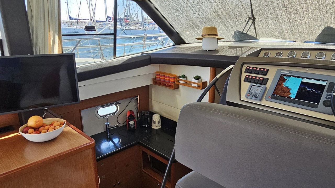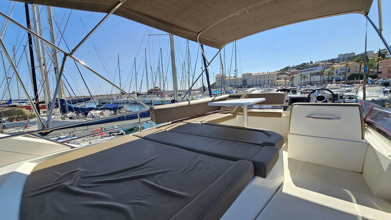 fly bridgepont teckpropulseur d'étravetaud campingtaud fermeture arrièretaud de soleiltaud de flyplateforme de bainéchelle de bainbain de soleil avantbain de soleil arrièrecockpit teckdouchette cockpittable cockpitcoussin cockpitéclairage cockpitguindeau électriqueportes cannessurviepompe de calecouleurmatérieau constructionantifoulingheures bateaucarré transformableréfrigérateurréchaudmicro ondesfourclimatisationchauffagehi-fitélévisionWC marinspilote autocompasloch speedoVHFGPSsondeursondeur pêcherépetiteurchargeuralternateurbatteriesbatteries de serviceconvertisseurcircuit 220Vcircuit 12Vprise de quai