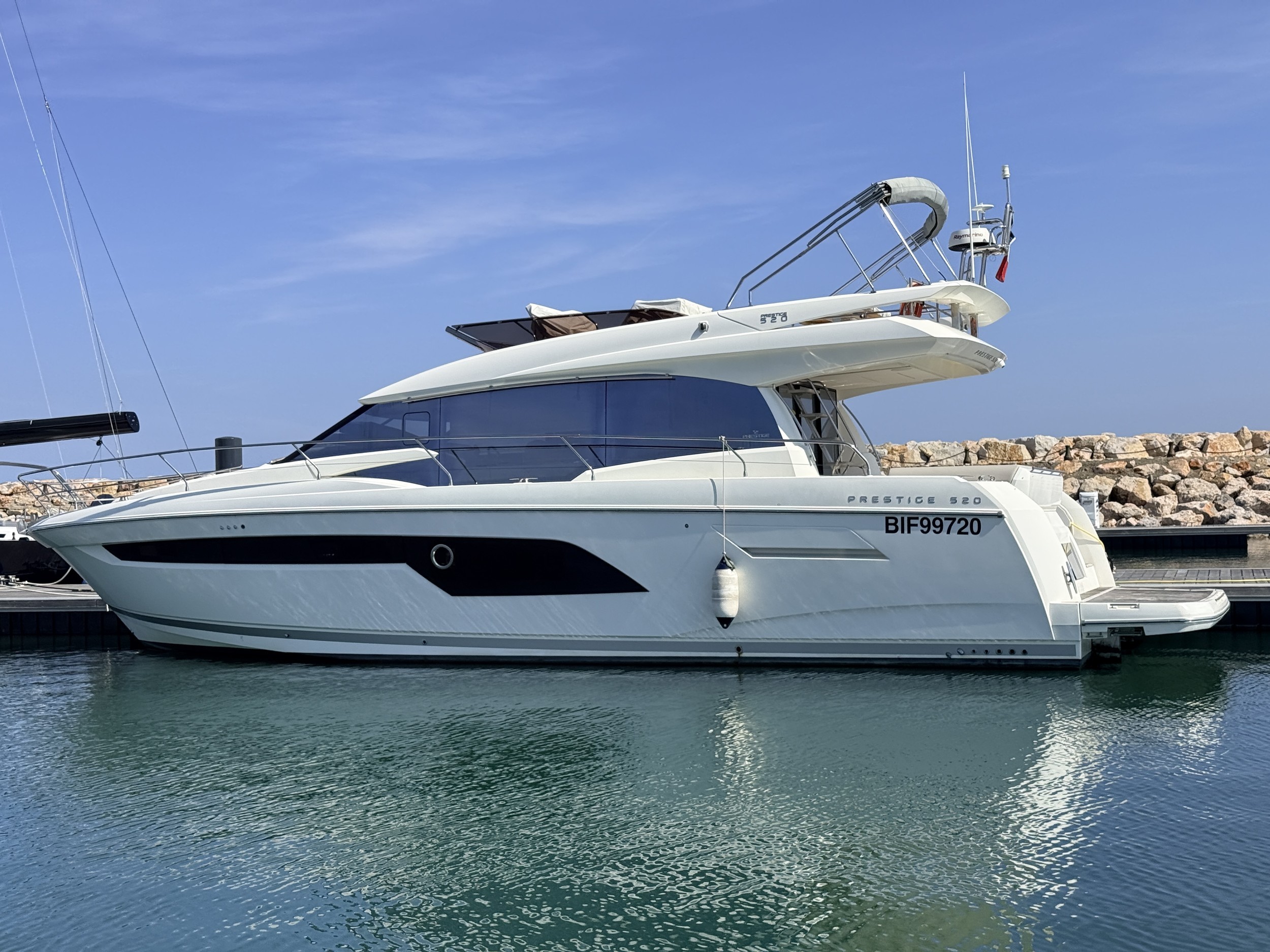 ESPRIT BATEAU vous propose ce magnifique Prestige 520 Fly de 2020, un yacht à moteur reconnu pour son design moderne, ses volumes exceptionnels et son confort de navigation. Motorisé par 2 Volvo Penta D6 IPS 650 affichant 925 heures, ce modèle offre une conduite souple, une excellente efficacité énergétique et une grande facilité de manœuvre grâce au joystick IPS, idéal en port comme en navigation. Pensé pour la croisière en famille ou entre amis, le Prestige 520 Fly séduit immédiatement par sa luminosité intérieure, son carré spacieux, sa cuisine entièrement équipée et son agencement optimisé comprenant 3 cabines confortables et 2 salles d’eau. À l’extérieur, le flybridge aménagé constitue un véritable espace de vie avec poste de pilotage, bains de soleil et coin repas, parfait pour profiter pleinement des mouillages et des navigations estivales. Ce yacht Prestige d’occasion récent bénéficie d’un niveau d’équipement complet, d’un entretien suivi et d’un très bel état général, en faisant une opportunité rare sur le marché des bateaux de plus de 50 pieds. Il conviendra parfaitement à un programme de croisière côtière ou hauturière avec un confort digne d’un bateau neuf. ???? Visible sur rendez-vous chez ESPRIT BATEAU ???? Contactez-nous pour recevoir le dossier complet ou organiser une visite. Place de port possible / financement possibleMarque Prestige