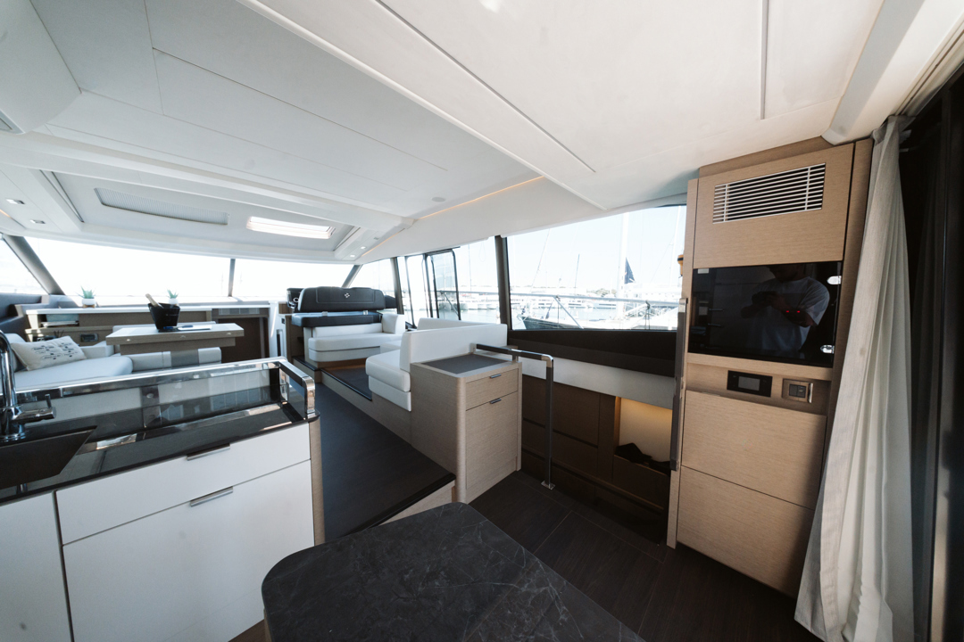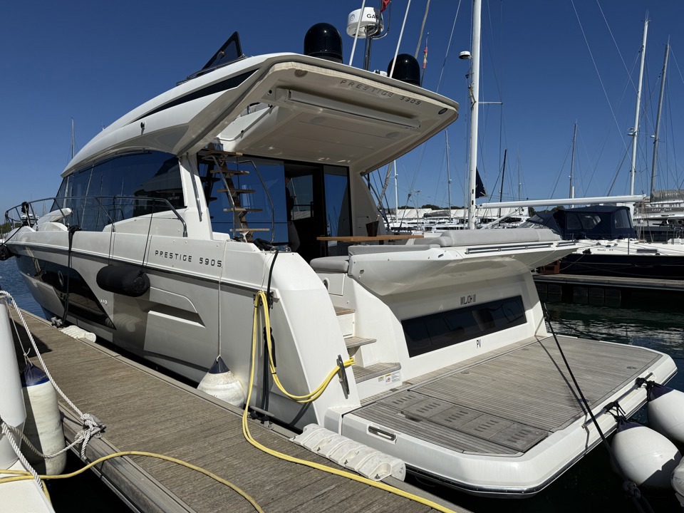 L’art de naviguer, réinventé Certaines unités ne se décrivent pas, elles se ressentent. Le Prestige 590 S appartient à cette catégorie rare de yachts où chaque ligne, chaque matériau, chaque détail est pensé pour sublimer l’expérience en mer. Dès le premier regard, son design affirmé impose une signature élégante et contemporaine. À bord, les espaces s’ouvrent avec fluidité, invitant à une circulation naturelle entre intérieur et extérieur, dans une harmonie parfaite entre lumière, volumes et perspective. Une expérience à bord hors du commun Le cockpit devient un véritable lieu de vie, prolongement naturel de la mer, où se mêlent convivialité et sophistication. Les bains de soleil, généreusement dimensionnés, offrent des instants suspendus face à l’horizon, tandis que la plateforme hydraulique transforme chaque escale en moment privilégié. À l’intérieur, l’atmosphère est résolument haut de gamme. Les finitions, les textures et les jeux de lumière créent une ambiance chaleureuse et raffinée, digne des plus belles résidences contemporaines. La configuration en 3 cabines / 3 salles d’eau offre un confort absolu, avec une cabine propriétaire pensée comme une véritable suite, où espace, intimité et élégance se conjuguent parfaitement. Technologie invisible, maîtrise totale Sous cette élégance se cache une maîtrise technologique avancée, conçue pour offrir une navigation fluide, intuitive et silencieuse. Propulsé par deux moteurs Cummins de 600 CV, le Prestige 590 S délivre des performances parfaitement équilibrées, alliant puissance et sérénité. À bord, chaque manœuvre devient un geste naturel : le joystick, le Yacht Controller, et le stabilisateur Seakeeper effacent les contraintes pour ne laisser place qu’au plaisir de naviguer. Le luxe dans chaque détail Ce yacht bénéficie d’un niveau d’équipement exceptionnel, où rien n’a été laissé au hasard : — Climatisation tropicale — Dessalinisateur — Électroménager complet — Selleries et finitions premium — Électronique dernière génération — Espaces extérieurs entièrement optimisés Chaque élément participe à créer un environnement où confort, autonomie et élégance se rencontrent. Une opportunité rare Avec seulement 20 heures moteurs, cette unité de 2023 se présente dans un état proche du neuf. Elle incarne une opportunité unique d’accéder à un yacht d’exception, prêt à naviguer immédiatement, sans compromis.Marque Prestige