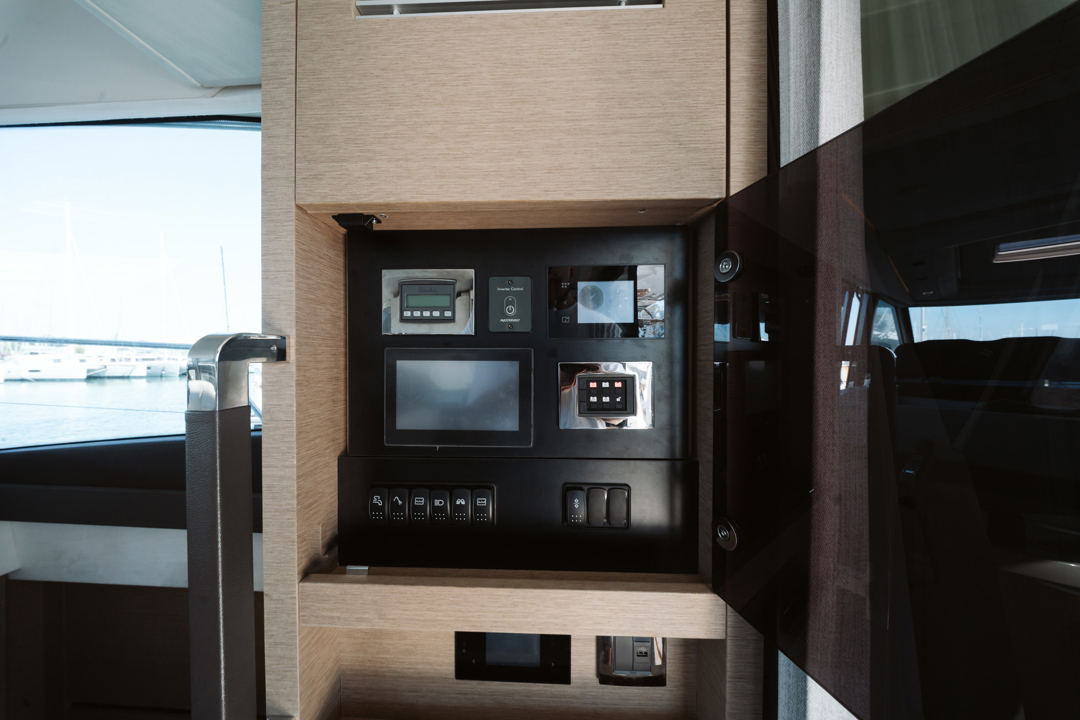 Réservoir eaux noires x2 (170L + 50L)climatisation Tropicale 87 000 BTUwc électrique (eau douce) x2climatisation cabine marinlave-lingedessalinisateur 100L / Hcongélateur double tension (42L)3 plaques de cuisson à inductioncombiné micro-ondes / grilllave-vaisselleréfrigerateur double tension (178L)machine à glaçonshi-fitélévision