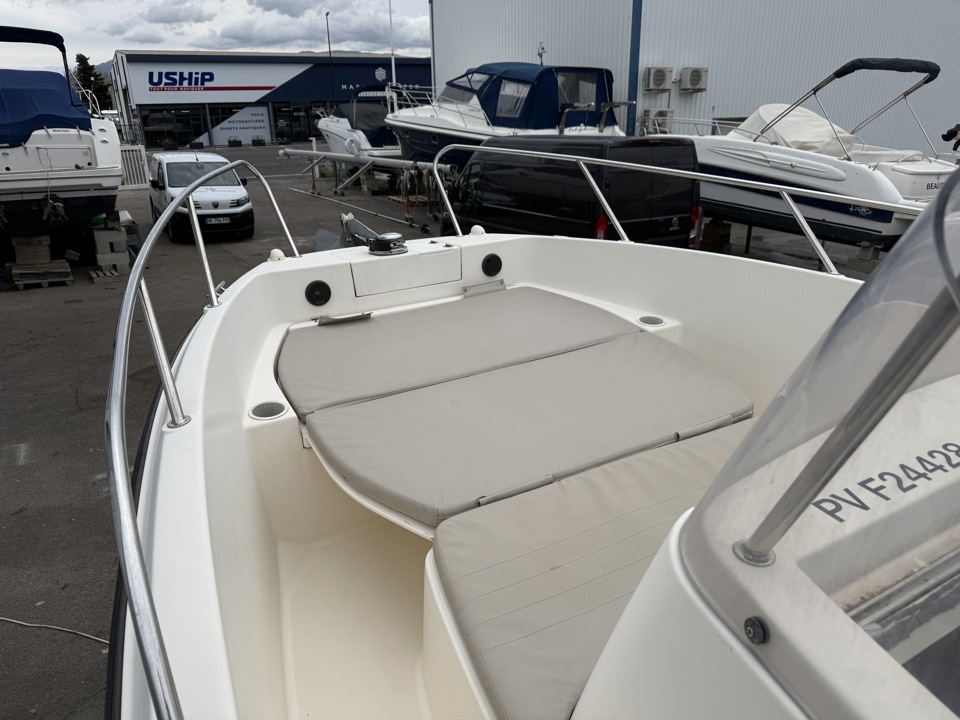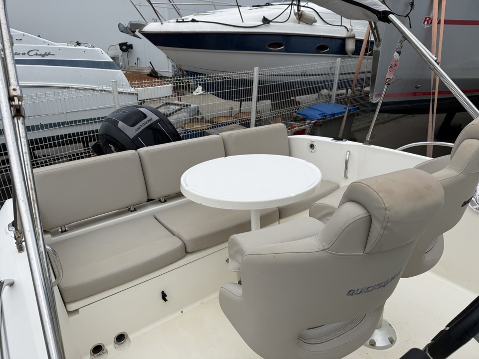 ⚓ Quicksilver 675 Open (2015) – 150cv Mercury – 390h Esprit Bateau a le plaisir de vous présenter ce Quicksilver 675 Open de 2015, une unité polyvalente et très recherchée sur le marché de l’occasion, idéale pour profiter pleinement de vos sorties en mer. Ce modèle est équipé d’un moteur Mercury 150cv de 2015 affichant 390 heures, reconnu pour sa fiabilité, sa souplesse et son excellent compromis entre performance et consommation. Une motorisation parfaitement adaptée à ce bateau, offrant des navigations dynamiques tout en restant économique. Avec ses 6,75 mètres de longueur et sa largeur de 2,55 mètres, le Quicksilver 675 Open bénéficie d’une carène stable et sécurisante, permettant une prise en main rapide et une navigation confortable, même pour un premier bateau. L’agencement du pont a été pensé pour maximiser l’espace et le confort à bord : un cockpit spacieux, une circulation fluide, ainsi qu’un grand bain de soleil avant transformable pour profiter pleinement des journées en mer. La cabine sous console offre un espace de rangement pratique ainsi qu’un couchage d’appoint, idéal pour les sorties prolongées. Polyvalent par excellence, ce modèle conviendra aussi bien pour la balade, les sports nautiques que la pêche. Très prisé sur le marché, le Quicksilver 675 Open est une valeur sûre, combinant simplicité d’utilisation, habitabilité et budget maîtrisé. ???? Bateau prêt à naviguer (révision moteur et antifooling fait pour la vente) ???? Idéal premier achat ou évolution de gamme ???? Dossier complet sur demande ???? Accompagnement personnalisé Esprit BateauMarque Quicksilver