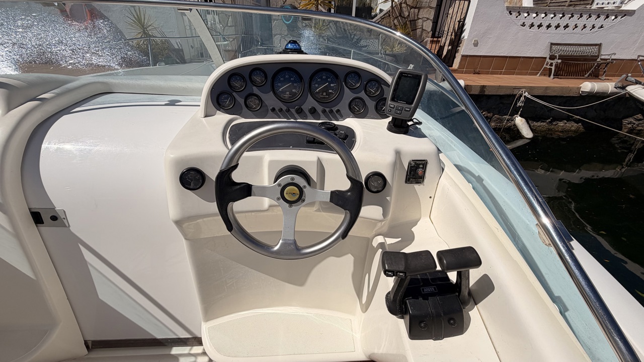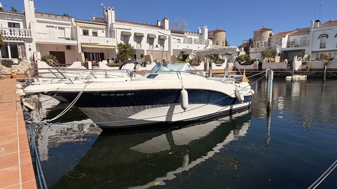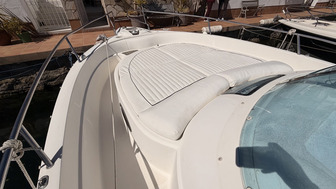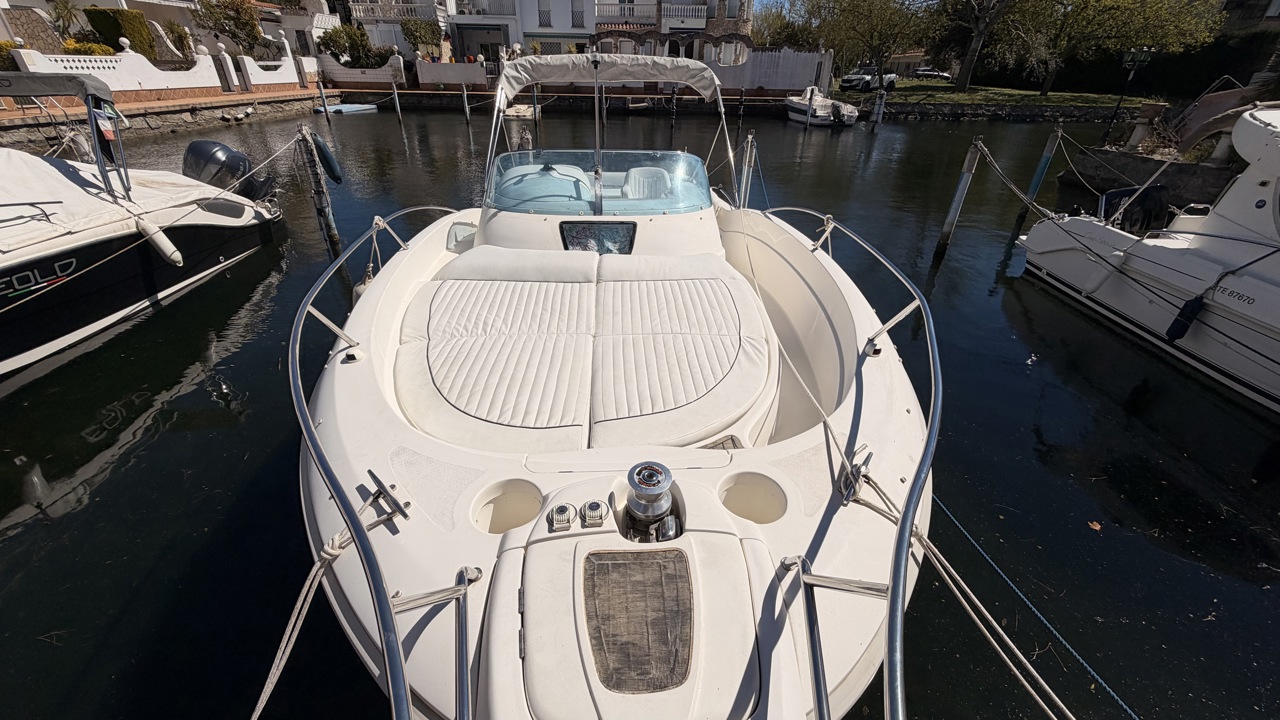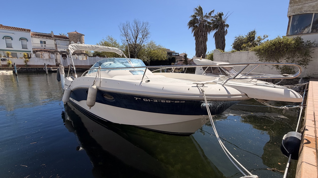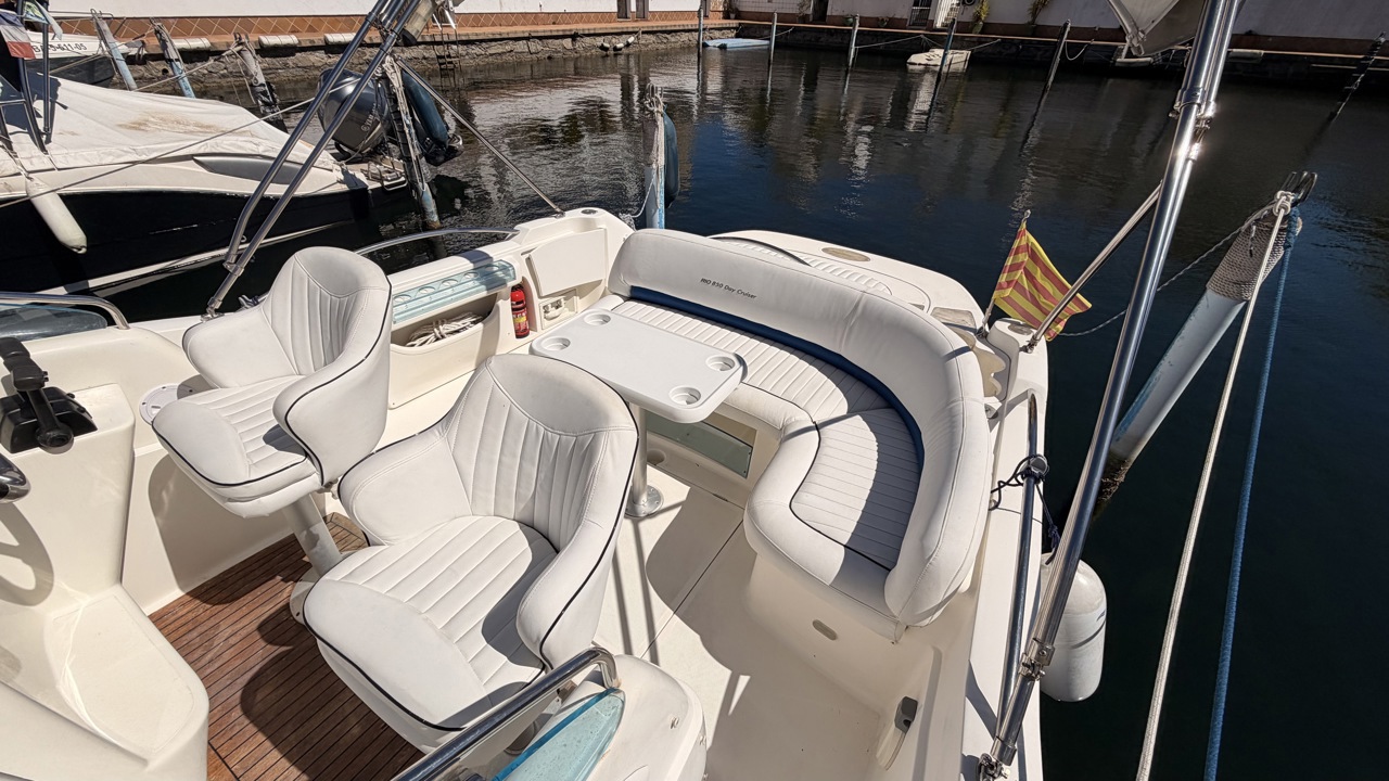 Rio 850 Day Cruiser de 2004 équipé de deux moteurs Volvo Penta 3.0 GL pour un total de 272 CV, offrant confort, fiabilité et navigation agréable. Ce day cruiser de 7,49 m dispose d’une cabine avec 4 couchages, d’un cockpit spacieux et convivial, d’une cuisine équipée ainsi que d’une salle d’eau avec WC et douche. Bateau bien entretenu avec sellerie refaite, bimini de protection solaire, batteries récentes (2025), ainsi que plusieurs éléments mécaniques remplacés (pompes, démarreurs). Factures disponibles. Équipements : bain de soleil avant et arrière, plateforme de bain, guindeau électrique, table cockpit, douchette cockpit, éclairage cockpit, taud d’hivernage, réfrigérateur, réchaud gaz, électronique de navigation (sondeur, loch, compas). Idéal pour les sorties à la journée comme pour les petites croisières en Méditerranée. Bateau prêt à naviguer. Visible à Empuriabrava (Costa Brava). Prix : 29 900 €Marque Rio