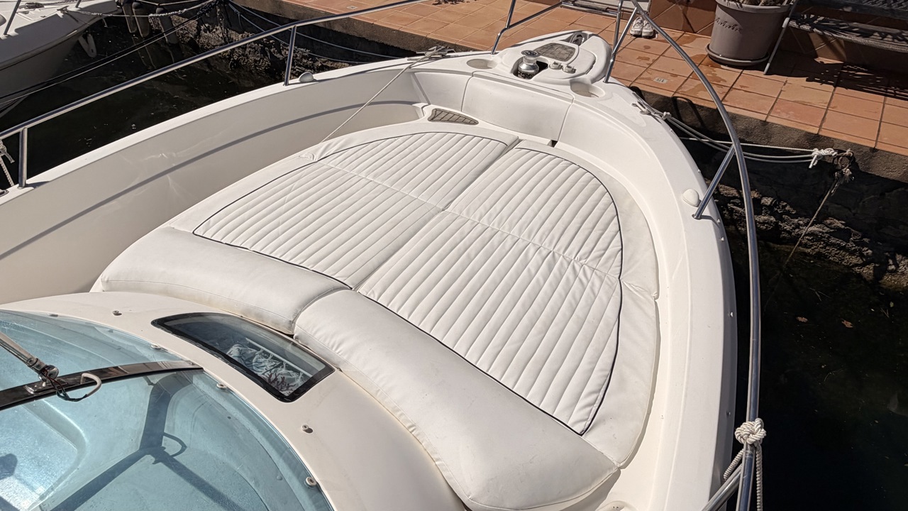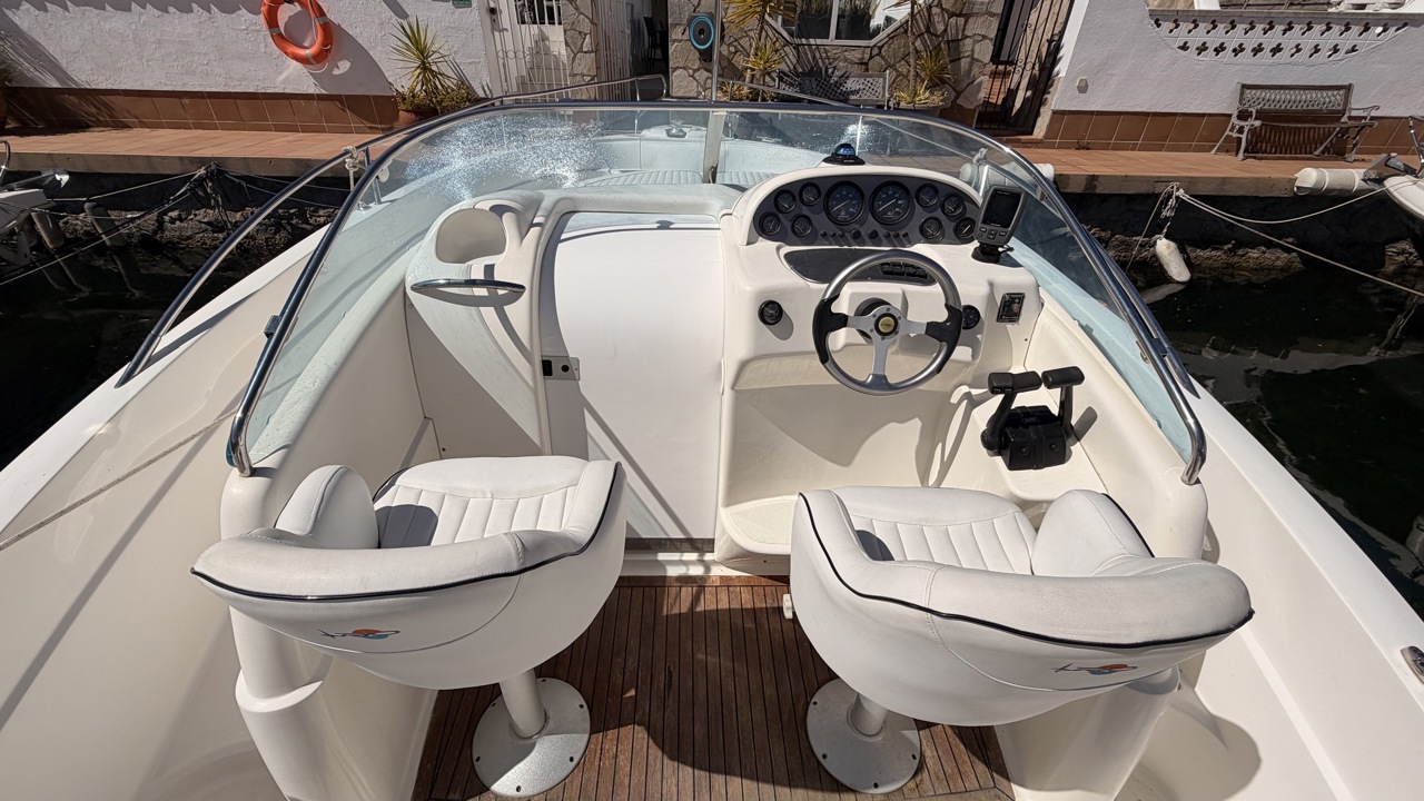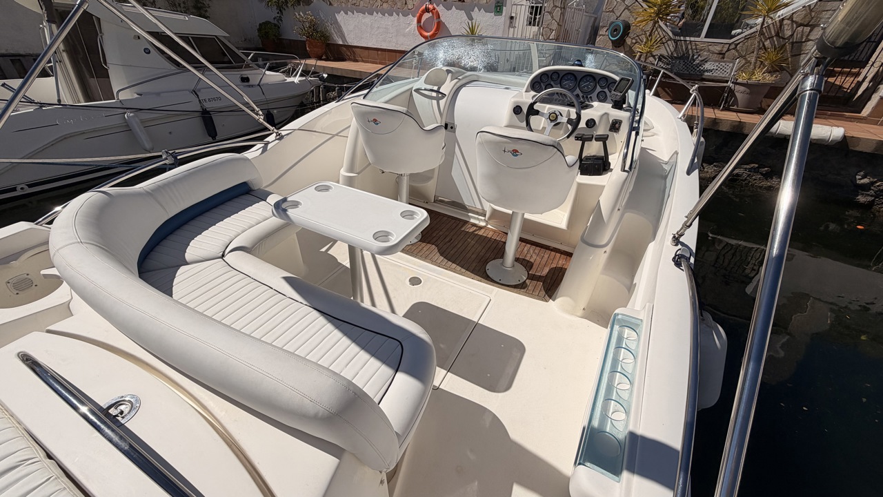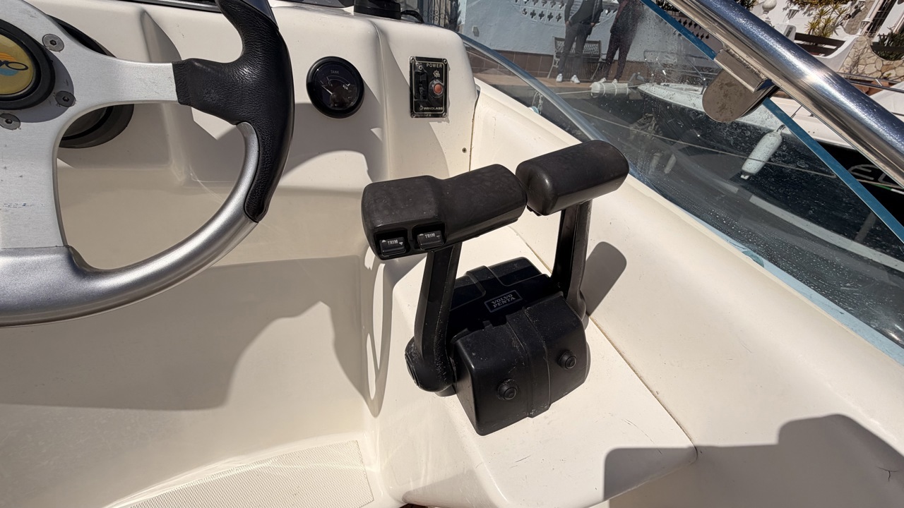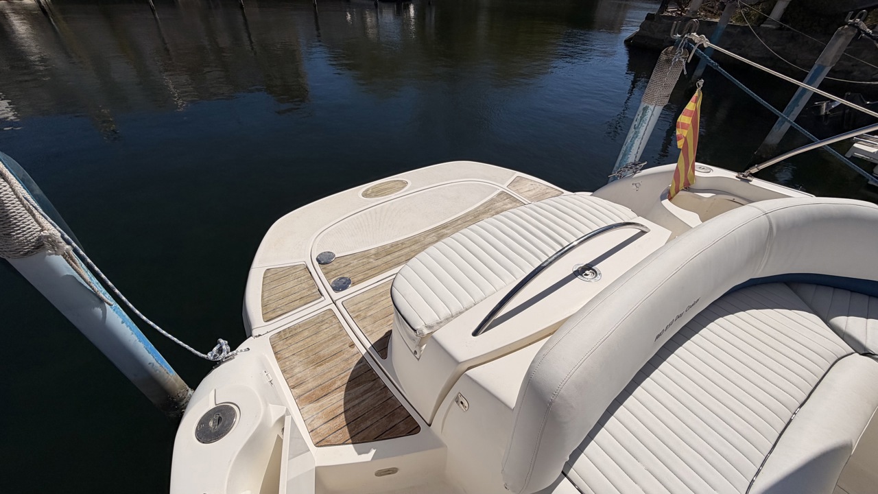 Rio 850 Day Cruiser de 2004 équipé de deux moteurs Volvo Penta 3.0 GL pour un total de 272 CV, offrant confort, fiabilité et navigation agréable. Ce day cruiser de 7,49 m dispose d’une cabine avec 4 couchages, d’un cockpit spacieux et convivial, d’une cuisine équipée ainsi que d’une salle d’eau avec WC et douche. Bateau bien entretenu avec sellerie refaite, bimini de protection solaire, batteries récentes (2025), ainsi que plusieurs éléments mécaniques remplacés (pompes, démarreurs). Factures disponibles. Équipements : bain de soleil avant et arrière, plateforme de bain, guindeau électrique, table cockpit, douchette cockpit, éclairage cockpit, taud d’hivernage, réfrigérateur, réchaud gaz, électronique de navigation (sondeur, loch, compas). Idéal pour les sorties à la journée comme pour les petites croisières en Méditerranée. Bateau prêt à naviguer. Visible à Empuriabrava (Costa Brava). Prix : 29 900 €Marque Rio