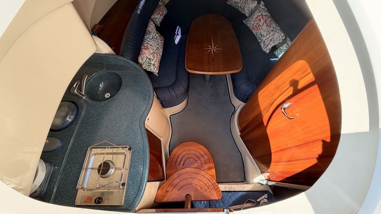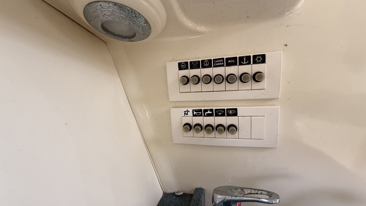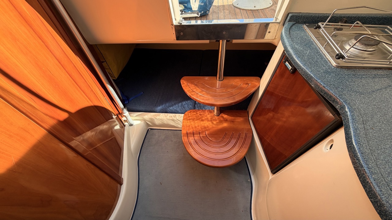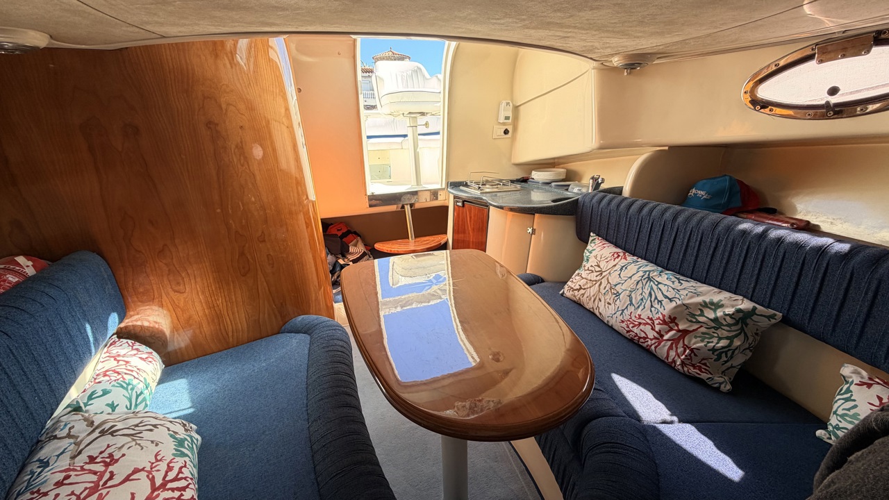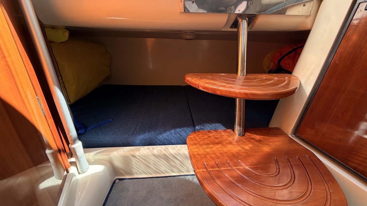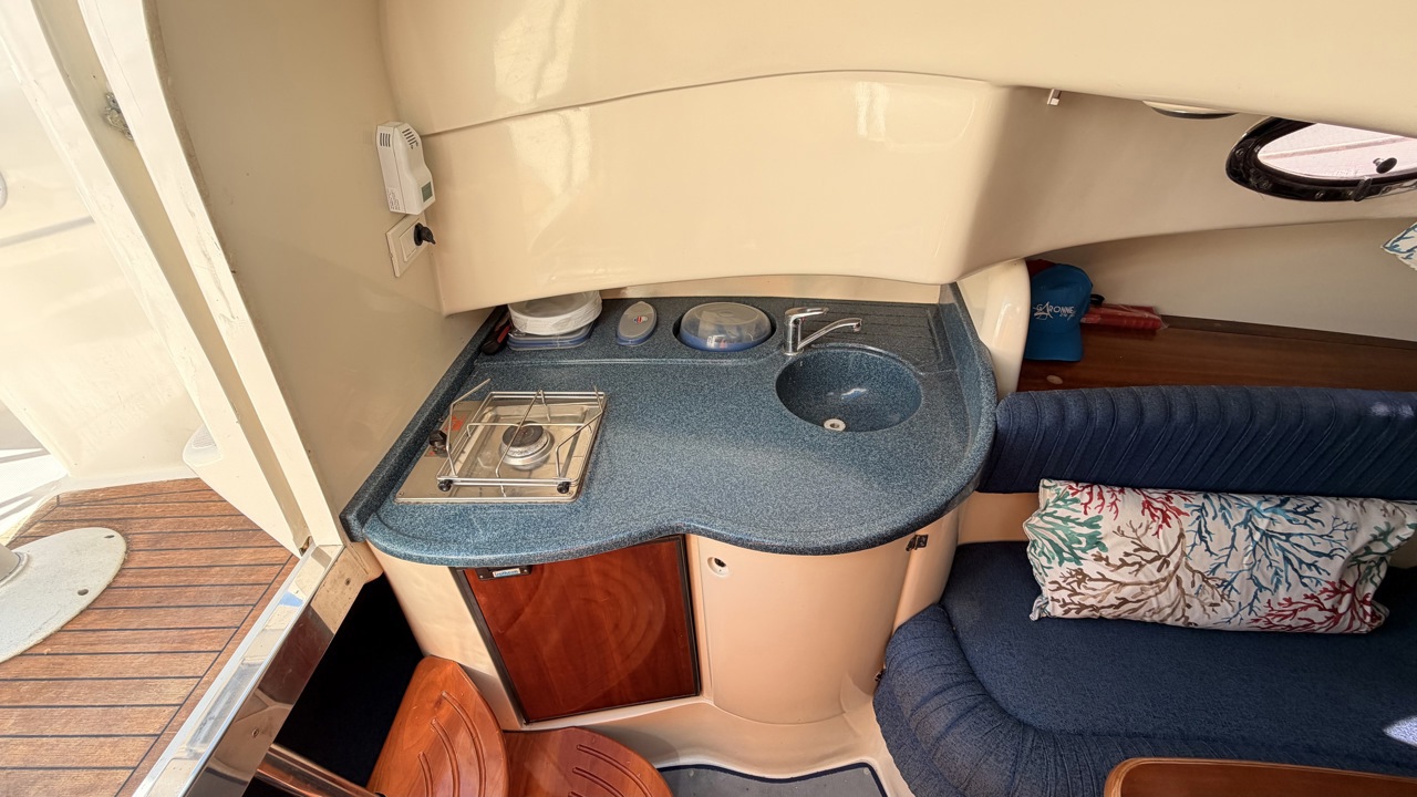 Rio 850 Day Cruiser de 2004 équipé de deux moteurs Volvo Penta 3.0 GL pour un total de 272 CV, offrant confort, fiabilité et navigation agréable. Ce day cruiser de 7,49 m dispose d’une cabine avec 4 couchages, d’un cockpit spacieux et convivial, d’une cuisine équipée ainsi que d’une salle d’eau avec WC et douche. Bateau bien entretenu avec sellerie refaite, bimini de protection solaire, batteries récentes (2025), ainsi que plusieurs éléments mécaniques remplacés (pompes, démarreurs). Factures disponibles. Équipements : bain de soleil avant et arrière, plateforme de bain, guindeau électrique, table cockpit, douchette cockpit, éclairage cockpit, taud d’hivernage, réfrigérateur, réchaud gaz, électronique de navigation (sondeur, loch, compas). Idéal pour les sorties à la journée comme pour les petites croisières en Méditerranée. Bateau prêt à naviguer. Visible à Empuriabrava (Costa Brava). Prix : 29 900 €Marque Rio
