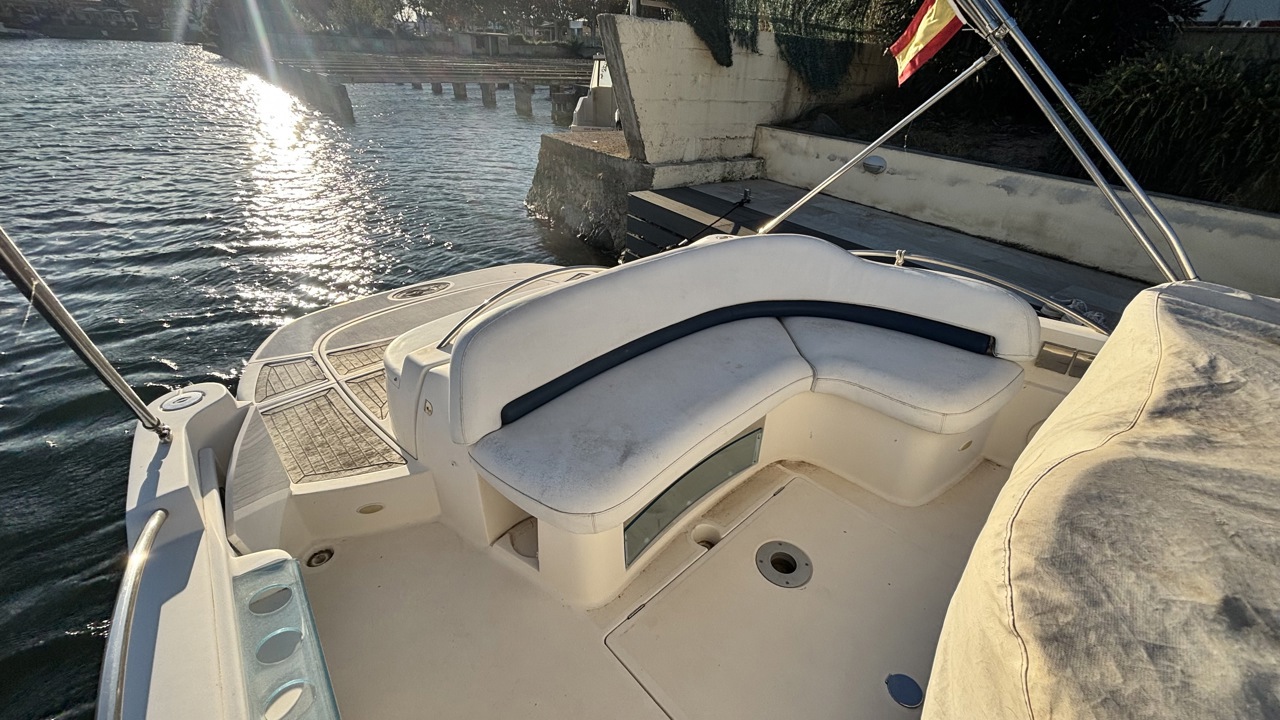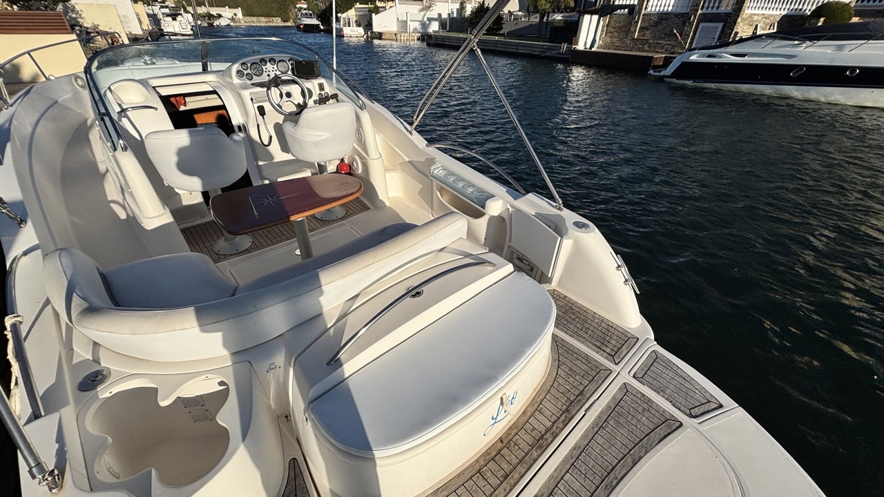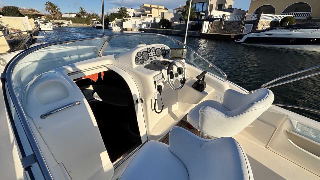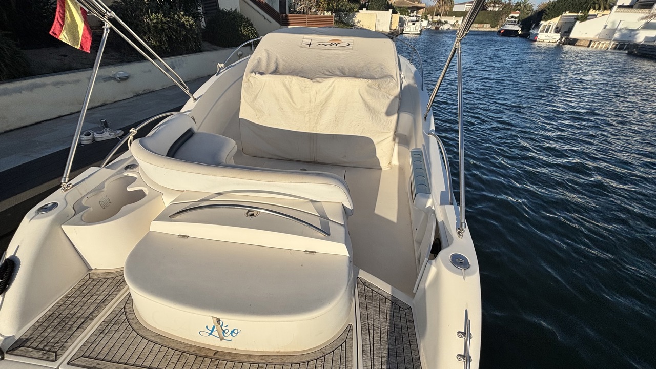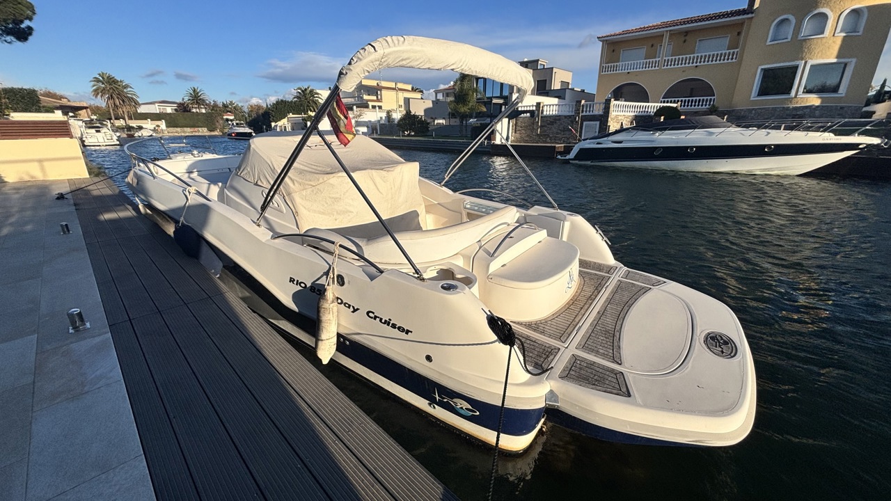 Rio 850 Day Cruiser – 2005 – Volvo Penta 4.3 GXI – Occasion – Bateau prêt à naviguer Découvrez ce Rio 850 Day Cruiser de 2005, un bateau de 8,50 mètres très recherché pour son confort, sa fiabilité et sa polyvalence. Parfait pour la Méditerranée, il conviendra aussi bien aux sorties à la journée qu’aux week-ends en famille grâce à son grand cockpit et sa cabine offrant jusqu’à 4 couchages. Motorisé en bi-moteurs Volvo Penta 4.3 GXI (2 × 230 cv), ce modèle allie performance, sécurité et facilité d’entretien. Il bénéficie d’un entretien complet réalisé en 2025, d’un antifouling récent, d’un taud neuf et de factures disponibles. Idéalement situé à Empuriabrava (Costa Brava), à deux pas de la frontière française. Caractéristiques principales : * Longueur hors tout : 8,50 m * Longueur de coque : 7,49 m * Largeur : 3,00 m * Tirant d’eau : 0,60 m * Poids : 3 000 kg * Cabines : 1 * Couchages : 4 * Capacité : 8 personnes * Réservoir carburant : 330 L * Réservoir eau douce : ≈ 120 L Motorisation & Performances * 2 × Volvo Penta 4.3 GXI – Essence * Puissance totale : 460 CV * Heures moteur : 895 h * Transmission : In-board Entretien réalisé en 2025 * Révision moteurs (huiles, filtres, courroies, anodes, crépines) * Entretien complet des embases Volvo Penta * Nettoyage carène + antifouling 2025 * Factures disponibles (garage nautique professionnel) * Une motorisation souple et réactive, idéale pour un day cruiser 8 m. Aménagement & Confort * Cabine double + carré transformable (4 couchages) * Cuisine équipée : évier, réchaud gaz, réfrigérateur * Salle d’eau : WC marin, douche, lavabo * Carré intérieur lumineux et bien agencé * Réserve eau douce : ≈ 120 L Équipements extérieurs * Bain de soleil avant * Plateforme de bain en semi-teck + échelle * Douchette cockpit * Table de cockpit * Bimini noir neuf * Taud d’hivernage * Coussins complets * Cockpit spacieux, confortable et modulable Électricité & Électronique * GPS Garmin * Traceur * Loch / speedo * VHF Garmin * Circuit 12 V / 220 V * Chargeur de batteries * Batteries moteur + service * Pompe de cale électrique * Éclairage intérieur Accastillage * Guindeau électrique * Ancre + mouillage complet Prix de vente : 33 000 € Ce Rio 850 Day Cruiser est une opportunité idéale pour un plaisancier cherchant un bateau bien entretenu, fiable et prêt à naviguer immédiatement en Méditerranée. Bateau visible à Empuriabrava (Espagne) — accès rapide depuis Perpignan, Argelès, Collioure, Le Boulou et tout le sud de la France. Contactez Esprit Bateau pour plus d’informations, recevoir le dossier photo complet ou organiser une visite.Marque Rio