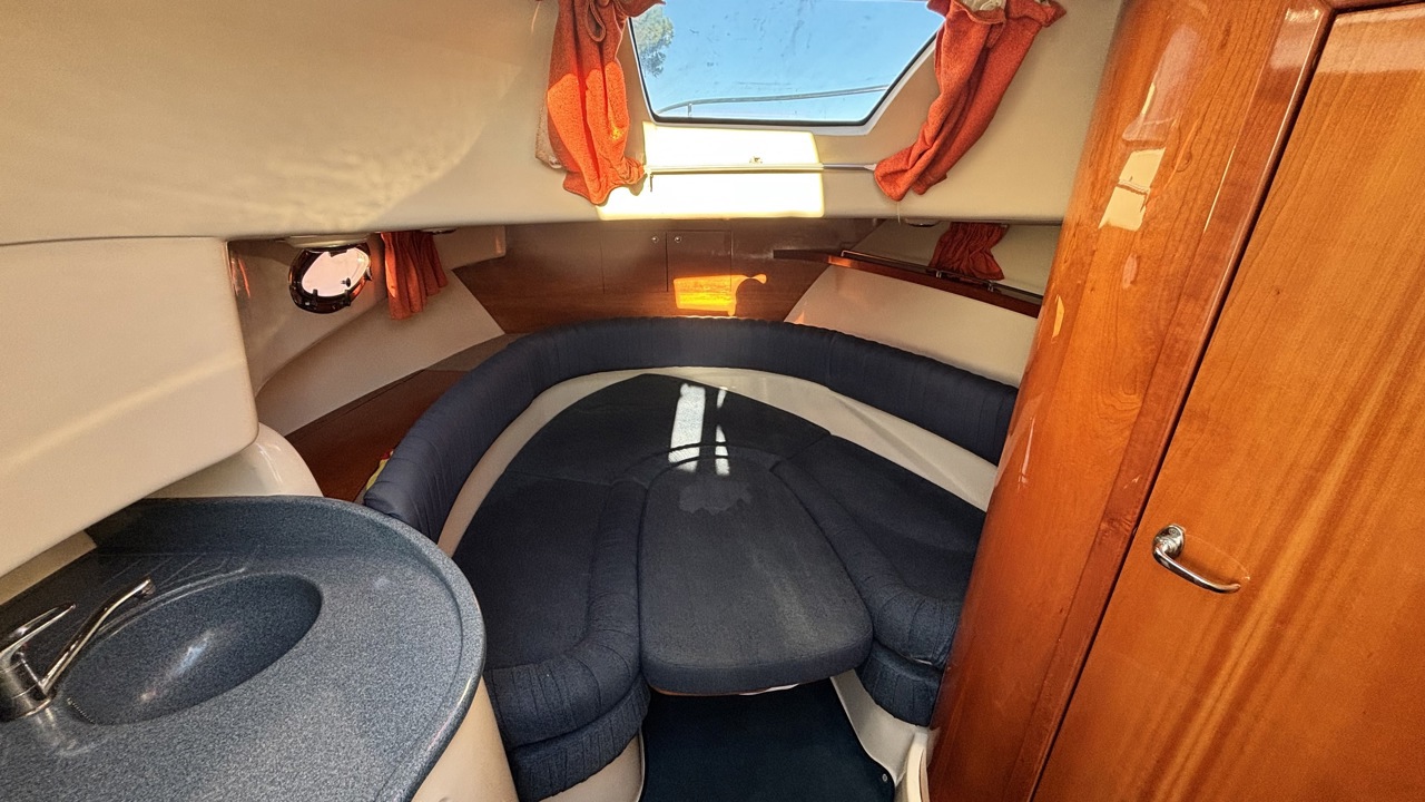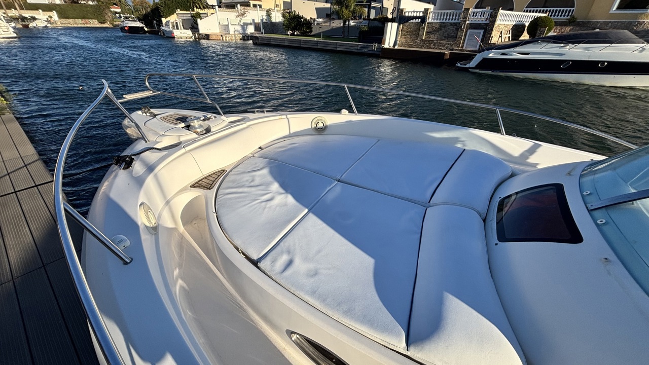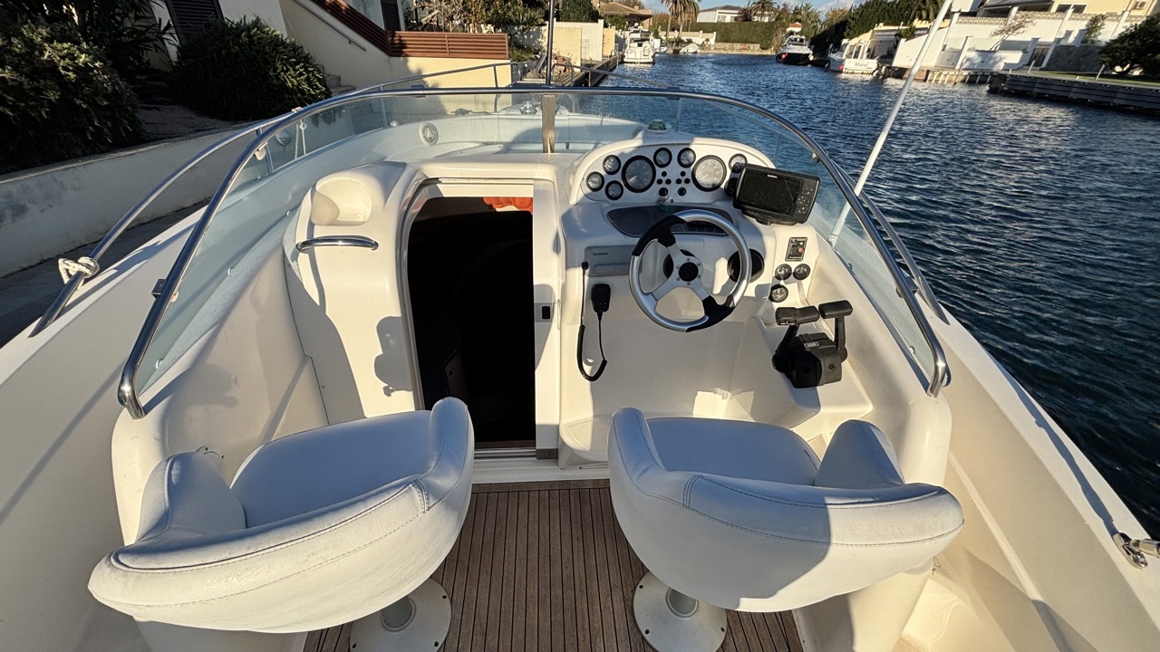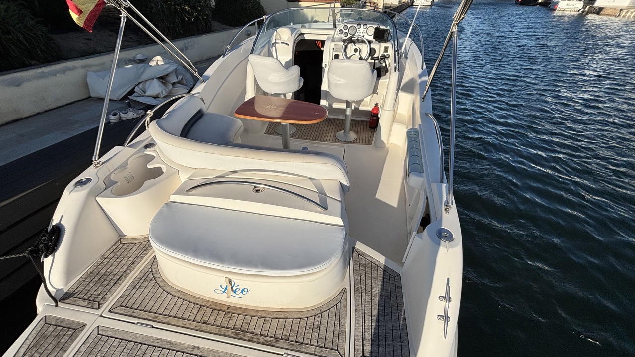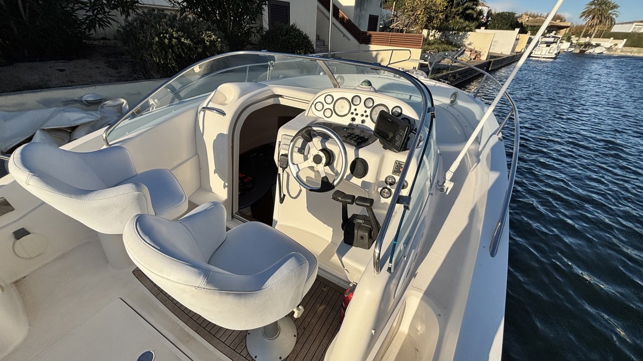 Rio 850 Day Cruiser – 2005 – Volvo Penta 4.3 GXI – Occasion – Bateau prêt à naviguer Découvrez ce Rio 850 Day Cruiser de 2005, un bateau de 8,50 mètres très recherché pour son confort, sa fiabilité et sa polyvalence. Parfait pour la Méditerranée, il conviendra aussi bien aux sorties à la journée qu’aux week-ends en famille grâce à son grand cockpit et sa cabine offrant jusqu’à 4 couchages. Motorisé en bi-moteurs Volvo Penta 4.3 GXI (2 × 230 cv), ce modèle allie performance, sécurité et facilité d’entretien. Il bénéficie d’un entretien complet réalisé en 2025, d’un antifouling récent, d’un taud neuf et de factures disponibles. Idéalement situé à Empuriabrava (Costa Brava), à deux pas de la frontière française. Caractéristiques principales : * Longueur hors tout : 8,50 m * Longueur de coque : 7,49 m * Largeur : 3,00 m * Tirant d’eau : 0,60 m * Poids : 3 000 kg * Cabines : 1 * Couchages : 4 * Capacité : 8 personnes * Réservoir carburant : 330 L * Réservoir eau douce : ≈ 120 L Motorisation & Performances * 2 × Volvo Penta 4.3 GXI – Essence * Puissance totale : 460 CV * Heures moteur : 895 h * Transmission : In-board Entretien réalisé en 2025 * Révision moteurs (huiles, filtres, courroies, anodes, crépines) * Entretien complet des embases Volvo Penta * Nettoyage carène + antifouling 2025 * Factures disponibles (garage nautique professionnel) * Une motorisation souple et réactive, idéale pour un day cruiser 8 m. Aménagement & Confort * Cabine double + carré transformable (4 couchages) * Cuisine équipée : évier, réchaud gaz, réfrigérateur * Salle d’eau : WC marin, douche, lavabo * Carré intérieur lumineux et bien agencé * Réserve eau douce : ≈ 120 L Équipements extérieurs * Bain de soleil avant * Plateforme de bain en semi-teck + échelle * Douchette cockpit * Table de cockpit * Bimini noir neuf * Taud d’hivernage * Coussins complets * Cockpit spacieux, confortable et modulable Électricité & Électronique * GPS Garmin * Traceur * Loch / speedo * VHF Garmin * Circuit 12 V / 220 V * Chargeur de batteries * Batteries moteur + service * Pompe de cale électrique * Éclairage intérieur Accastillage * Guindeau électrique * Ancre + mouillage complet Prix de vente : 33 000 € Ce Rio 850 Day Cruiser est une opportunité idéale pour un plaisancier cherchant un bateau bien entretenu, fiable et prêt à naviguer immédiatement en Méditerranée. Bateau visible à Empuriabrava (Espagne) — accès rapide depuis Perpignan, Argelès, Collioure, Le Boulou et tout le sud de la France. Contactez Esprit Bateau pour plus d’informations, recevoir le dossier photo complet ou organiser une visite.Marque Rio