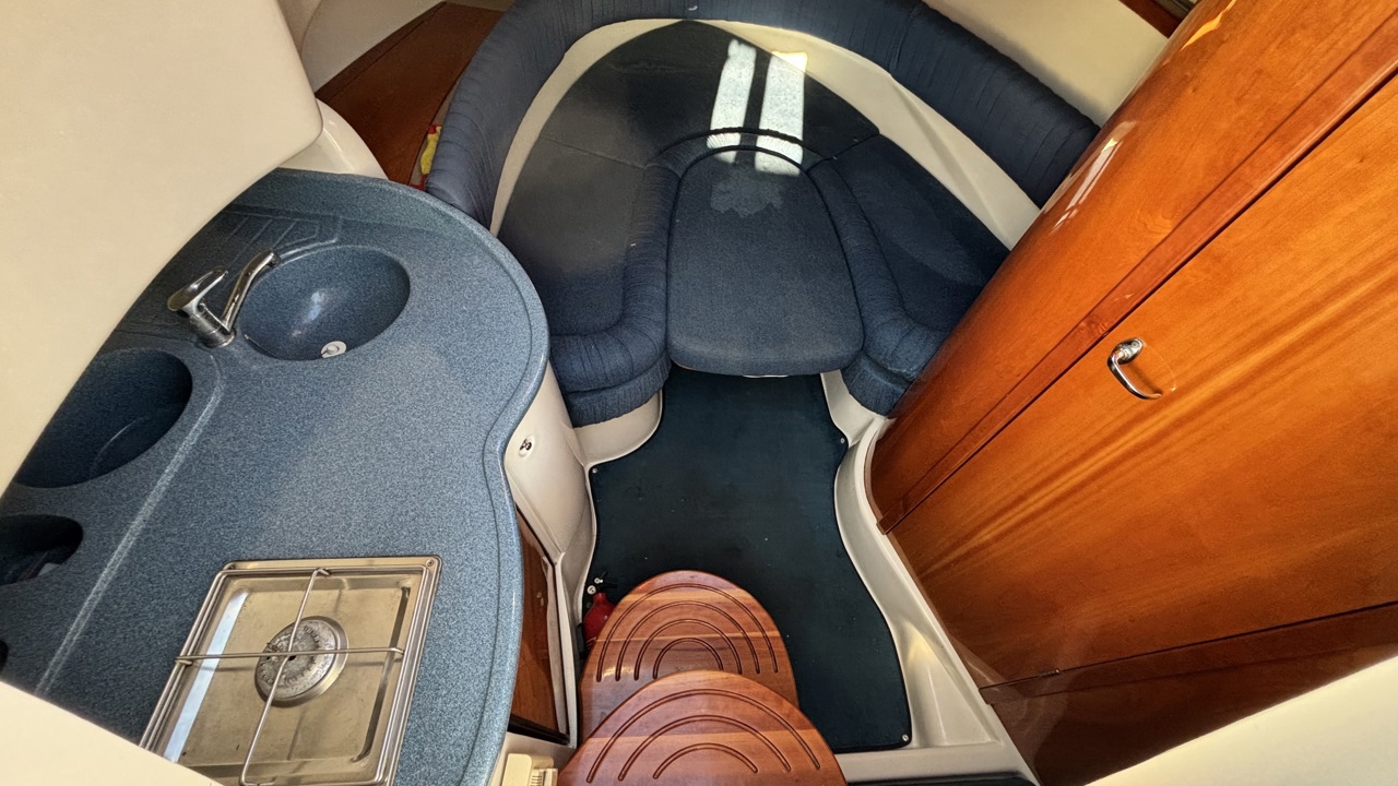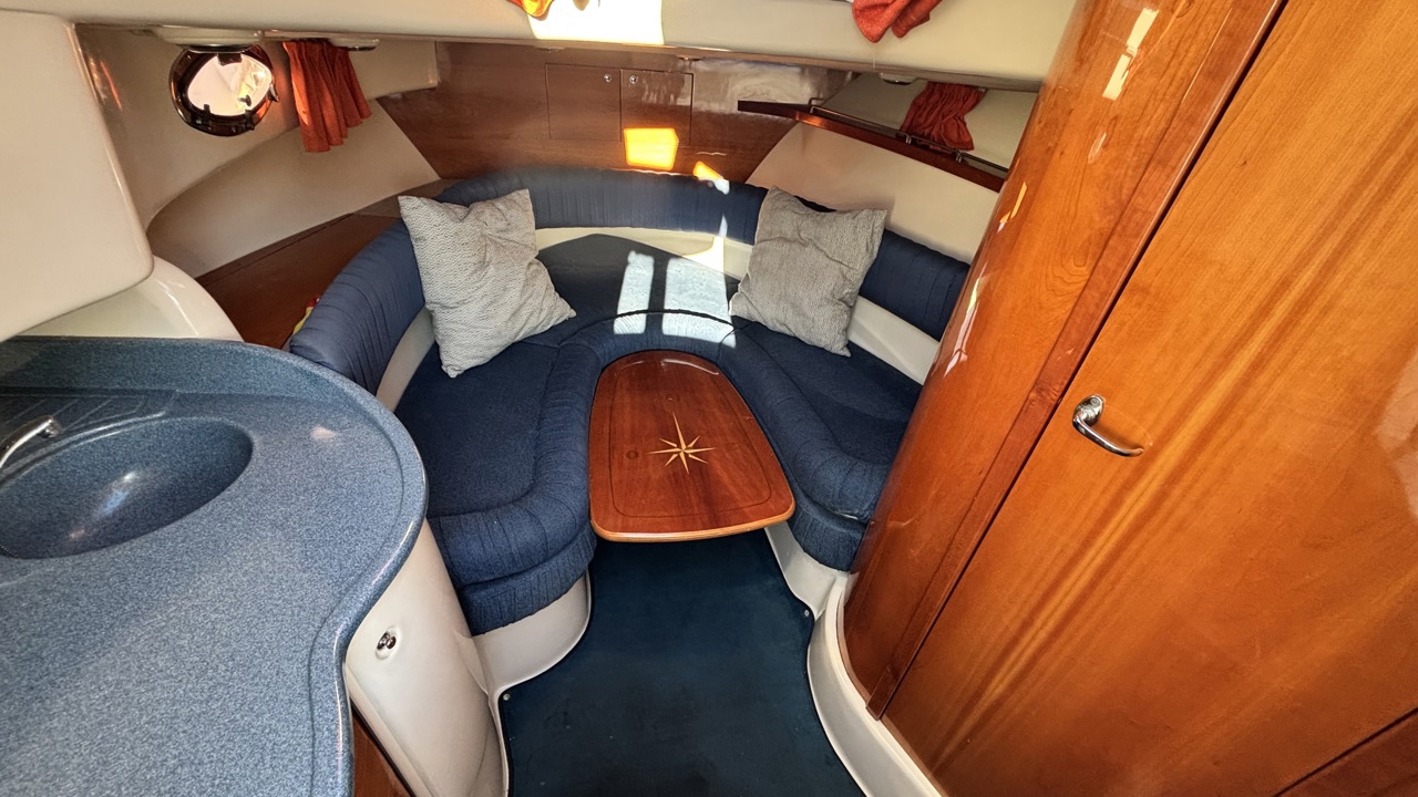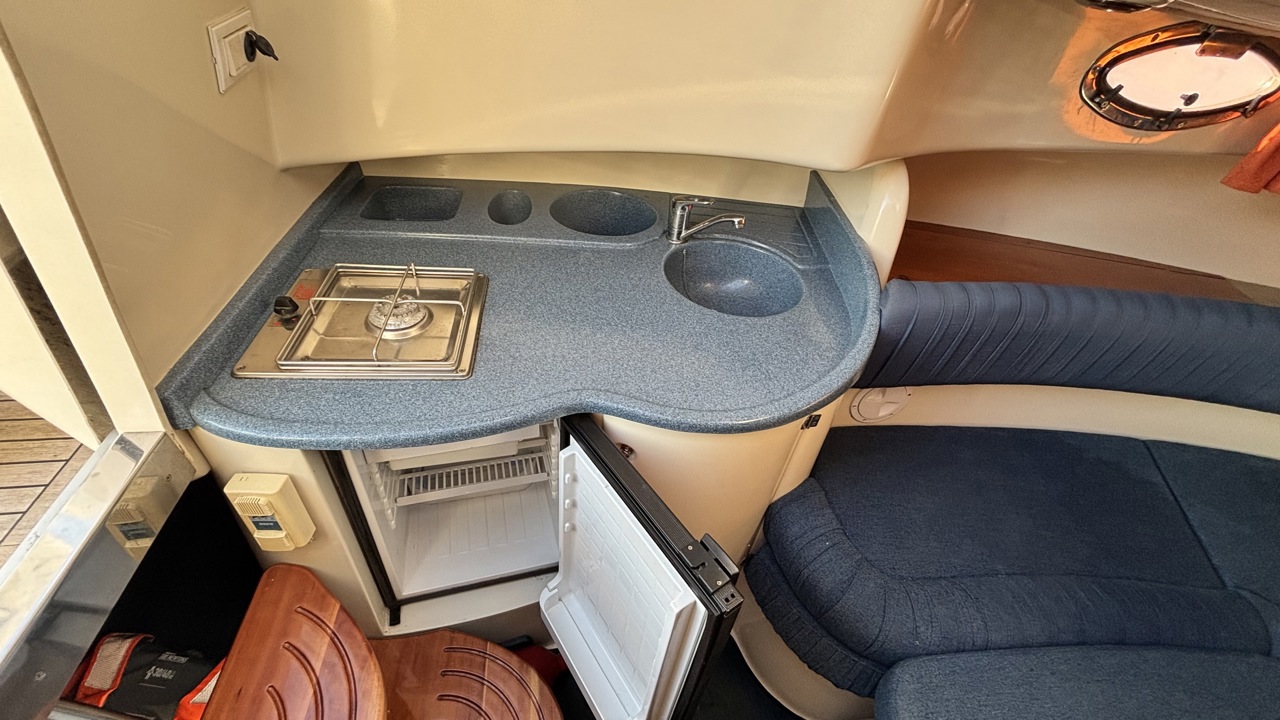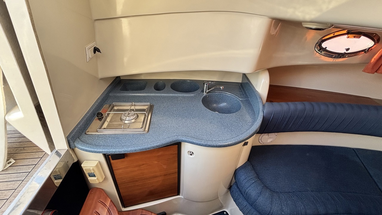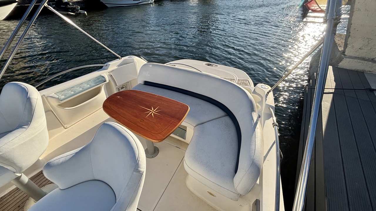 Rio 850 Day Cruiser – 2005 – Volvo Penta 4.3 GXI – Occasion – Bateau prêt à naviguer Découvrez ce Rio 850 Day Cruiser de 2005, un bateau de 8,50 mètres très recherché pour son confort, sa fiabilité et sa polyvalence. Parfait pour la Méditerranée, il conviendra aussi bien aux sorties à la journée qu’aux week-ends en famille grâce à son grand cockpit et sa cabine offrant jusqu’à 4 couchages. Motorisé en bi-moteurs Volvo Penta 4.3 GXI (2 × 230 cv), ce modèle allie performance, sécurité et facilité d’entretien. Il bénéficie d’un entretien complet réalisé en 2025, d’un antifouling récent, d’un taud neuf et de factures disponibles. Idéalement situé à Empuriabrava (Costa Brava), à deux pas de la frontière française. Caractéristiques principales : * Longueur hors tout : 8,50 m * Longueur de coque : 7,49 m * Largeur : 3,00 m * Tirant d’eau : 0,60 m * Poids : 3 000 kg * Cabines : 1 * Couchages : 4 * Capacité : 8 personnes * Réservoir carburant : 330 L * Réservoir eau douce : ≈ 120 L Motorisation & Performances * 2 × Volvo Penta 4.3 GXI – Essence * Puissance totale : 460 CV * Heures moteur : 895 h * Transmission : In-board Entretien réalisé en 2025 * Révision moteurs (huiles, filtres, courroies, anodes, crépines) * Entretien complet des embases Volvo Penta * Nettoyage carène + antifouling 2025 * Factures disponibles (garage nautique professionnel) * Une motorisation souple et réactive, idéale pour un day cruiser 8 m. Aménagement & Confort * Cabine double + carré transformable (4 couchages) * Cuisine équipée : évier, réchaud gaz, réfrigérateur * Salle d’eau : WC marin, douche, lavabo * Carré intérieur lumineux et bien agencé * Réserve eau douce : ≈ 120 L Équipements extérieurs * Bain de soleil avant * Plateforme de bain en semi-teck + échelle * Douchette cockpit * Table de cockpit * Bimini noir neuf * Taud d’hivernage * Coussins complets * Cockpit spacieux, confortable et modulable Électricité & Électronique * GPS Garmin * Traceur * Loch / speedo * VHF Garmin * Circuit 12 V / 220 V * Chargeur de batteries * Batteries moteur + service * Pompe de cale électrique * Éclairage intérieur Accastillage * Guindeau électrique * Ancre + mouillage complet Prix de vente : 33 000 € Ce Rio 850 Day Cruiser est une opportunité idéale pour un plaisancier cherchant un bateau bien entretenu, fiable et prêt à naviguer immédiatement en Méditerranée. Bateau visible à Empuriabrava (Espagne) — accès rapide depuis Perpignan, Argelès, Collioure, Le Boulou et tout le sud de la France. Contactez Esprit Bateau pour plus d’informations, recevoir le dossier photo complet ou organiser une visite.Marque Rio