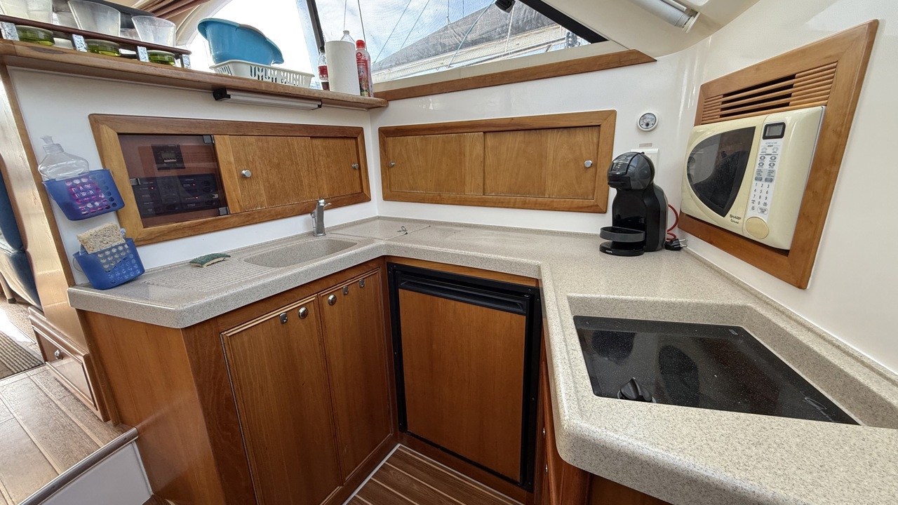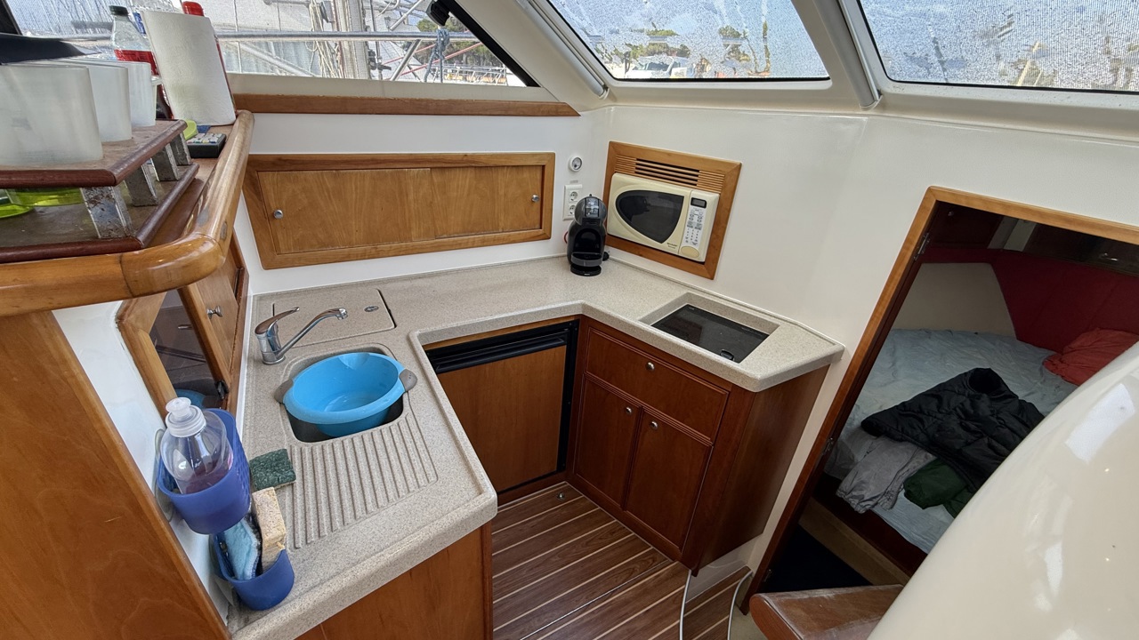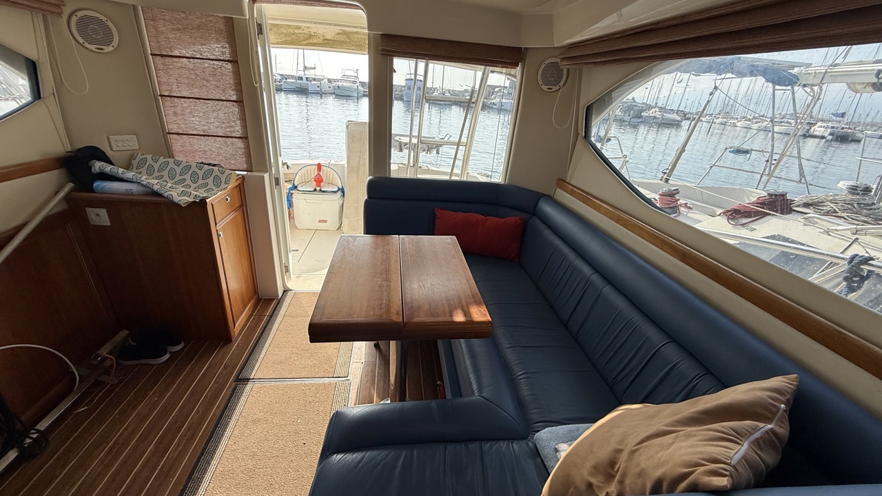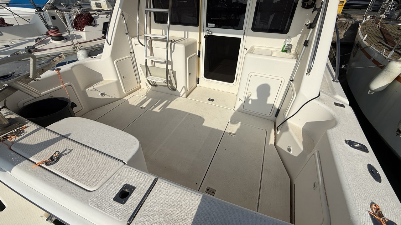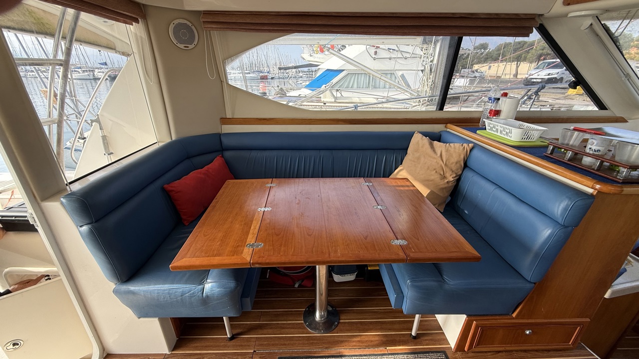 Riviera 33 Fly – Yacht Flybridge Diesel – Croisière & Plaisance Le bateau sera vendu sans les Minn Kota / ni le treuil avant (le guindeau d'origine sera remis en place et la chaise de combat à l'arriére sera retirée aussi! Découvrez le Riviera 33 Fly, un yacht flybridge diesel reconnu pour sa robustesse, son confort et ses performances en mer. Construit par le chantier australien Riviera, ce modèle est une référence sur le marché du bateau à moteur d’occasion pour la croisière côtière et hauturière. Avec une longueur d’environ 11 mètres et une largeur généreuse, le Riviera 33 Fly offre un espace de vie optimisé, idéal pour les sorties en famille ou entre amis. Son flybridge spacieux permet une visibilité exceptionnelle et une navigation confortable, tandis que le cockpit arrière est parfaitement adapté aux moments de détente ou aux activités nautiques. Motorisé en double diesel inboard volvo 310cv, ce yacht assure puissance, fiabilité et autonomie pour naviguer en toute sérénité. Sa carène performante garantit une excellente tenue en mer, même par conditions formées. À l’intérieur, le Riviera 33 Fly propose un aménagement chaleureux avec cabine, carré lumineux, cuisine équipée et salle d’eau, offrant un véritable confort pour les croisières prolongées. Très recherché sur le marché du yacht flybridge d’occasion, le Riviera 33 Fly séduit par sa qualité de construction, sa valeur sûre et son excellent rapport confort/performance. Place de port possible bateau suivi par professionnel (entretien à jour)Marque Riviera