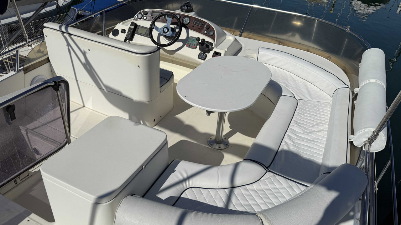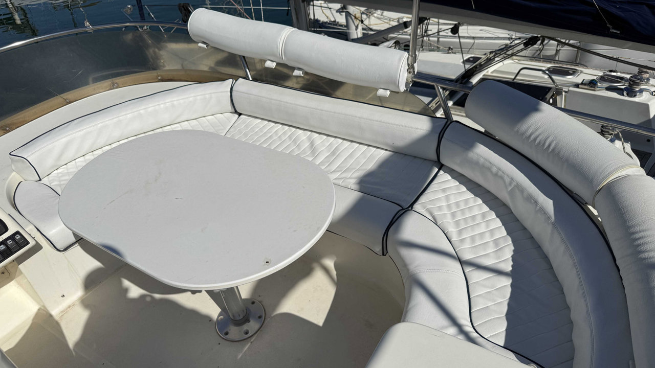fly bridgepropulseur d'étravebiminitaud fermeture arrièretaud de flyplateforme de bainéchelle de bainbain de soleil avantdouchette cockpittable cockpitcoussin cockpitéclairage cockpitancreguindeau électriquecouleurmatériau de constructionantifouling