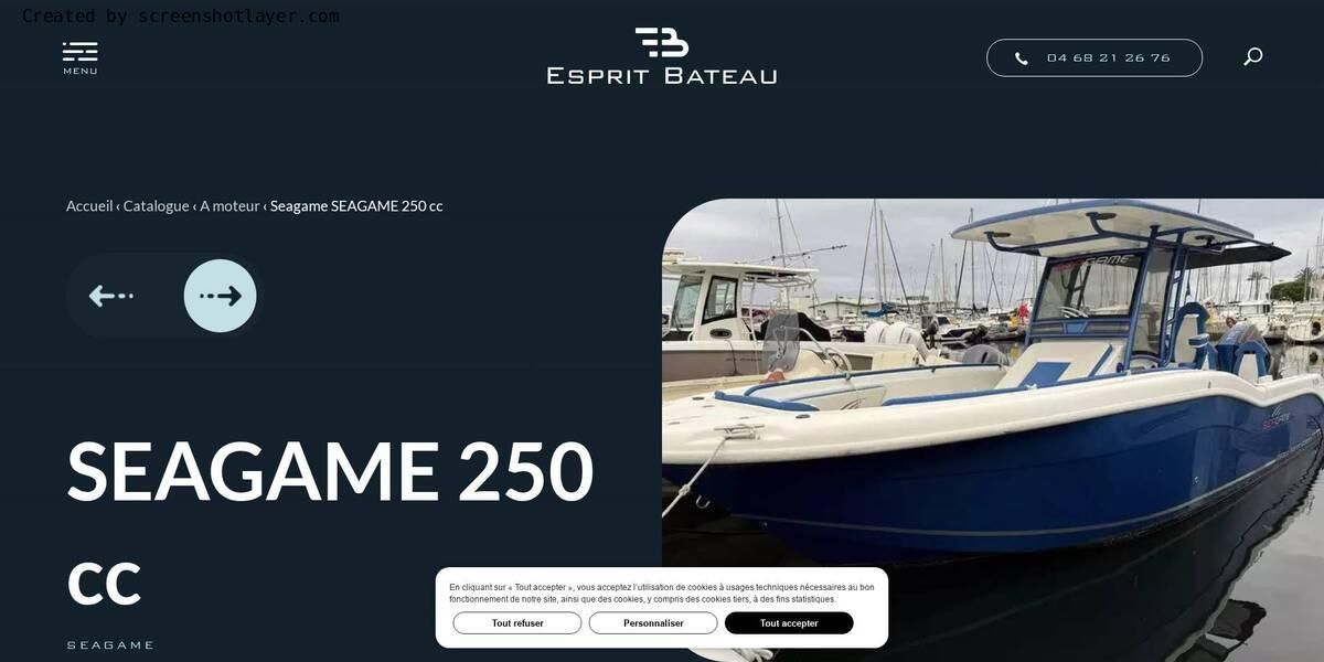 Seagame 250 CC de 2022, équipé d'un puissant moteur Mercury-Racing 450 cv affichant seulement 243 heures. Ce modèle est réputé pour sa polyvalence, sa stabilité en mer et ses performances sportives, idéales aussi bine pour la pêche que pour la promenade. Avec ses 7,54 m de longueur et 2,54 m de largeur, ce bateau open de type console centrale offre un grand confort de navigation. On retrouve un T-Top rigide, un bain de soleil avant, une banquete arrière repliable, ainsi qu'un cockpit spacieux et fonctionnel. Coté équipement, il dispose d'un GPS sondeur Garmin, d'une VHF, D'un Guindeau électrique, d'un vivier à poissons, ainsi que d'une douchette de pont et nombreux rangements. L'unité est en très bon état, avec un entretient suivi et documenté. Le moteur Mercury-Racing 450 CV garantit à la fois puissance et fiabilité, et constitue un atout rare sur ce type de bateau. Le Seagame 250 CC est actuellement visible à Saint-Cyprien (66) et se trouve hors d'eau, ce qui facilite les inspections techniques. Bateau prêt à naviguer, disponible immédiatement.Marque Seagame