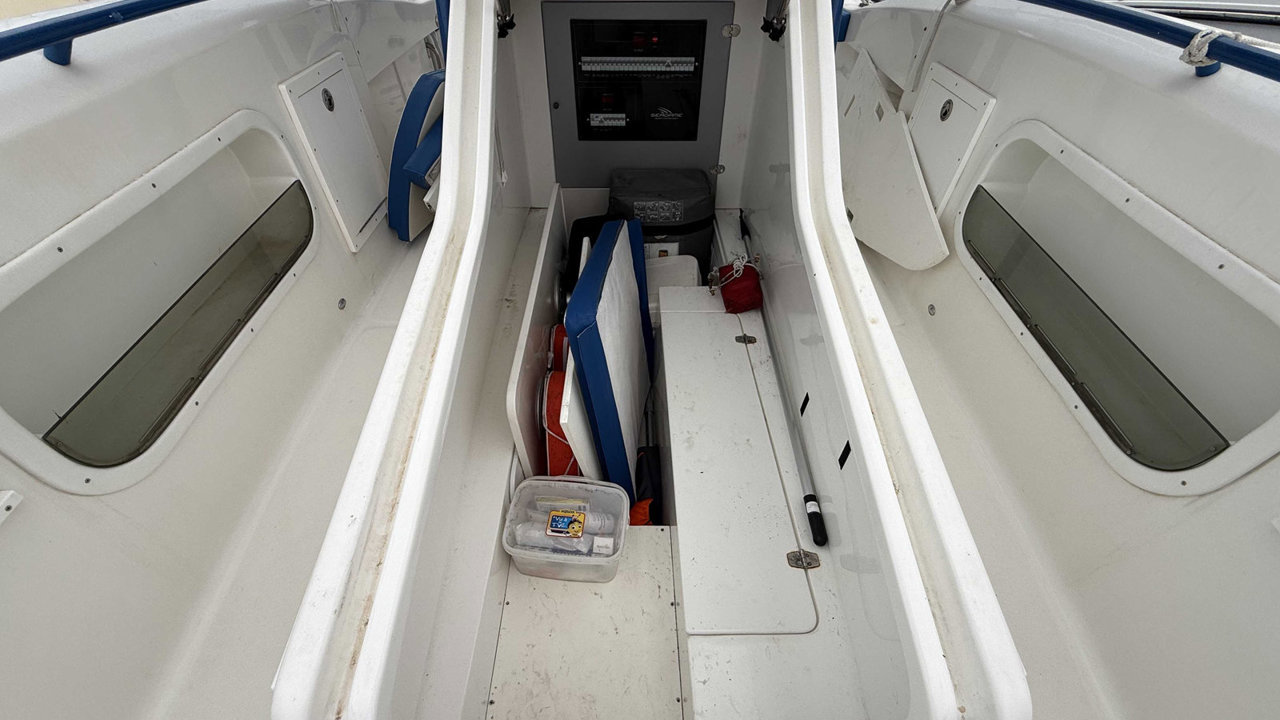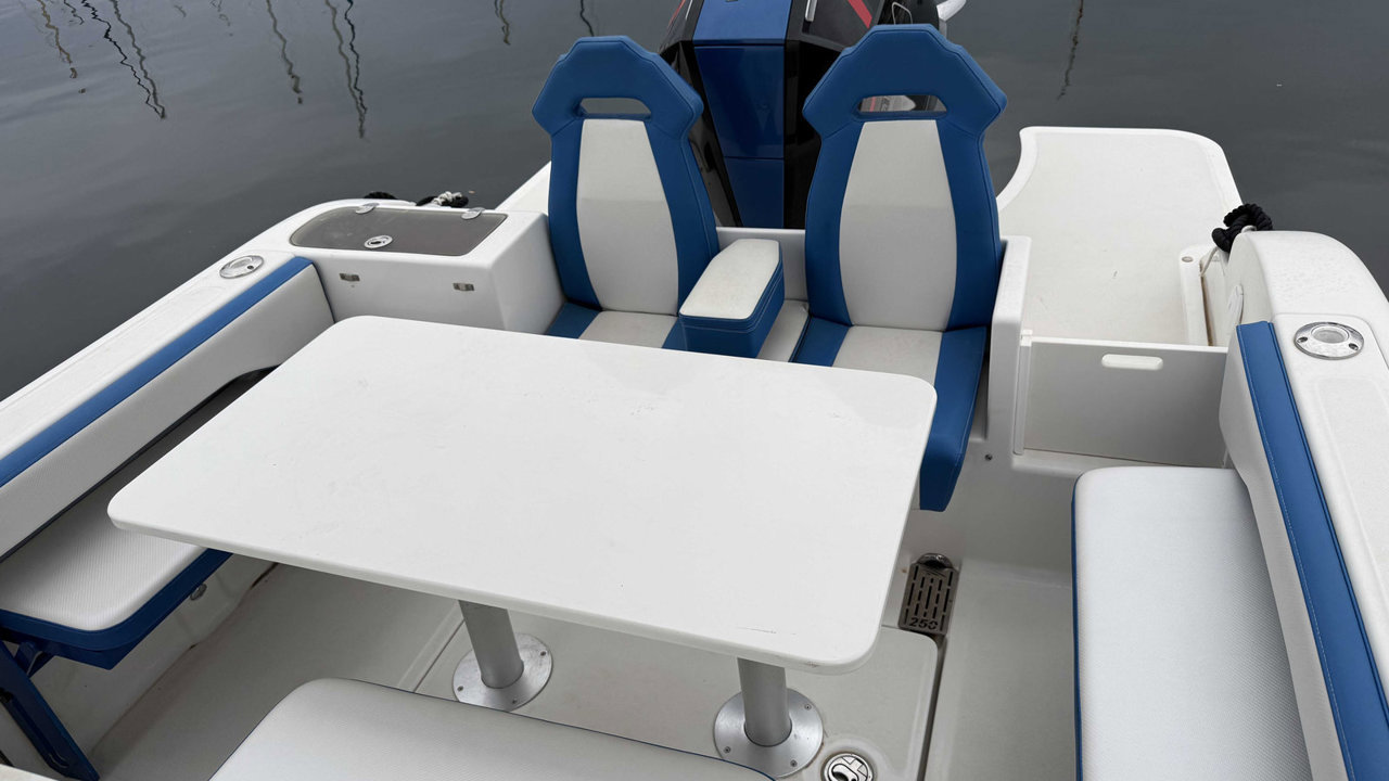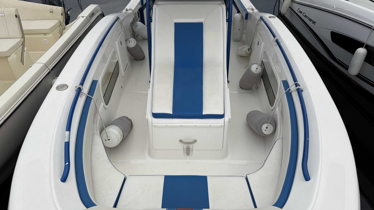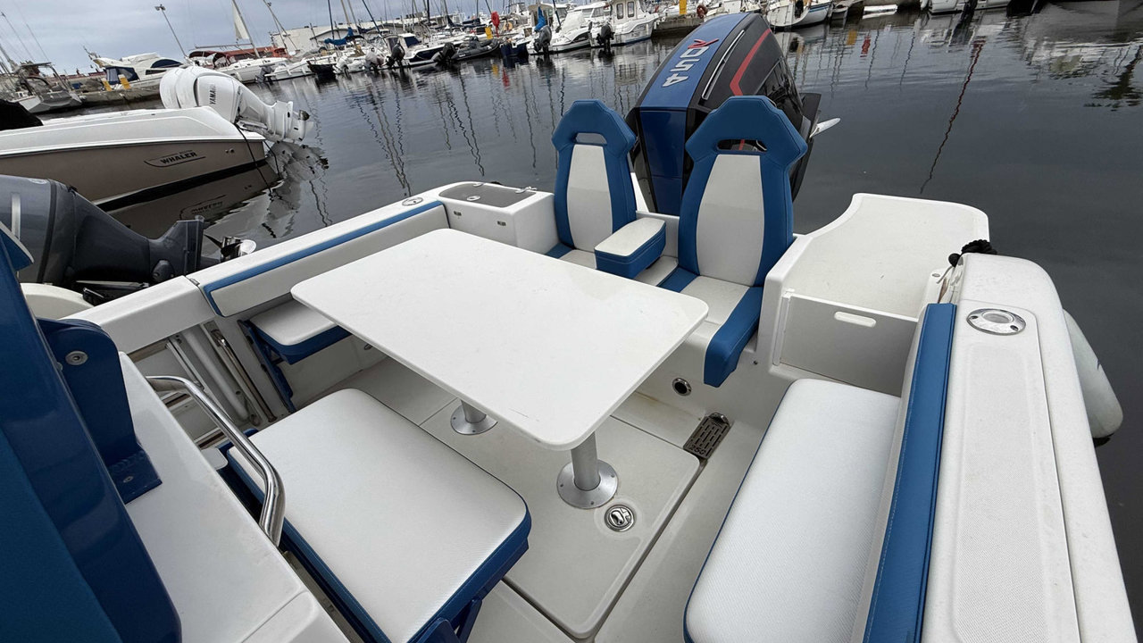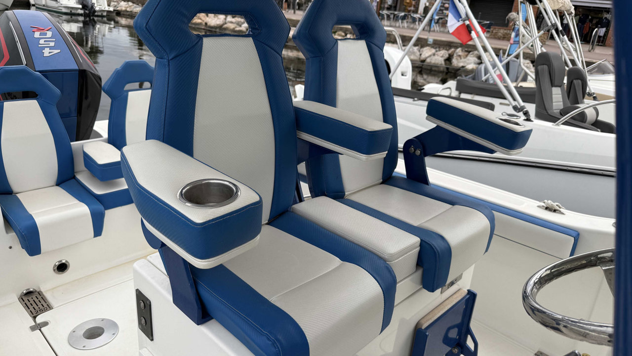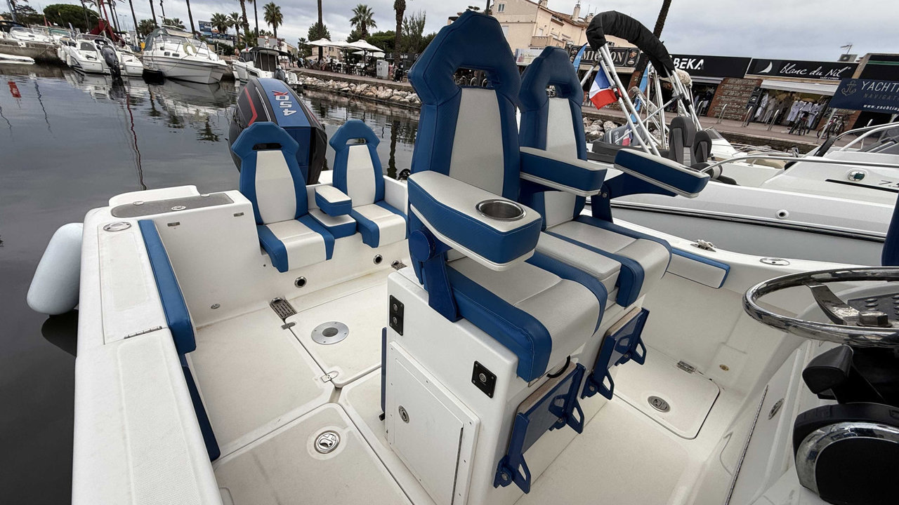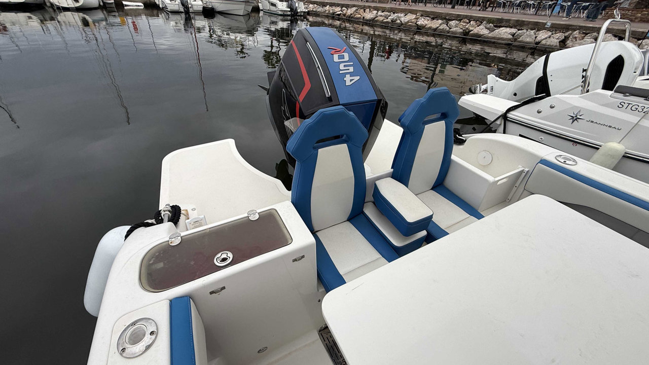 Avec ses 7,54 m de longueur et 2,54 m de largeur, ce bateau open de type console centrale offre un grand confort de navigation. On retrouve un T-Top rigide, un bain de soleil avant, une banquete arrière repliable, ainsi qu'un cockpit spacieux et fonctionnel. Coté équipement, il dispose d'un GPS sondeur Garmin, d'une VHF, D'un Guindeau électrique, d'un vivier à poissons, ainsi que d'une douchette de pont et nombreux rangements.