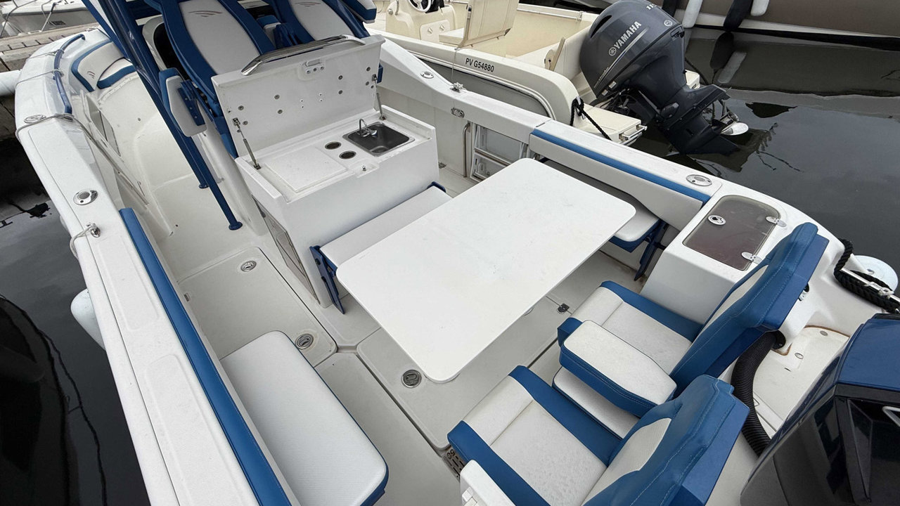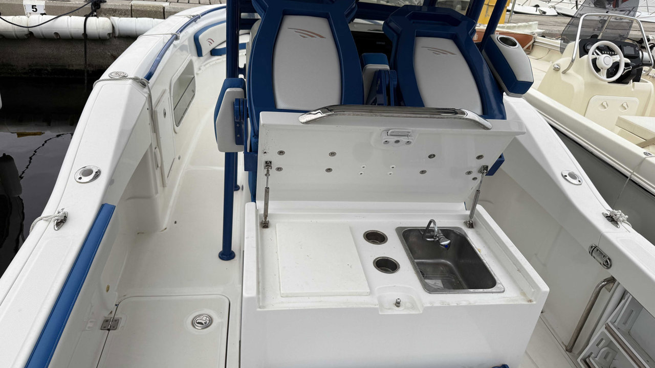 L'unité est en très bon état, avec un entretient suivi et documenté. Le moteur Mercury-Racing 450 CV garantit à la fois puissance et fiabilité, et constitue un atout rare sur ce type de bateau.