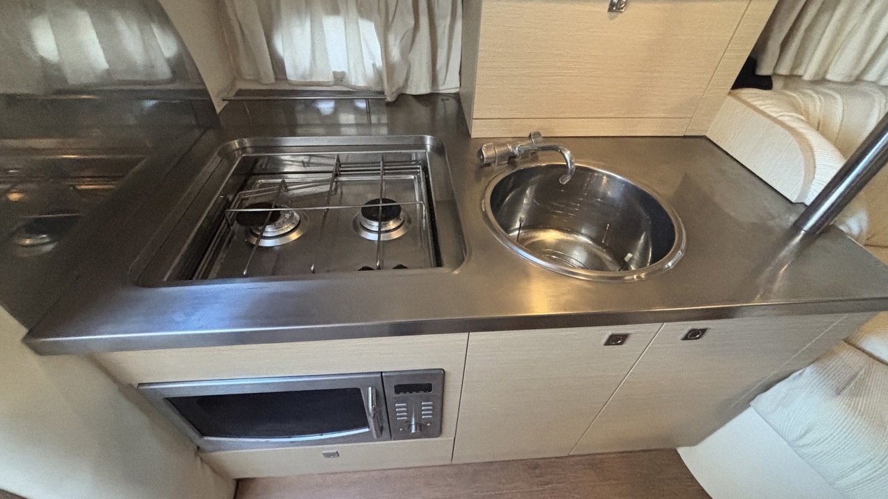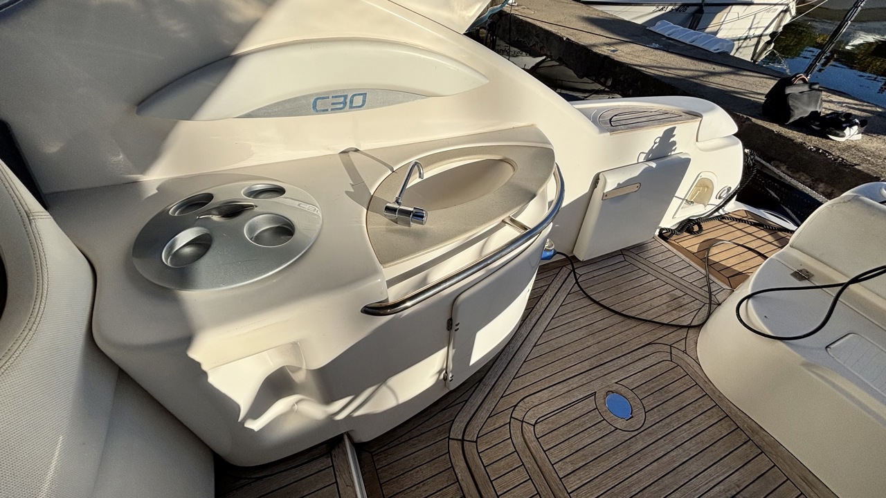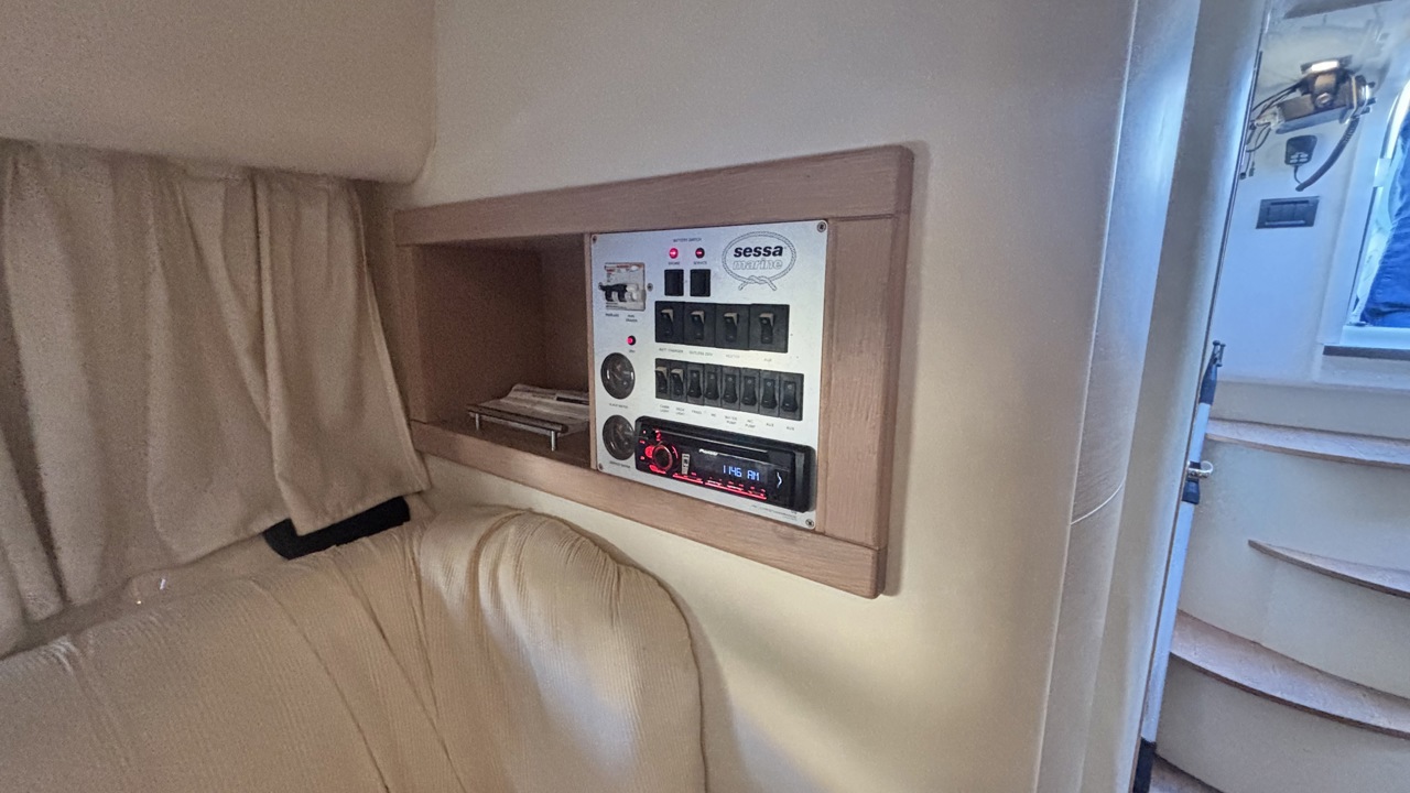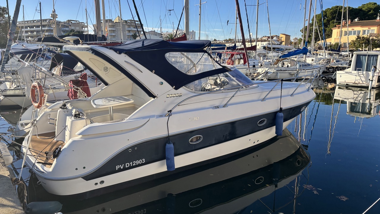 Sessa Marine C30 – 2006 – Bimoteur Volvo D3-DP Découvrez ce superbe Sessa Marine C30, une unité de 2006 alliant style, performance et confort. Modèle emblématique du chantier italien Sessa Marine, le C30 séduit par ses lignes sportives, son habitabilité remarquable et sa fiabilité reconnue en mer. Avec ses 9,50 mètres de longueur pour 3,00 mètres de largeur, ce cruiser inboard diesel offre un excellent compromis entre navigation côtière et croisière confortable. Sa motorisation Volvo D3-DP 2×190 CV diesel (581 heures seulement) garantit des performances souples, économiques et fiables. Équipements et options valorisées : - Capote de cockpit complète - Guindeau électrique - Teck dans le cockpit et sur la plateforme de bain - Bossoirs télescopiques - Coussins de solarium avant - Prise de quai 220 V + chargeur de batteries - Chauffe-eau / Douche - Micro-ondes - Four / Réchaud gaz - Évier intérieur + évier de cockpit - Réfrigérateur intérieur + réfrigérateur boissons extérieur - Table de cockpit transformable - Radio VHF / Radio CD / Compas / GPS / Traceur / Sondeur / Antenne TV - Antifouling effectué en novembre 2025 - Carré transformable - 3 batteries ( 2 moteurs et 1 service ) - Propulseur d’étrave - Pompe de cale électrique - Flaps hydrauliques L’intérieur se distingue par une cabine lumineuse, une cuisine équipée et une sellerie en bon état, offrant confort et fonctionnalité pour des séjours à bord prolongés. Performances : - Motorisation : Volvo D3-DP – 190 CV Diesel × 2 - Heures moteur : 581 h - Longueur : 9,50 m - Largeur : 3,00 m Carène performante et stable, idéale pour croisières en Méditerranée Bateau visible à Santa Margarita (Espagne). Prix de vente : 66 000 € Bateau prêt à naviguer, bien entretenu, idéal pour un propriétaire souhaitant un bateau diesel fiable et équipé. Contactez Esprit Bateau pour plus d’informations, un dossier photo complet ou planifier une visite.Marque Sessa Marine